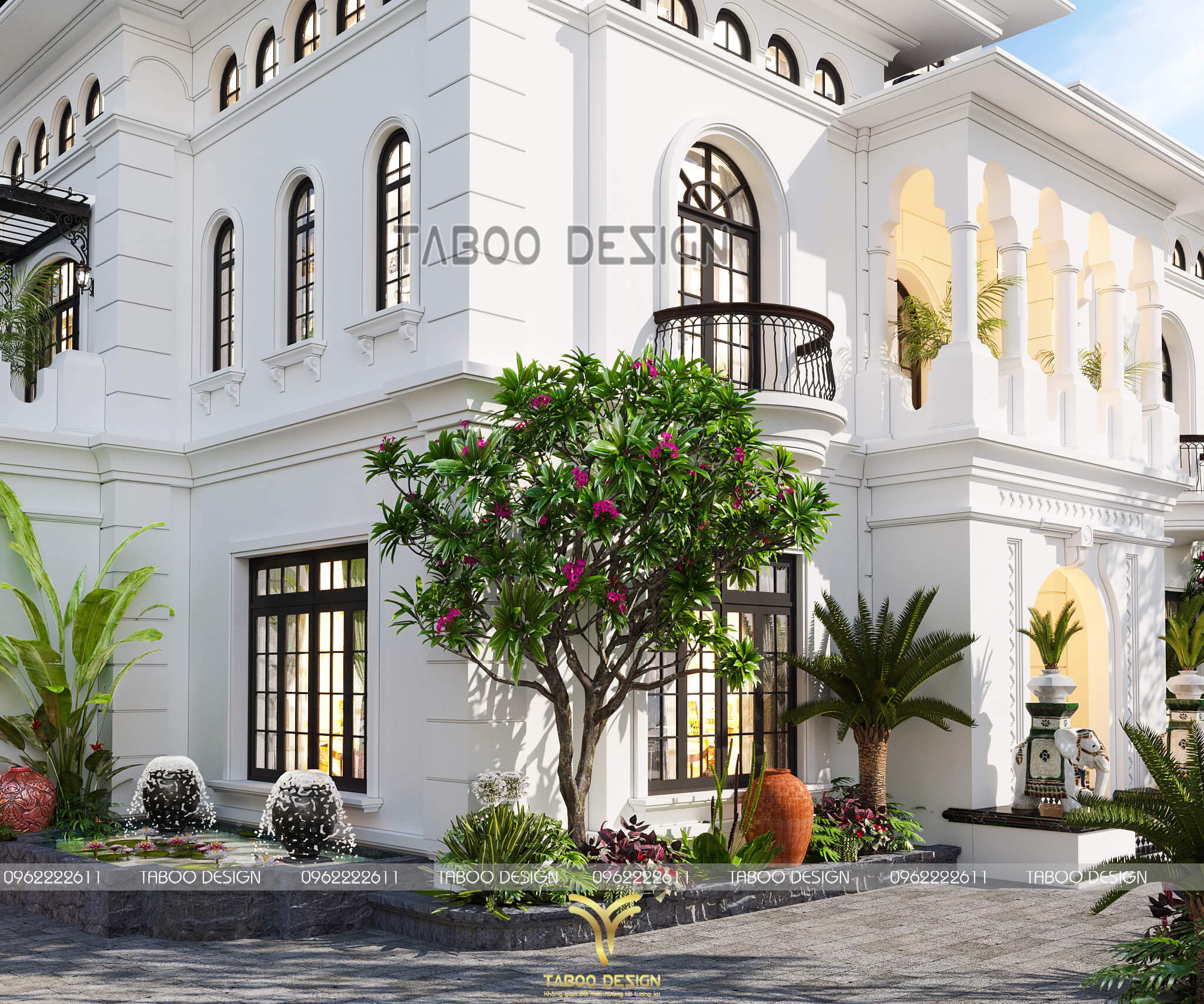 Biệt thự phong cách châu Âu sở hữu sang trọng, bề thế, với kiến trúc đăng đối, thiết kế tinh tế, tỉ mỉ đến từng chi tiết, khẳng định đẳng cấp và gu thẩm mỹ của chủ đầu tư. Sân vườn phong cách châu Âu cũng được quy hoạch khoa học, cùng cây xanh tiểu cảnh được chăm chút tỉ mỉ, bố cục hài hòa, mang đến vẻ đẹp hoàn mỹ cho công trình.