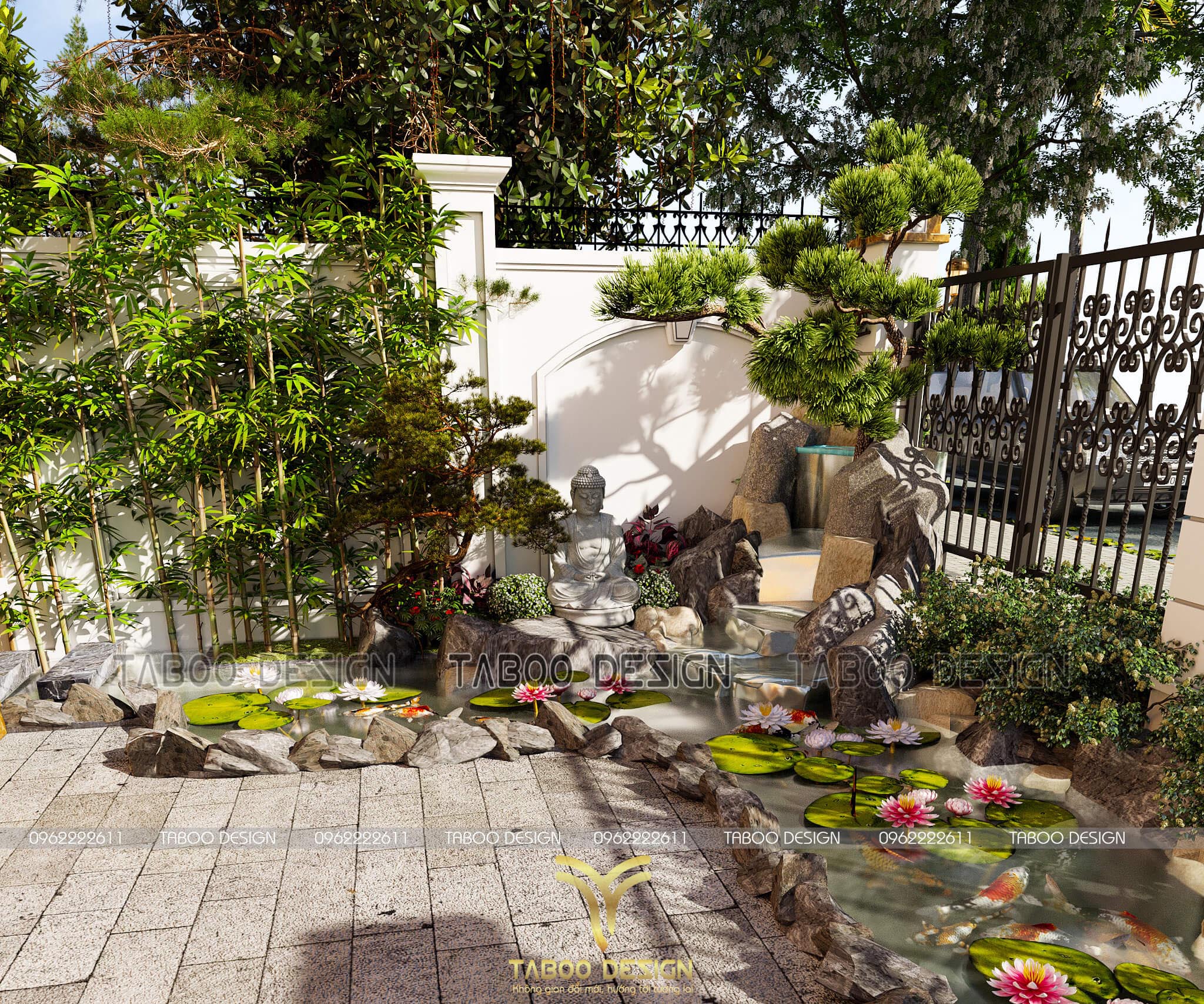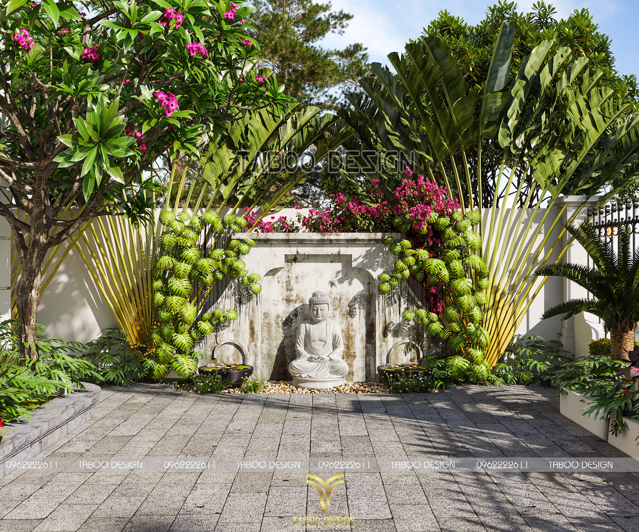 Phong thủy là một yếu tố quan trọng, ảnh hưởng đến sức khỏe, vận mệnh của gia chủ. Do vậy khi thiết kế sân vườn cần tuân theo các nguyên tắc về địa lý và phong thủy, bố trí các cảnh quan, tiểu cảnh hợp lý, đặc biệt là 3 yếu tố: cây xanh, đá, nước để cân bằng âm dương, ngũ hành tương thông, giúp dòng chảy năng lượng lưu chuyển, mang đến vượng khí, tài lộc và may mắn cho cả gia đình.
