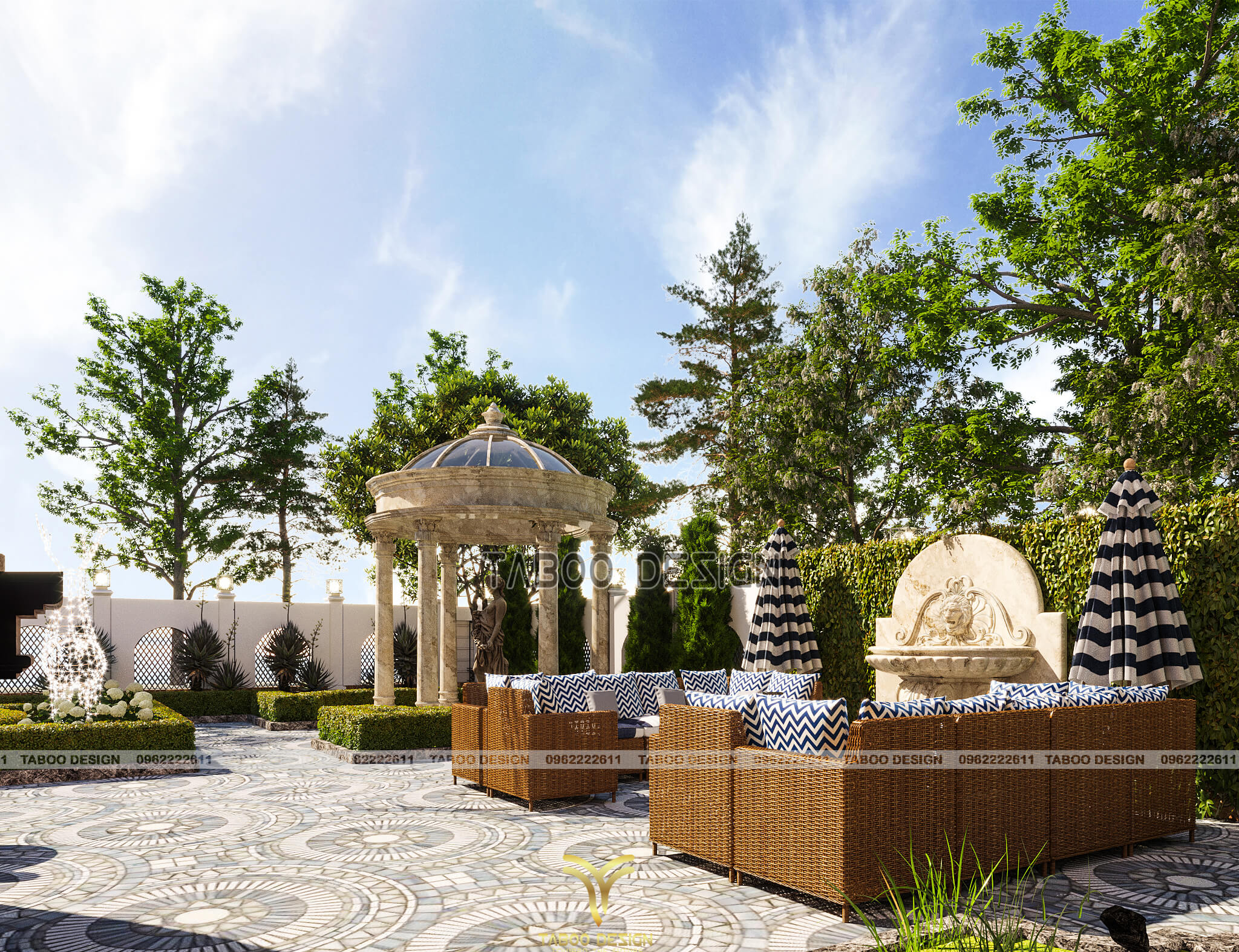 Sân vườn được thiết kế tinh xảo, tỉ mỉ với cây xanh, tiểu cảnh sinh động giúp che đi những khoảng trống của căn biệt thự, mang đến sự hài hòa trong kiến trúc, đồng thời tạo điểm nhấn, tạo sự khác biệt cho căn biệt thự của bạn.