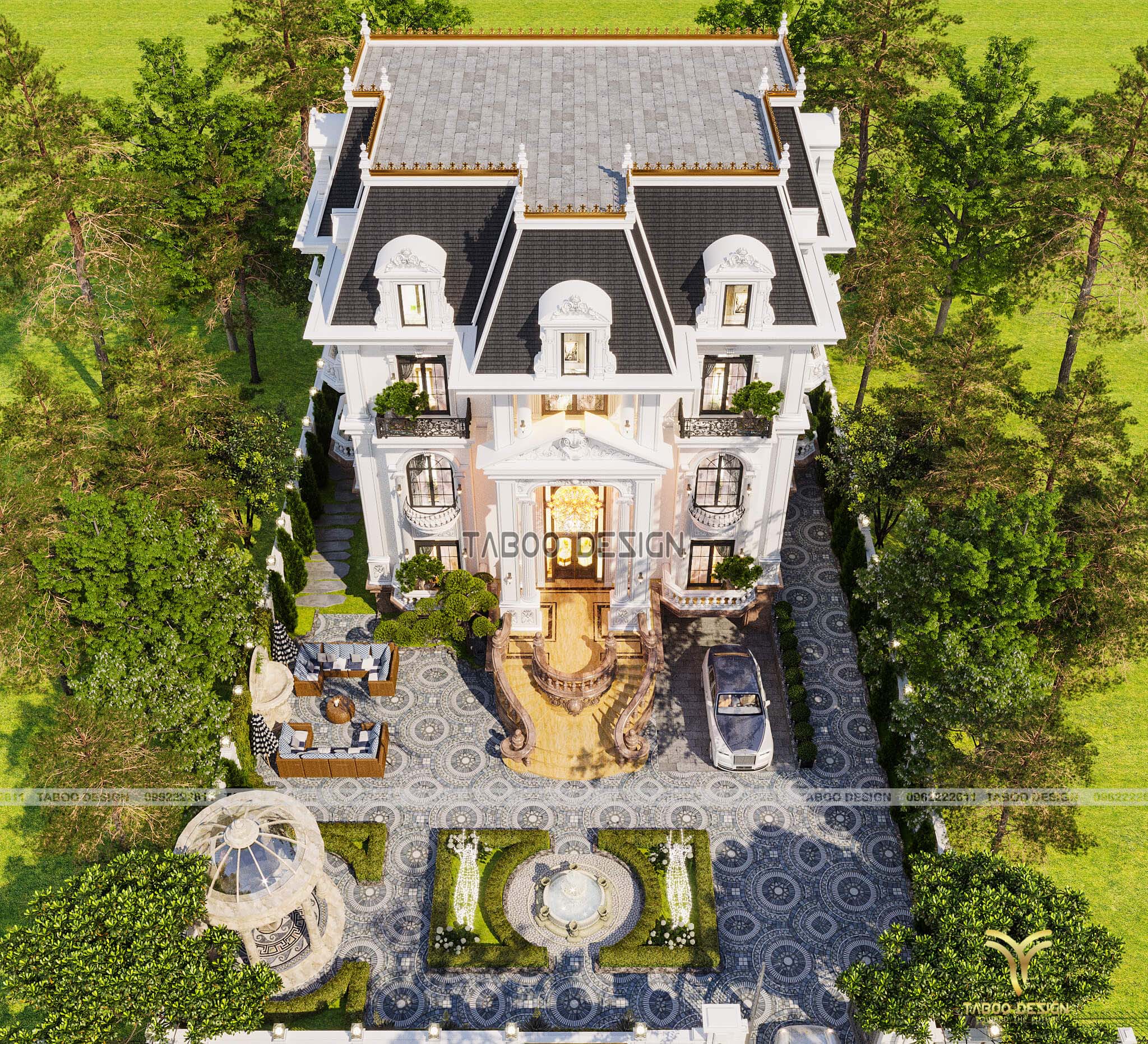 Toàn cảnh biệt thự cổ điển kiểu Pháp 3 tầng từ trên cao