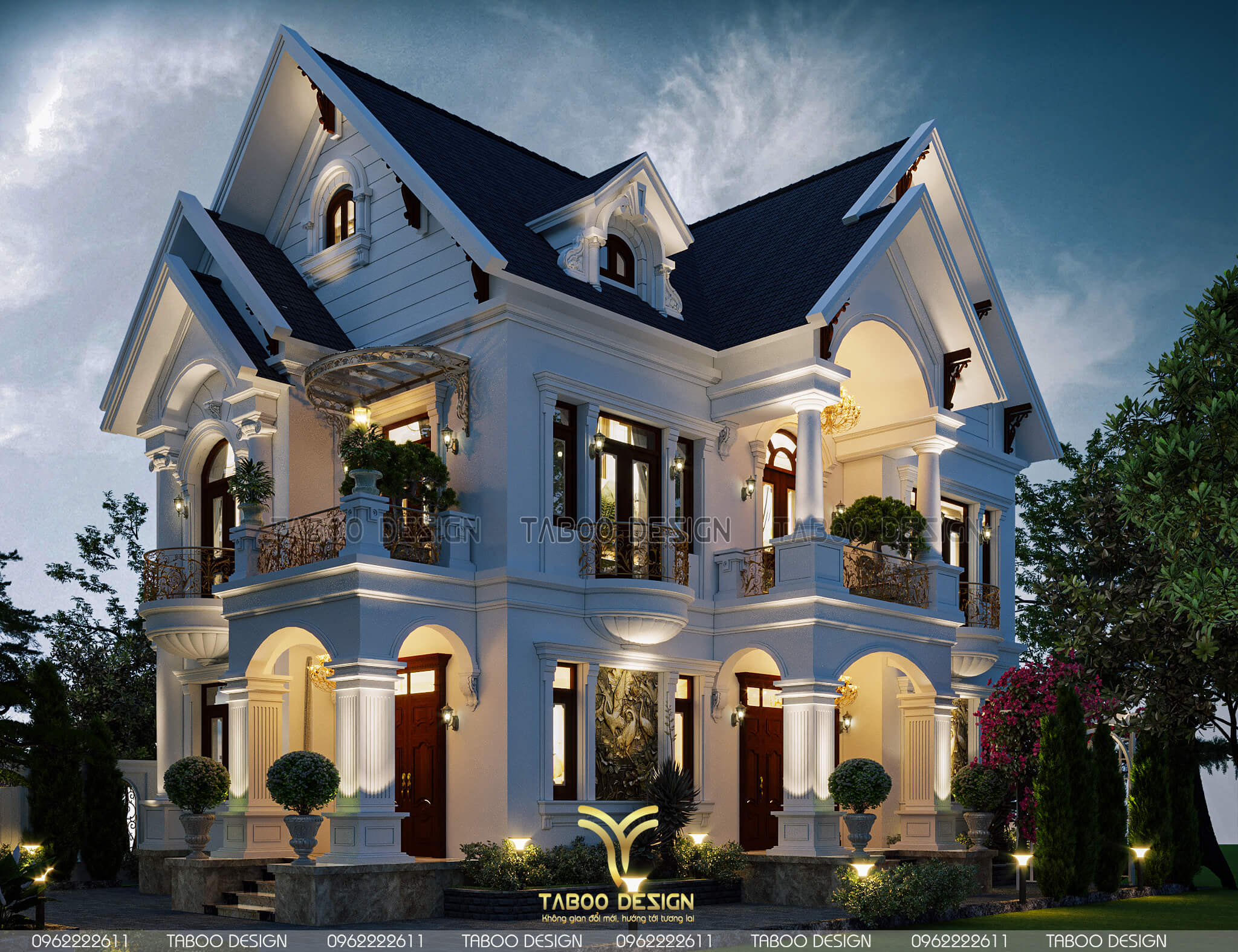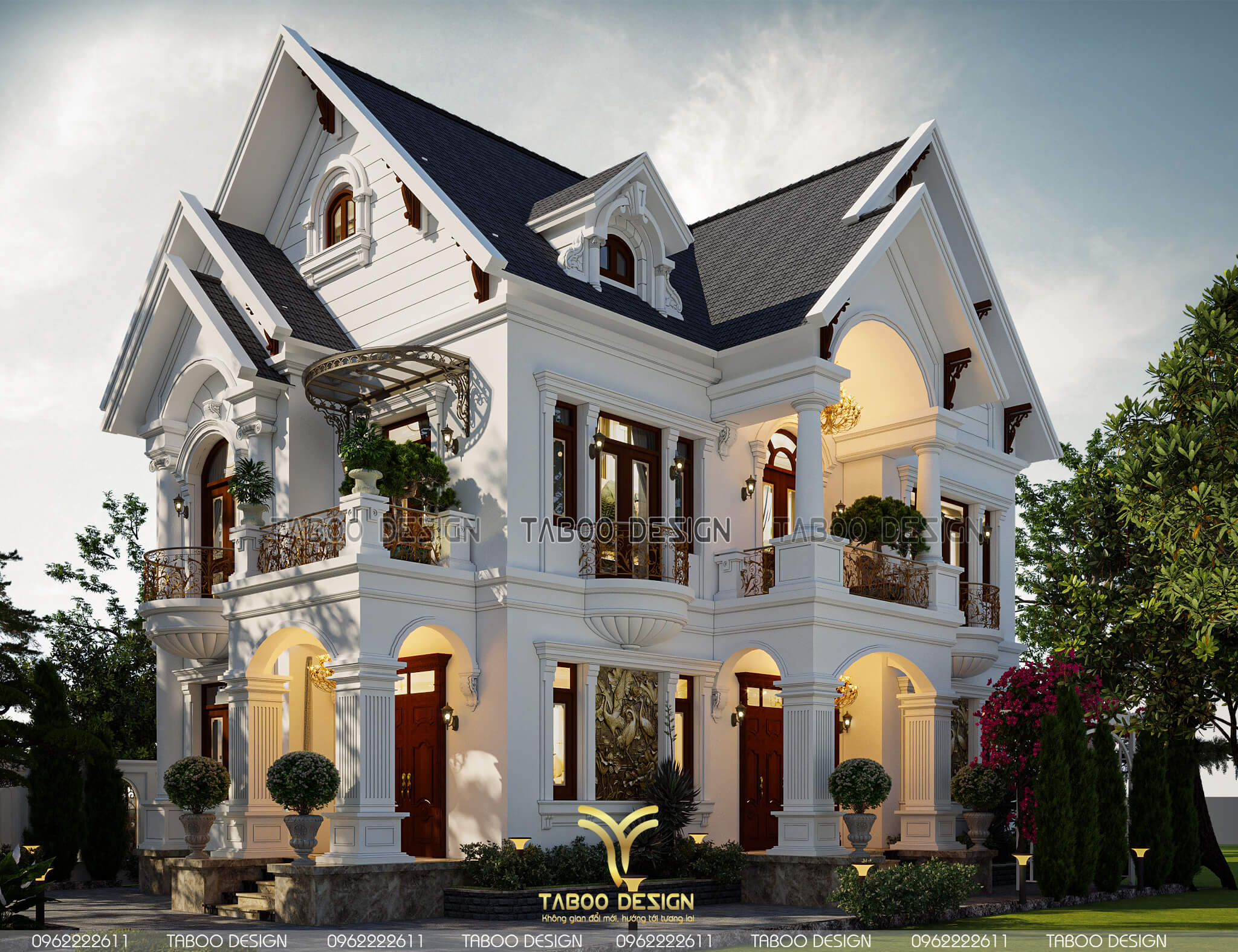 Mọi thông tin về kiến trúc - phong thủy - thi công của Mẫu biệt thự Tân cổ điển 2 tầng, quý khách vui lòng liên hệ hotline 0962222611 để được Taboo Design giải đáp chi tiết.