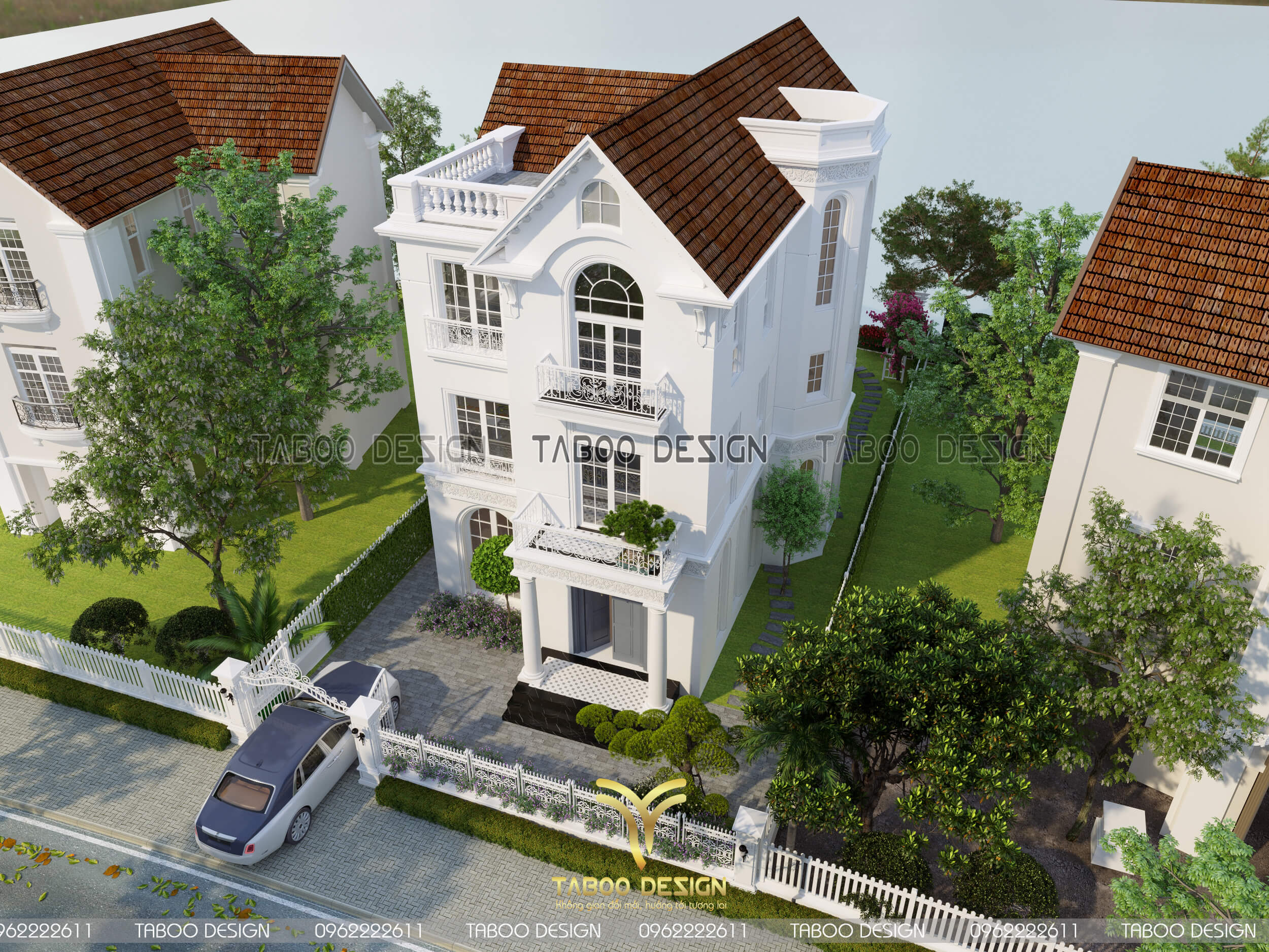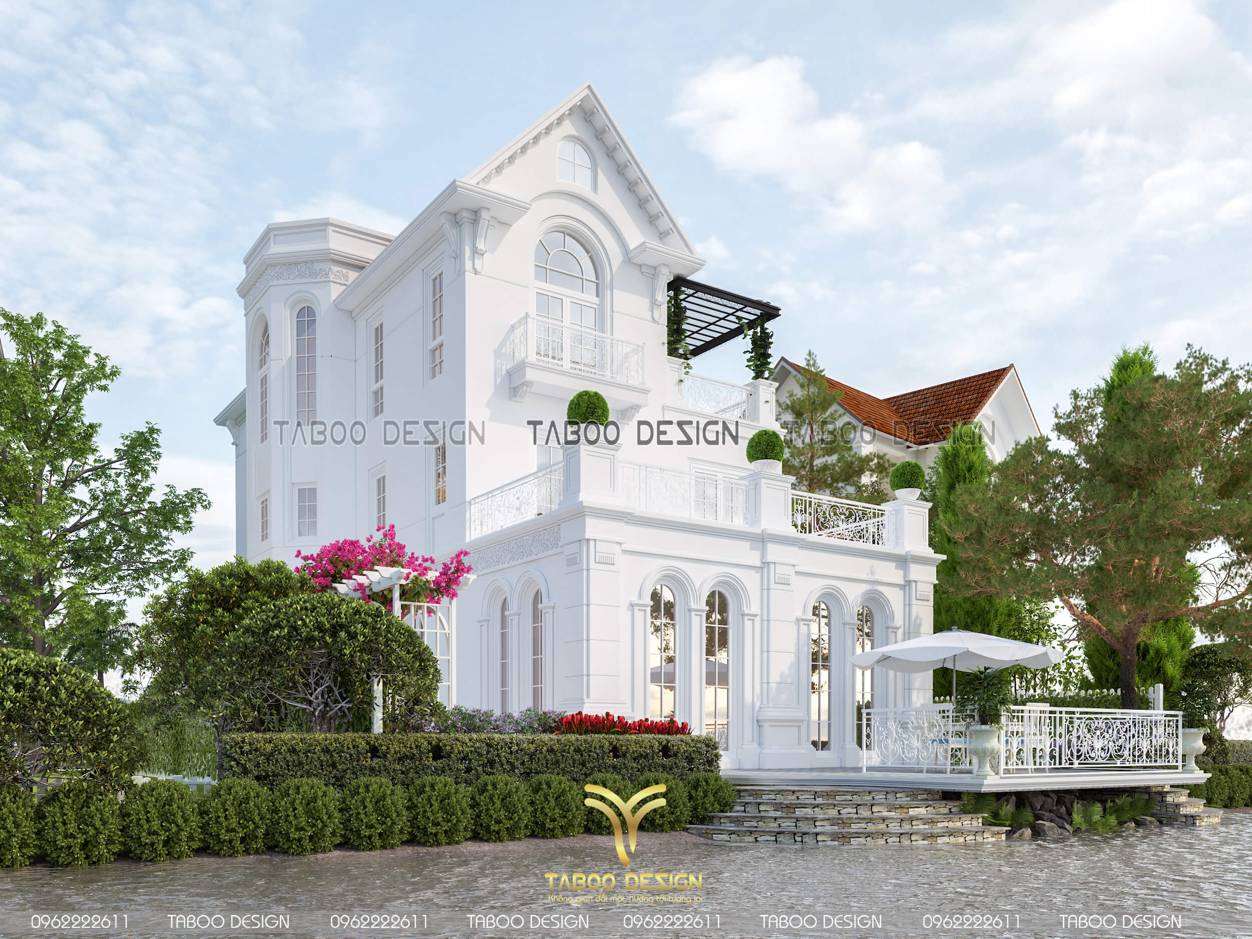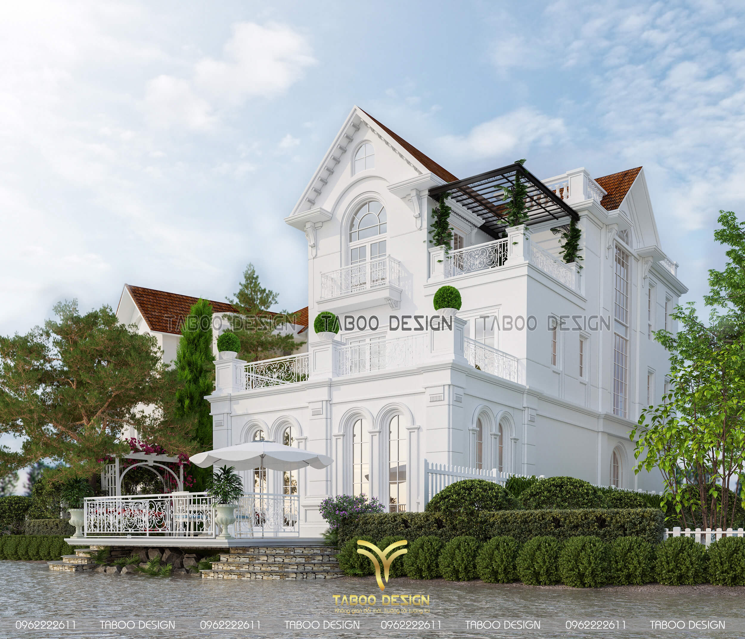Mọi thông tin của Mẫu biệt thự tân cổ điển 3 tầng mái Thái, quý khách vui lòng liên hệ hotline 0962222611 để được Taboo Design giải đáp chi tiết.