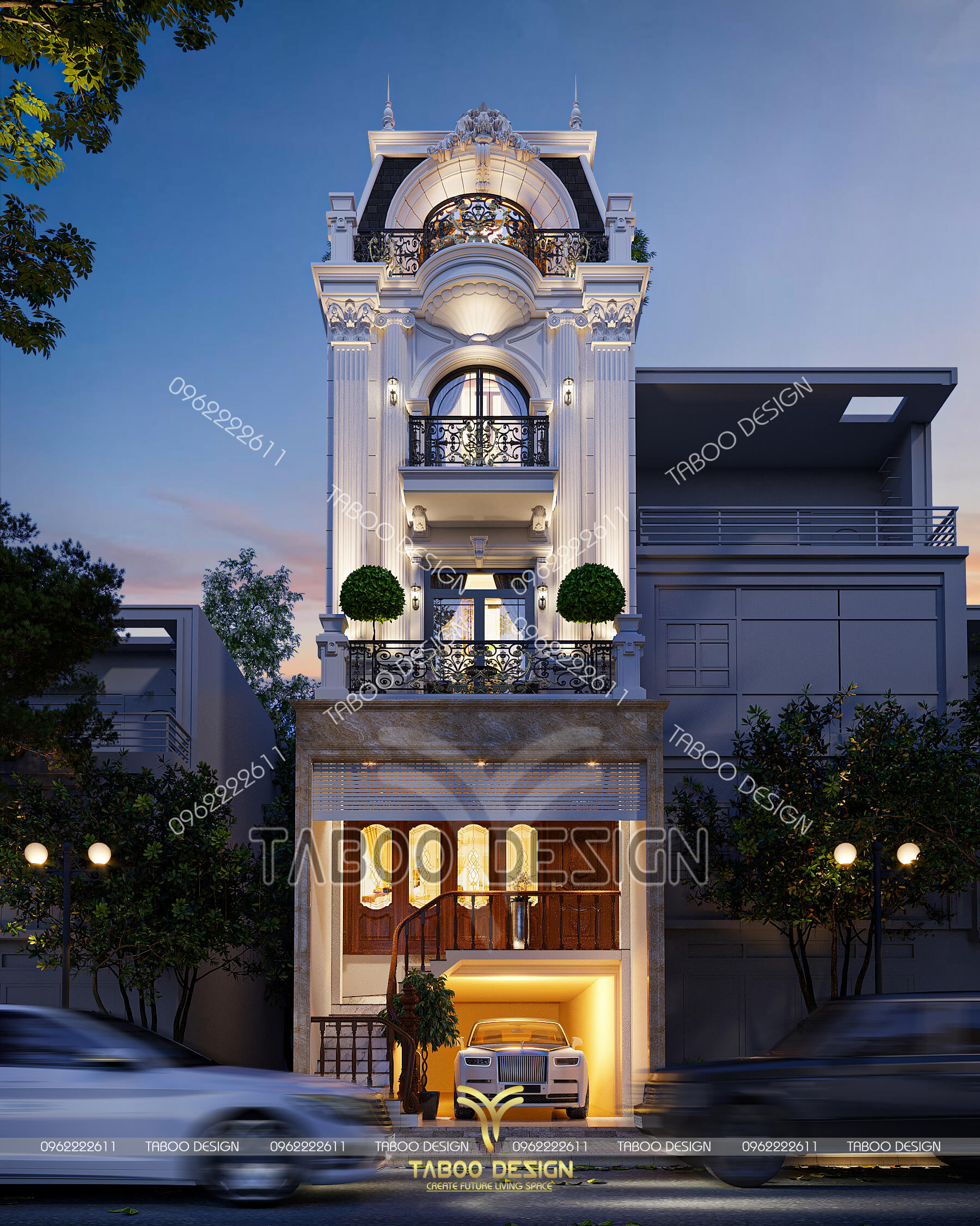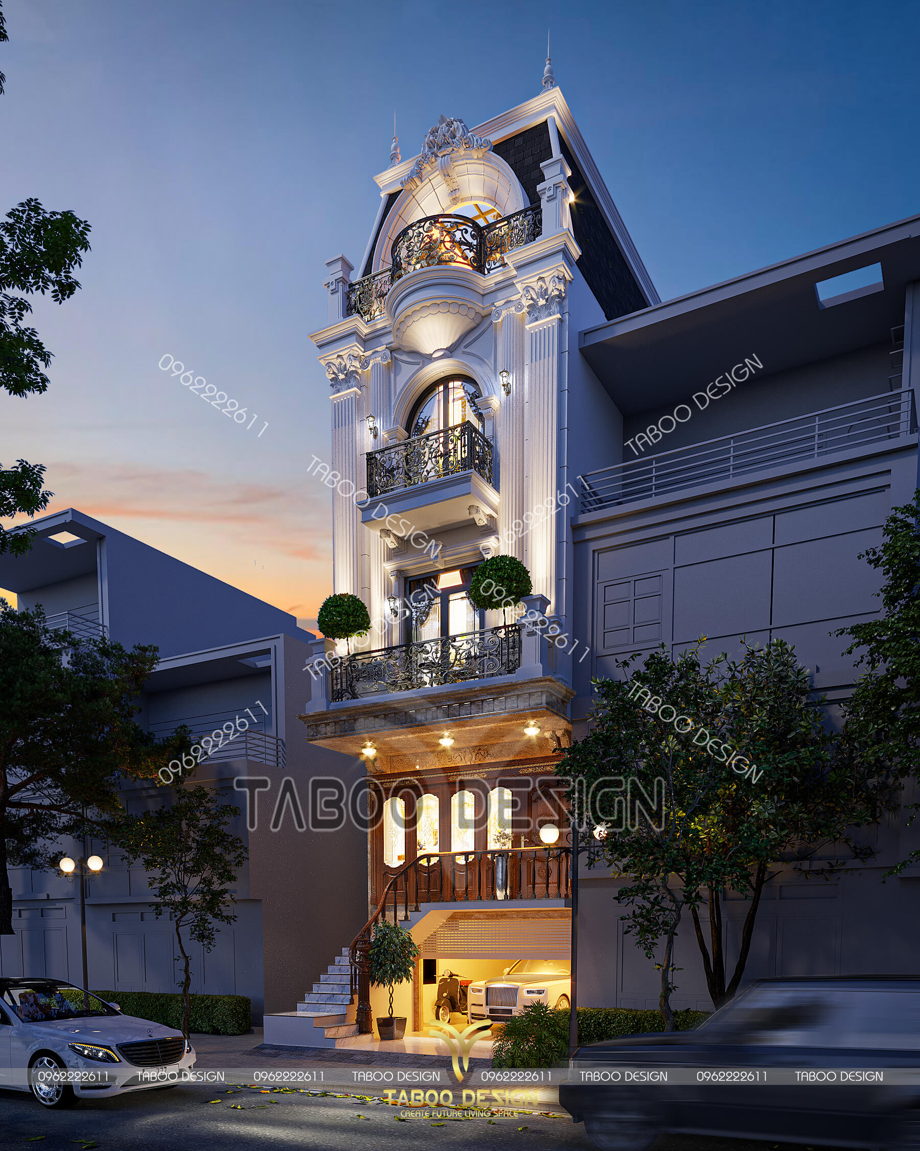 Mọi thông tin về kiến trúc - phong thủy - thi công của Mẫu nhà phố Tân cổ điển 3 tầng, quý khách vui lòng liên hệ hotline 0962222611 để được Taboo Design giải đáp chi tiết.