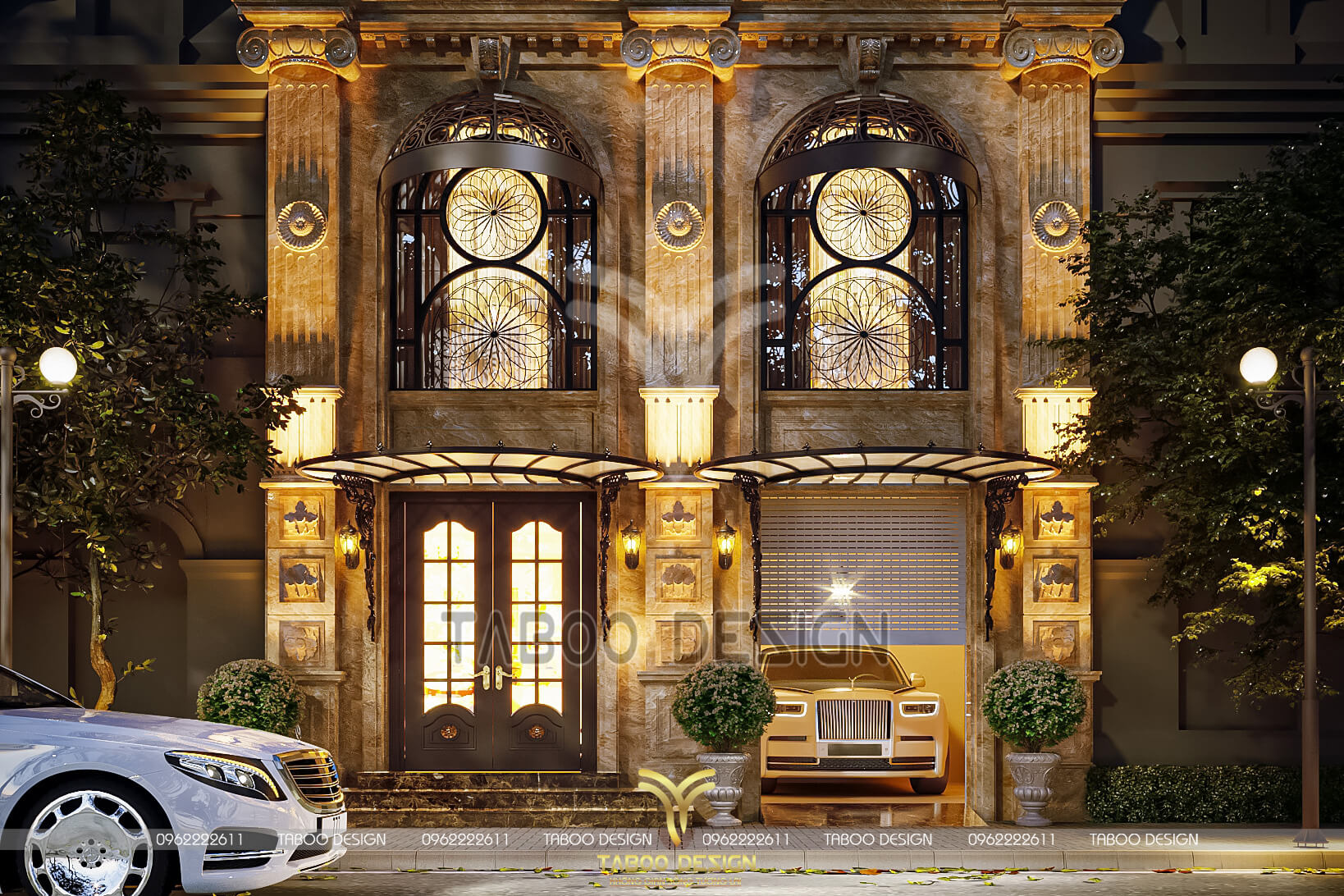 Ông Thực ở Hải Dương là một trong những khách hàng có những yêu cầu về mặt ngoại thất rất khắt khe. Chính vì lẽ đó mà trước khi lên phương án phối cảnh, chúng tôi đã có buổi gặp gỡ và tìm hiểu sở thích cũng như mong muốn của gia chủ. Sau 1 tuần duyệt phương án, Taboo Design đã nhận được cái ngật đầu từ ông Thực cho mẫu nhà phố tân cổ điển 5 tầng. Với vẻ đẹp không quá nhiều chi tiết nhưng với lợi thế về chiều cao nên công trình hoàn toàn thể hiện được sự bề thế, hoành tráng.