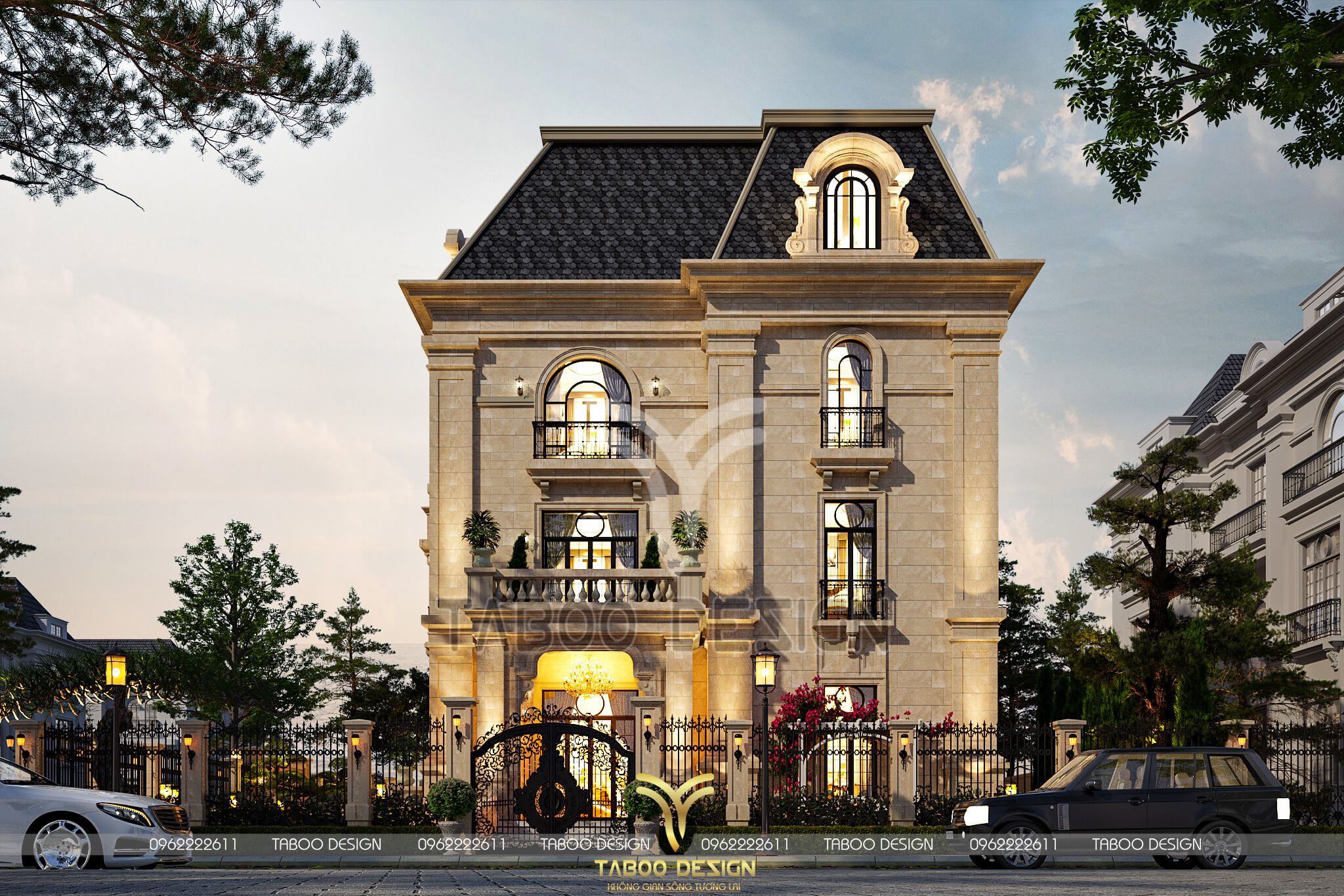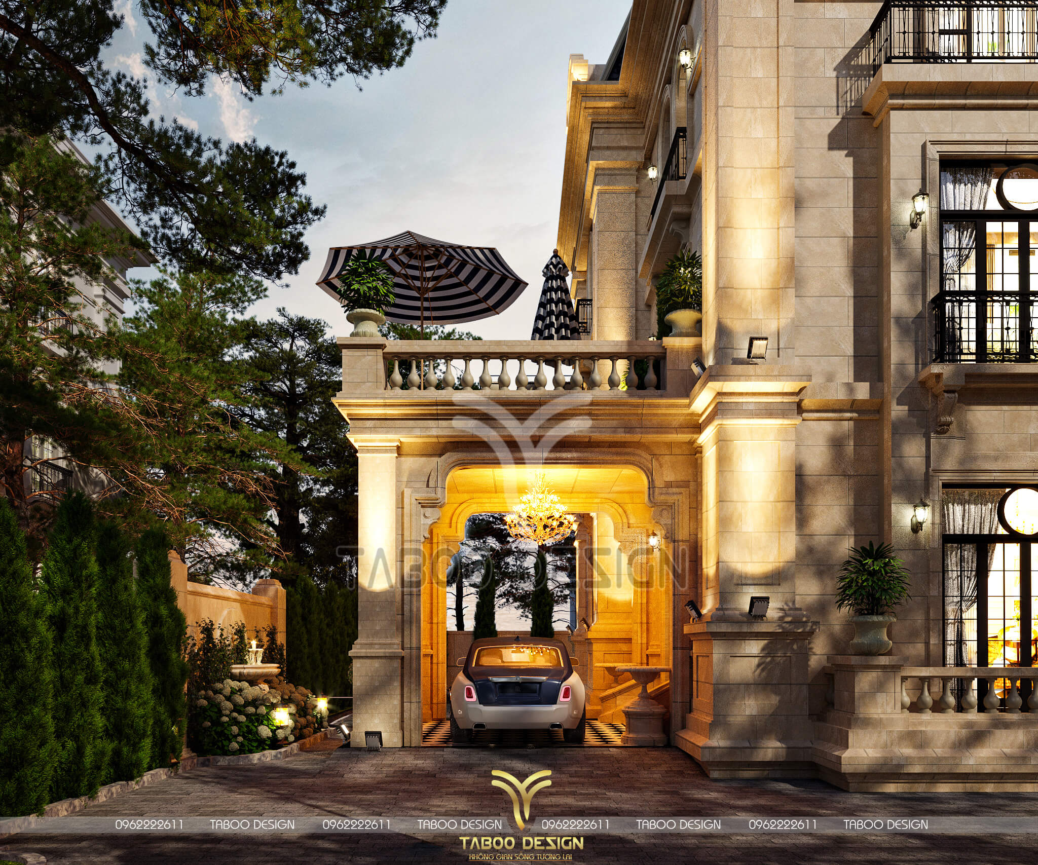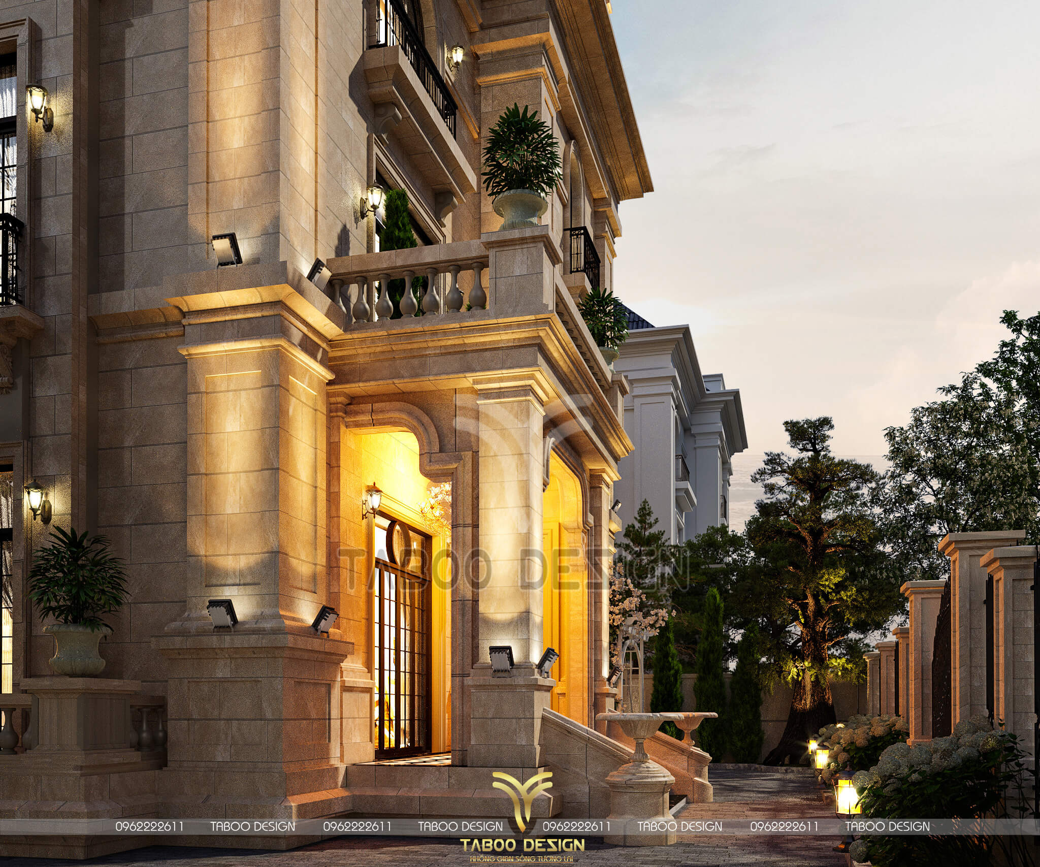 Mọi thông tin về kiến trúc - phong thủy - thi công của Mẫu biệt thự Tân cổ điển 3 tầng, quý khách vui lòng liên hệ hotline 0962222611 để được Taboo Design giải đáp chi tiết.