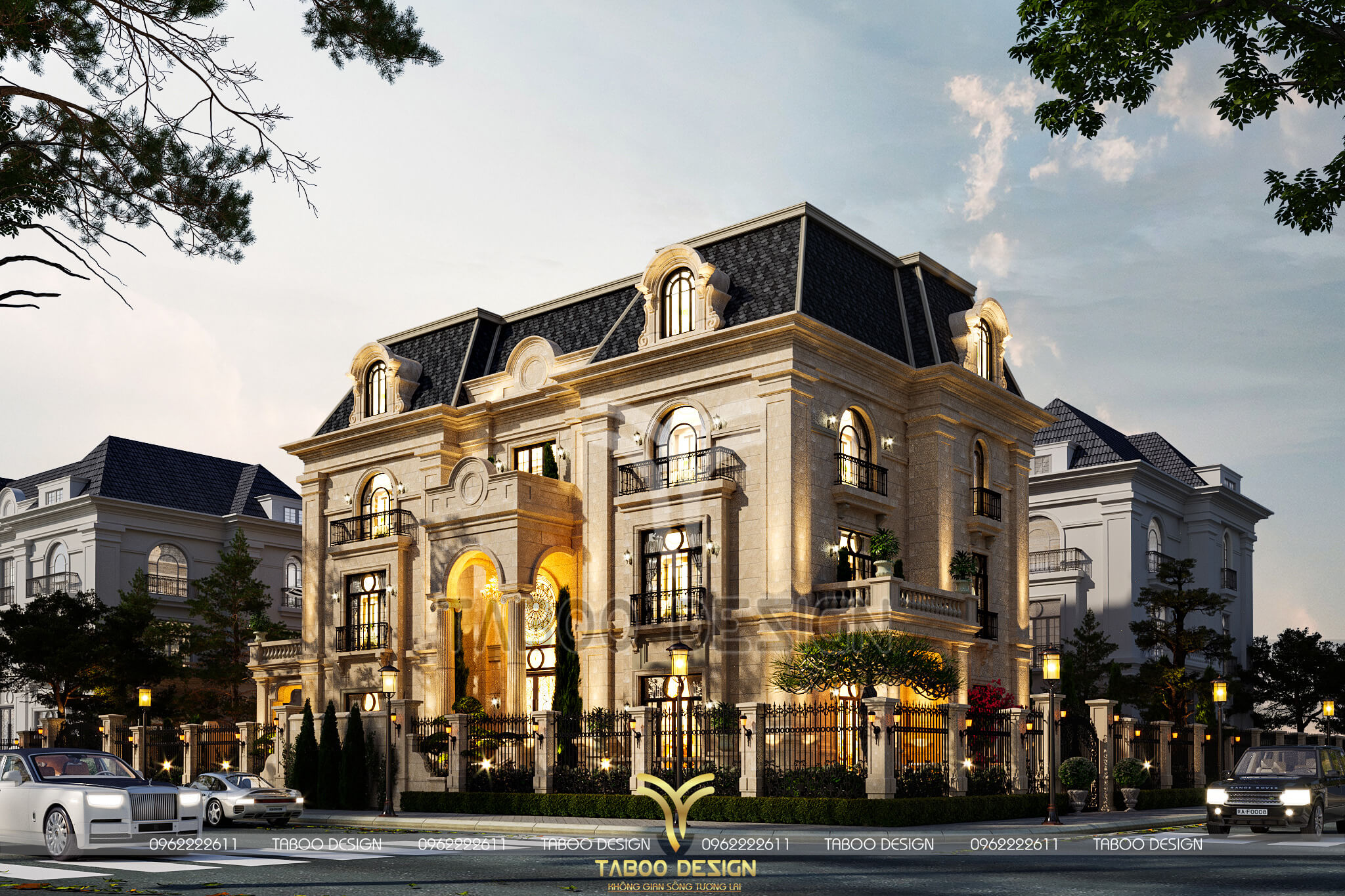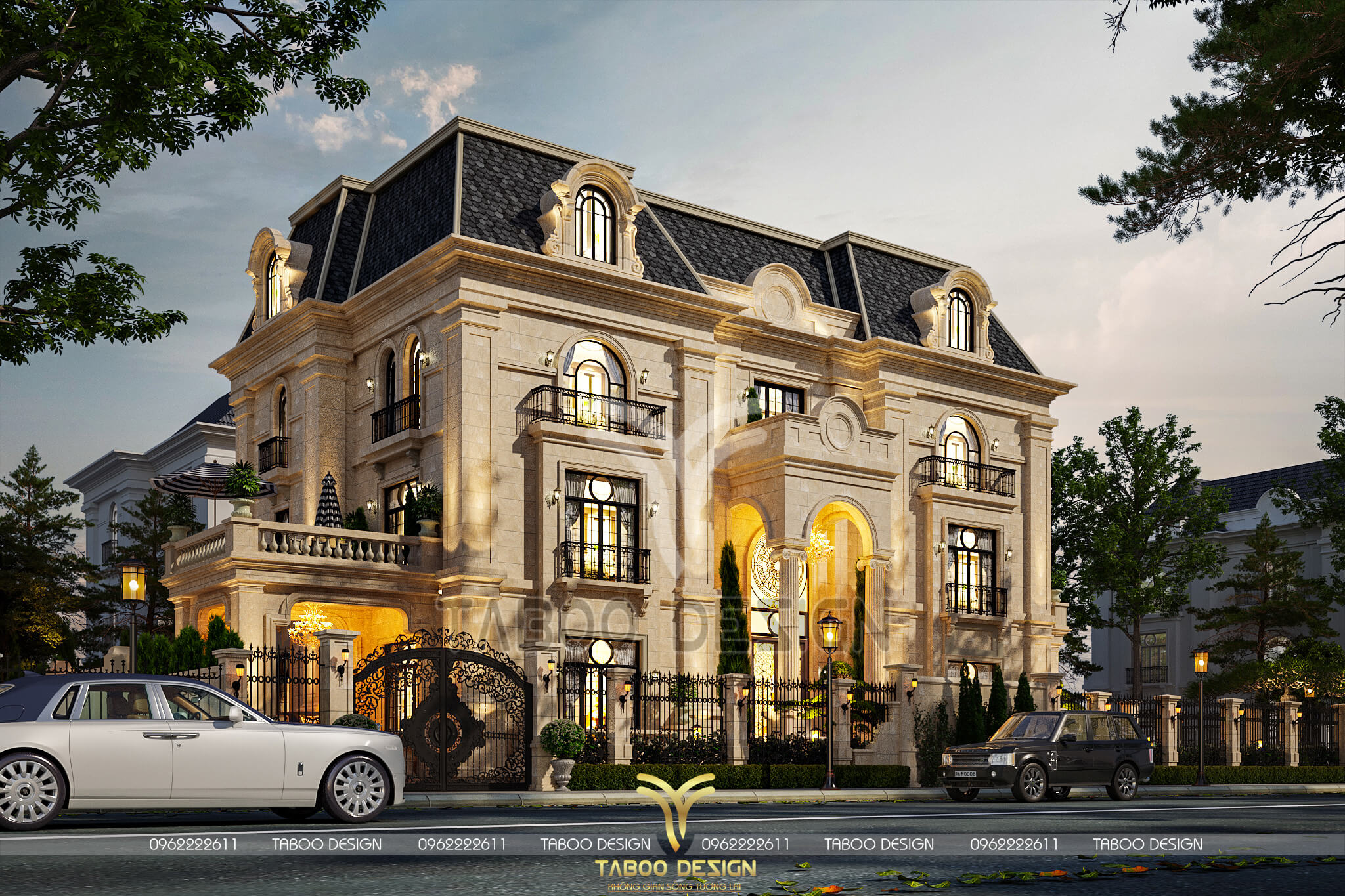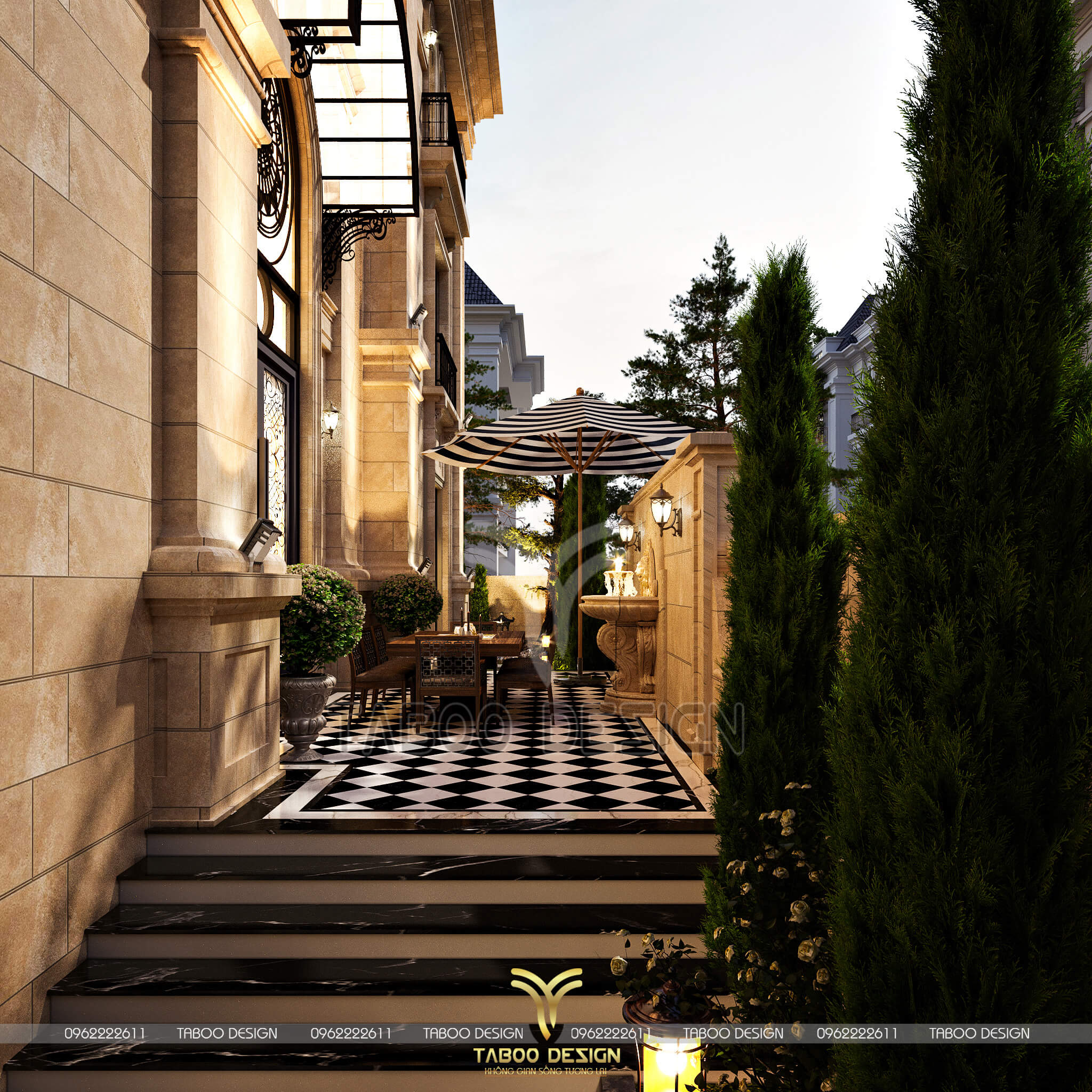 Mọi thông tin về kiến trúc - phong thủy - thi công của Mẫu biệt thự Tân cổ điển 3 tầng, quý khách vui lòng liên hệ hotline 0962222611 để được Taboo Design giải đáp chi tiết.