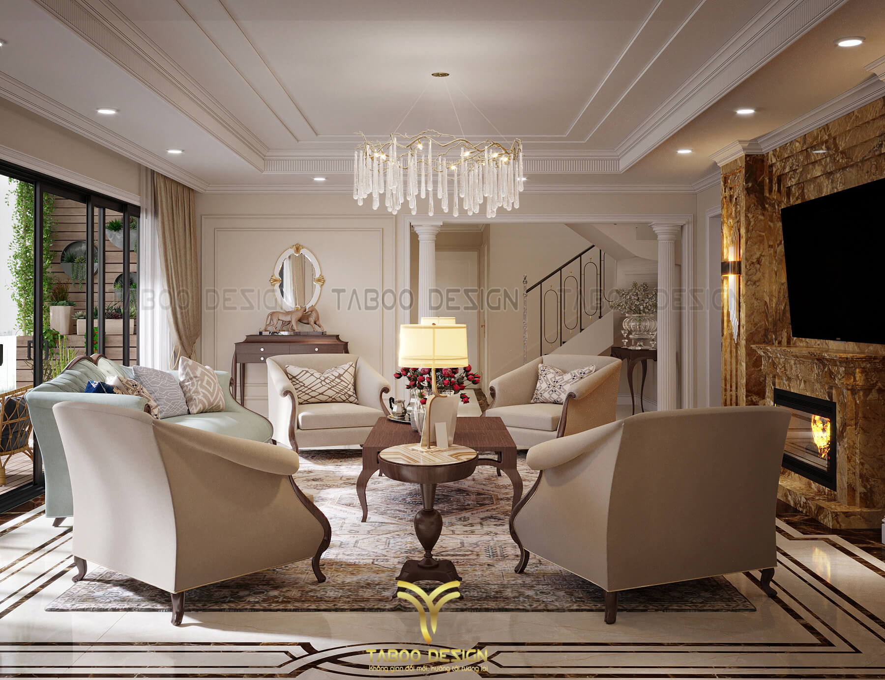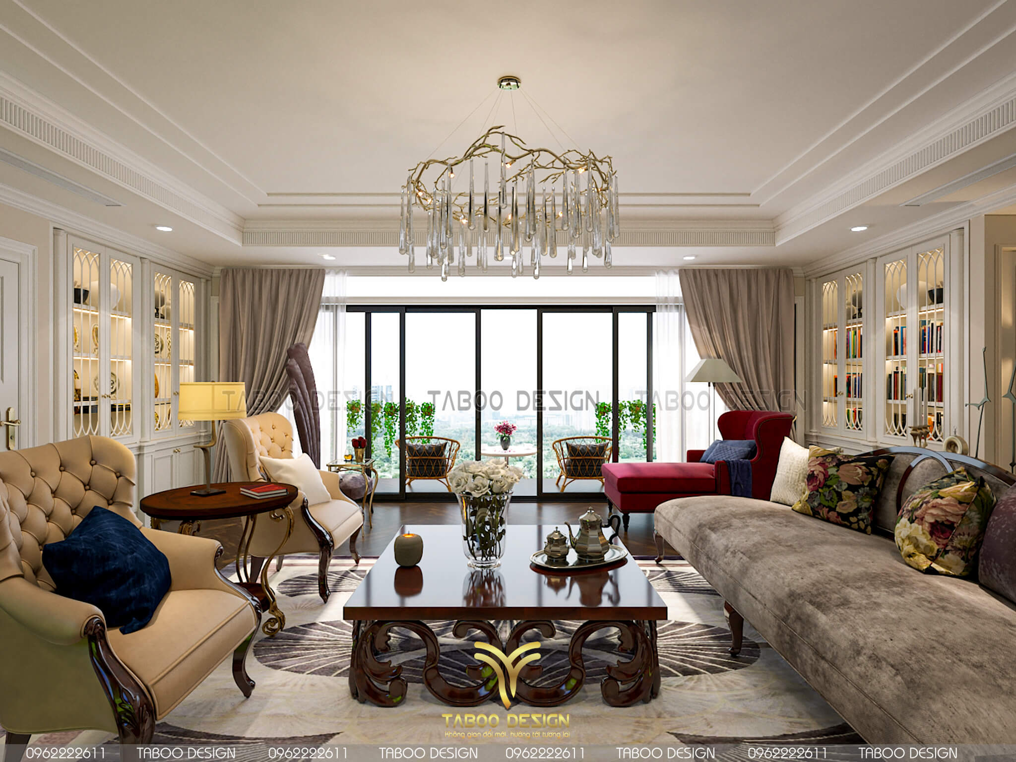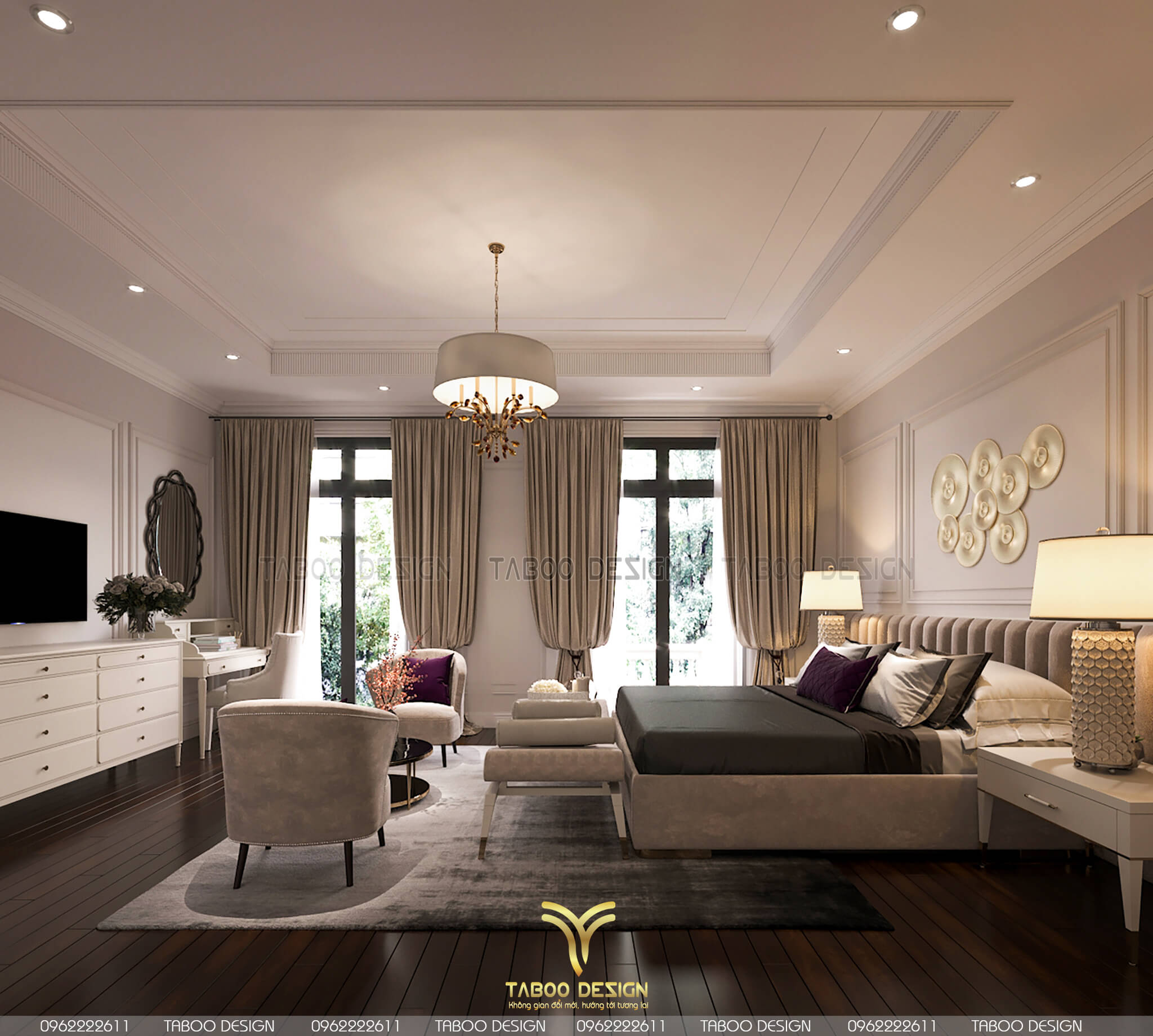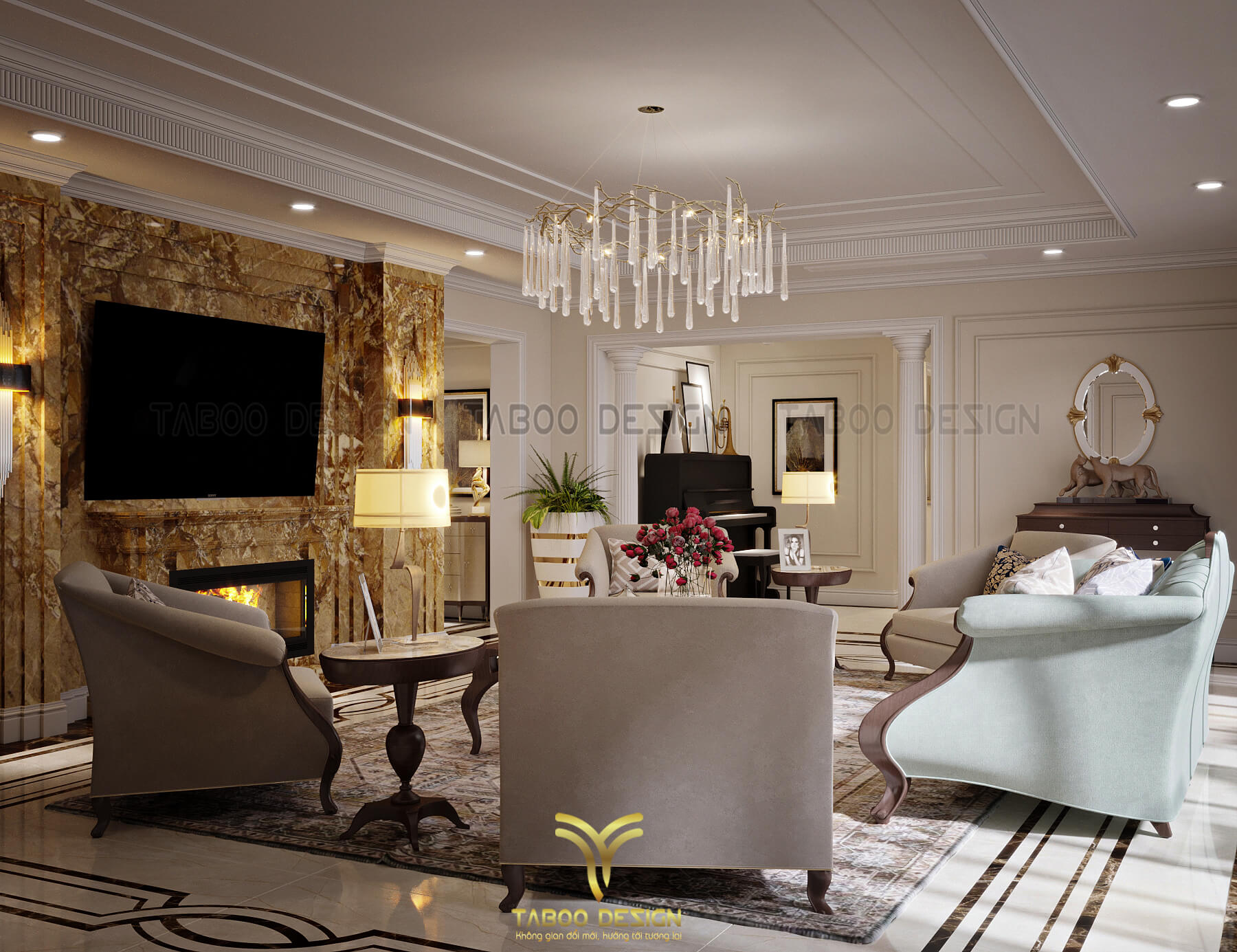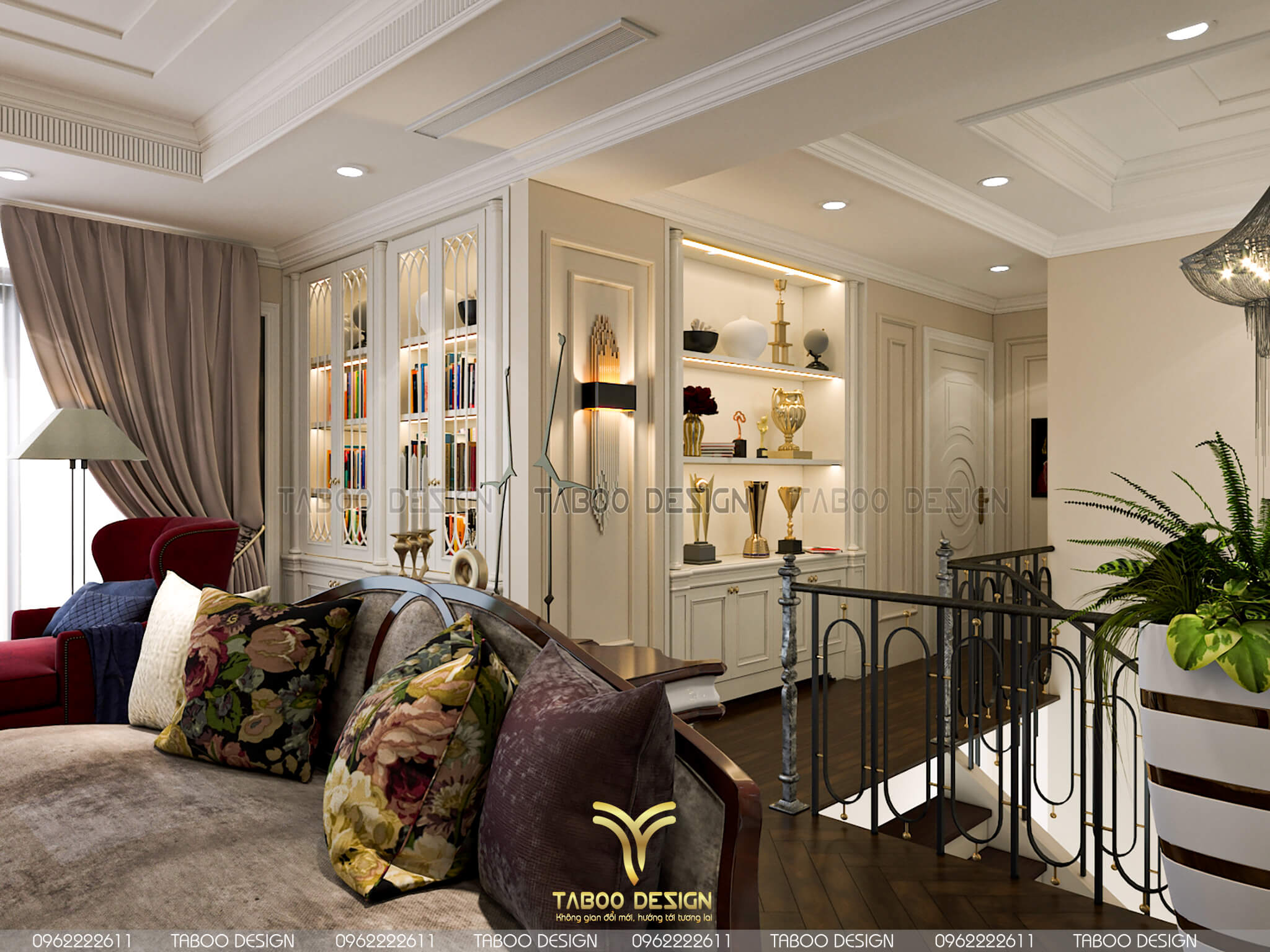 Mẫu thiết kế nội thất đẹp phong cách tân cổ điển trên đây là một ví dụ điển hình về không gian sống nhẹ nhàng, sang trọng và độc đáo. Để sở hữu riêng cho gia đình mình những không gian sống riêng, mới lạ và đáp ứng gu thẩm mỹ, hãy liên hệ ngay với TABOO DESIGN để được tư vấn thiết kế nhé!
