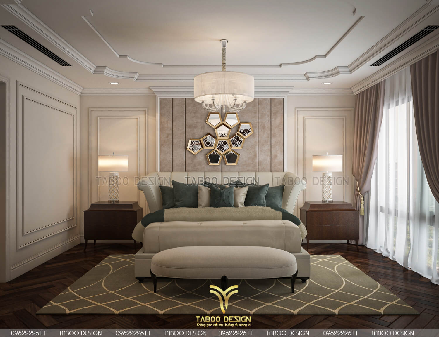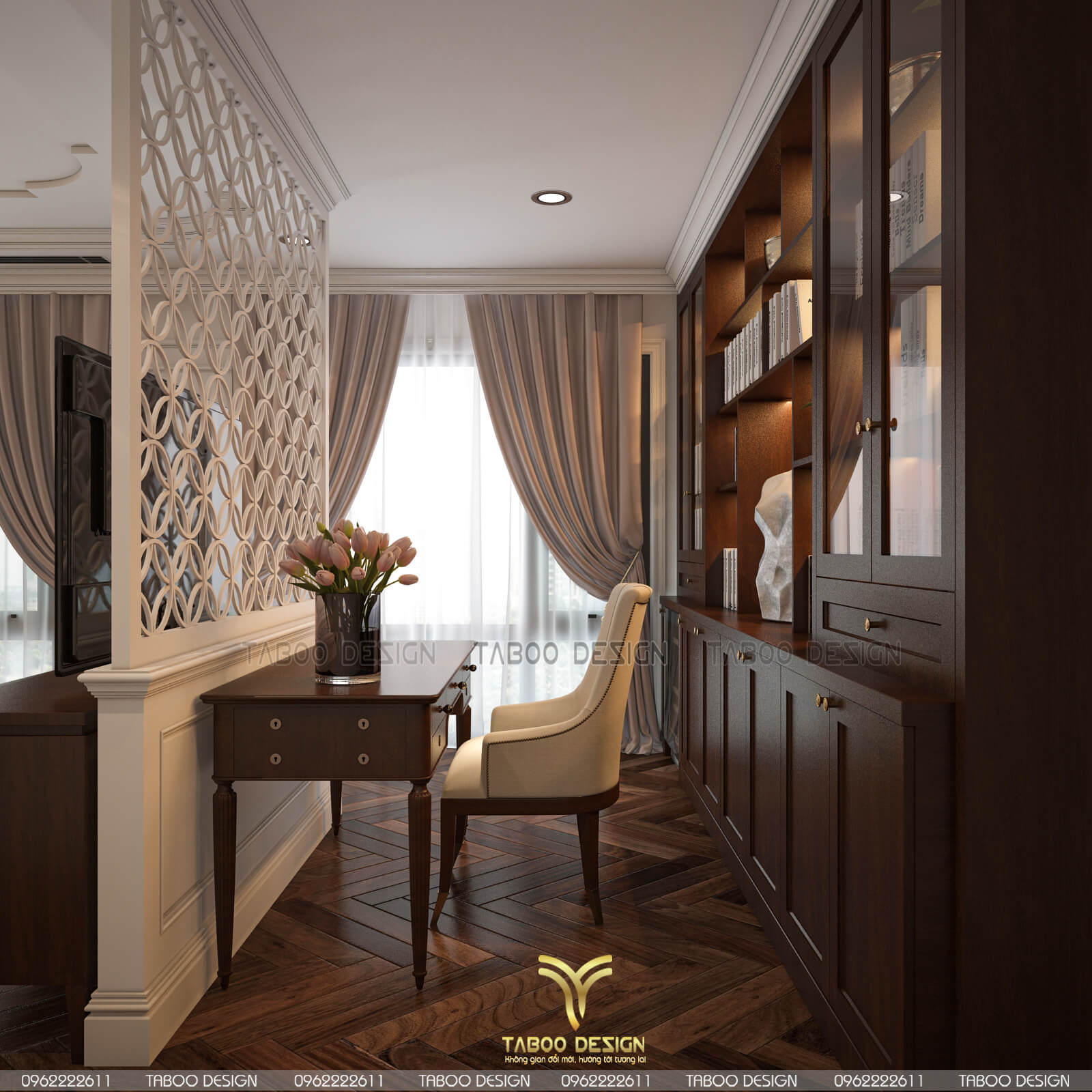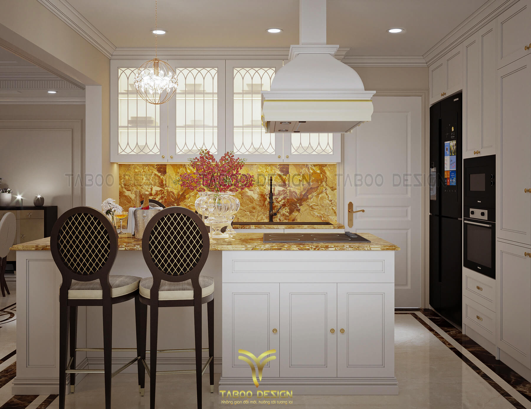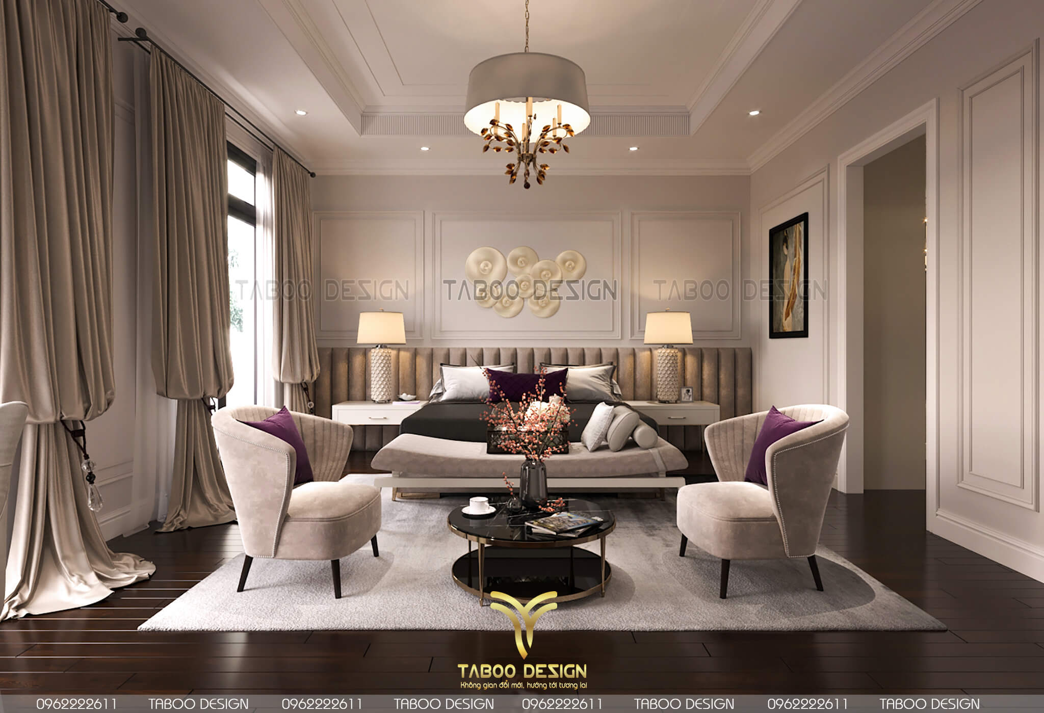 Mẫu thiết kế nội thất đẹp phong cách tân cổ điển trên đây là một ví dụ điển hình về không gian sống nhẹ nhàng, sang trọng và độc đáo. Để sở hữu riêng cho gia đình mình những không gian sống riêng, mới lạ và đáp ứng gu thẩm mỹ, hãy liên hệ ngay với TABOO DESIGN để được tư vấn thiết kế nhé!