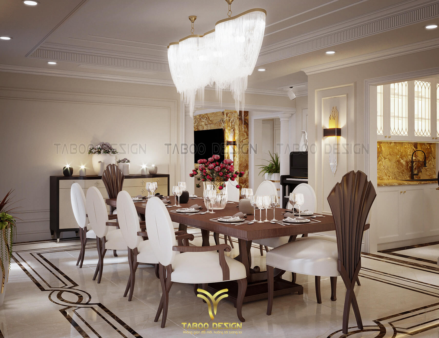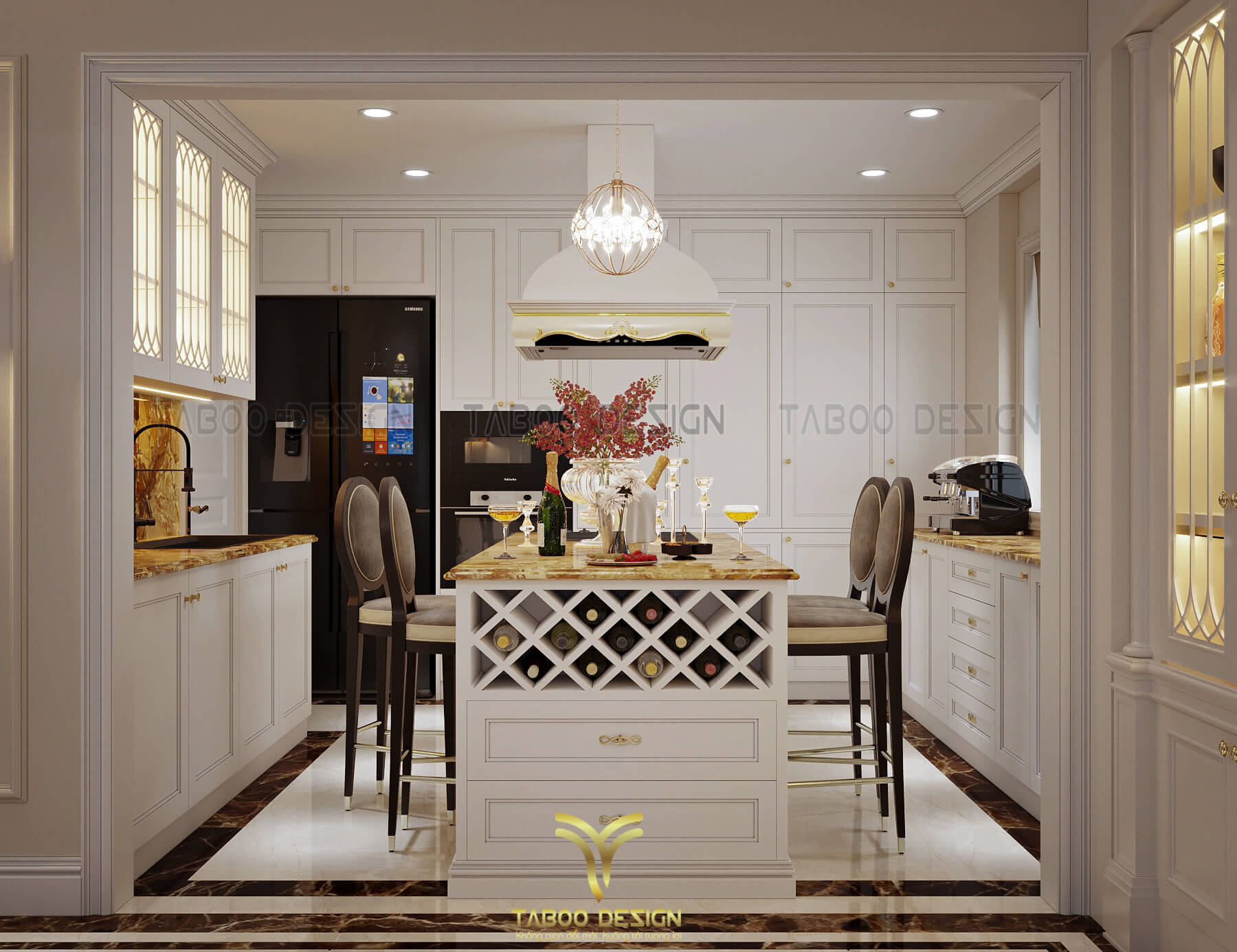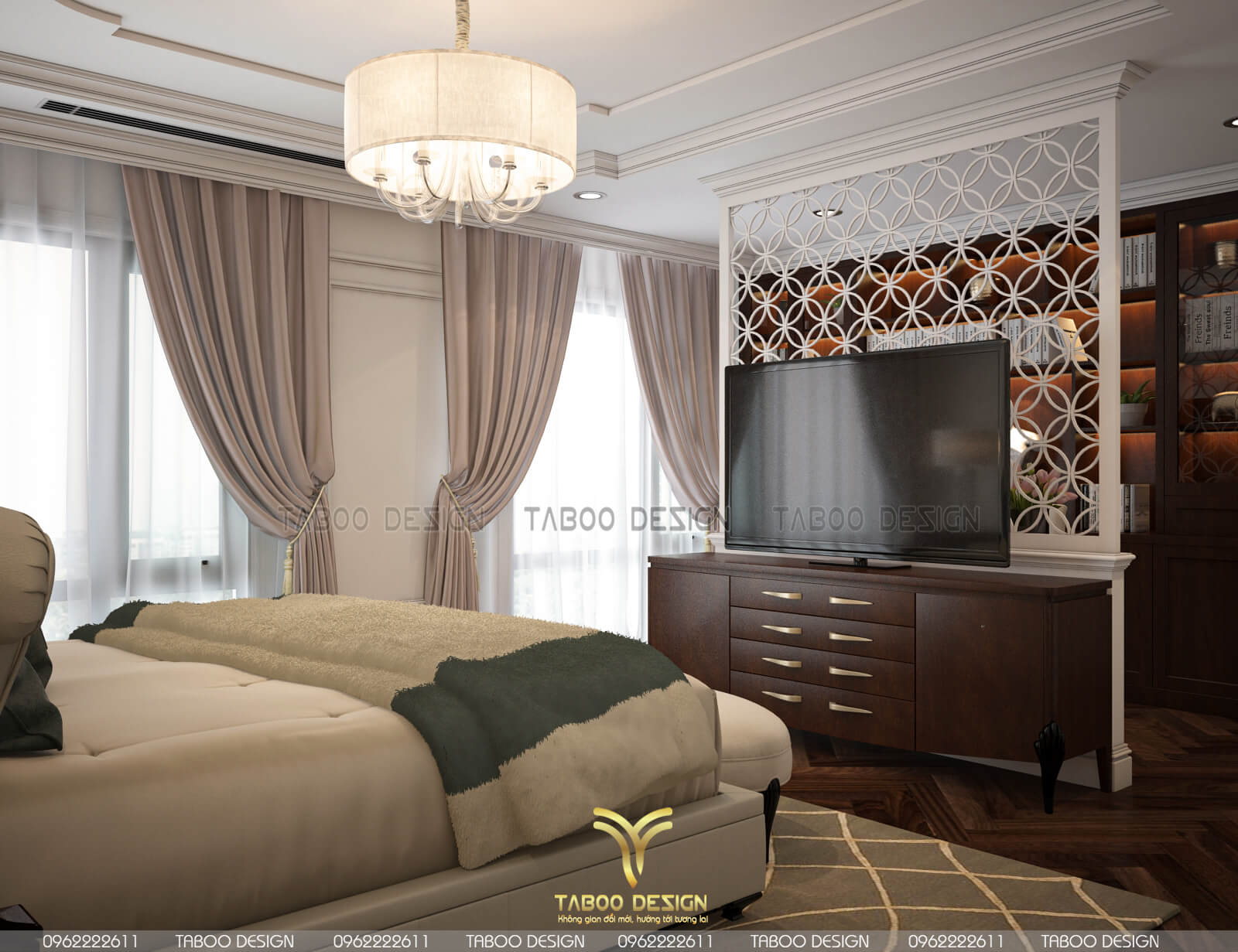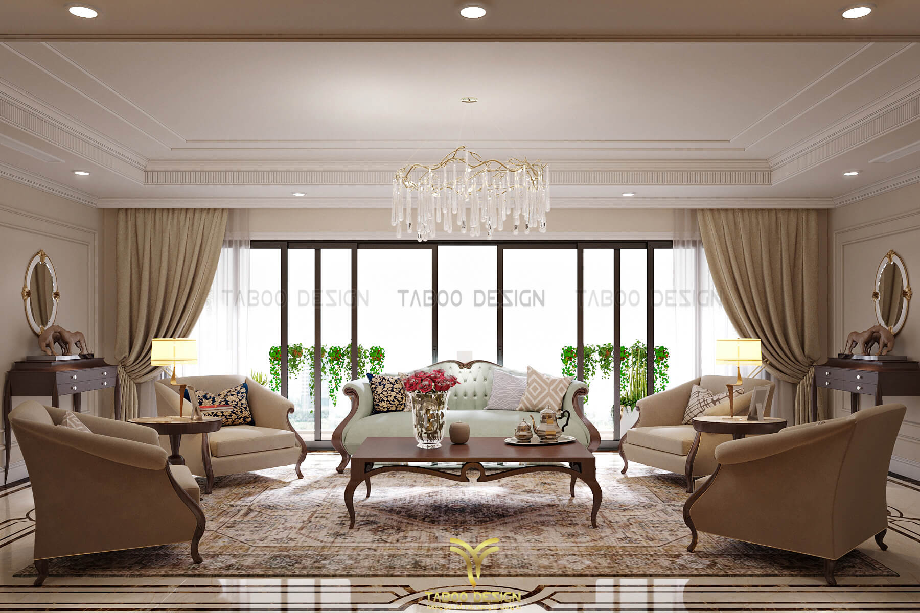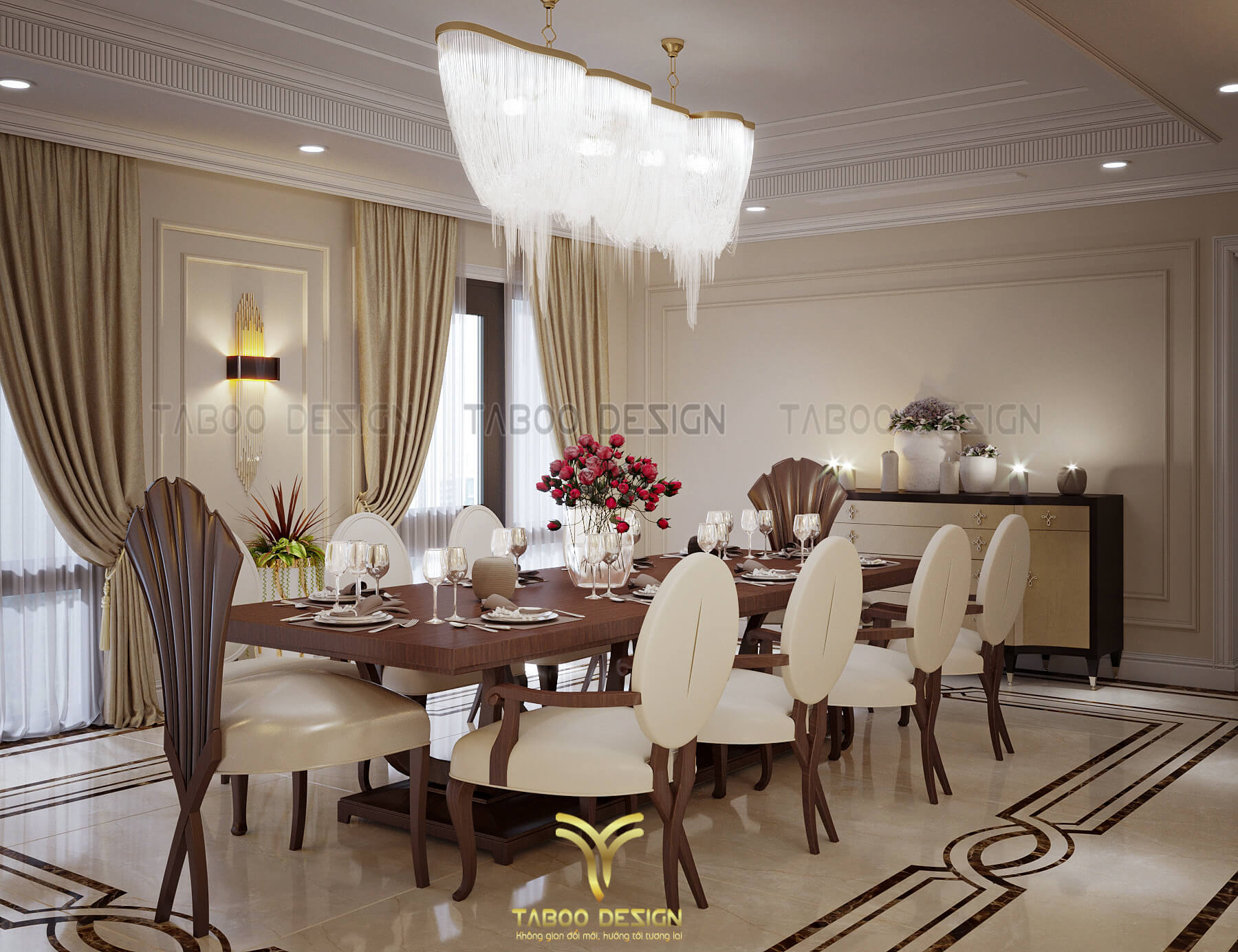 Mẫu thiết kế nội thất đẹp phong cách tân cổ điển trên đây là một ví dụ điển hình về không gian sống nhẹ nhàng, sang trọng và độc đáo. Để sở hữu riêng cho gia đình mình những không gian sống riêng, mới lạ và đáp ứng gu thẩm mỹ, hãy liên hệ ngay với TABOO DESIGN để được tư vấn thiết kế nhé!