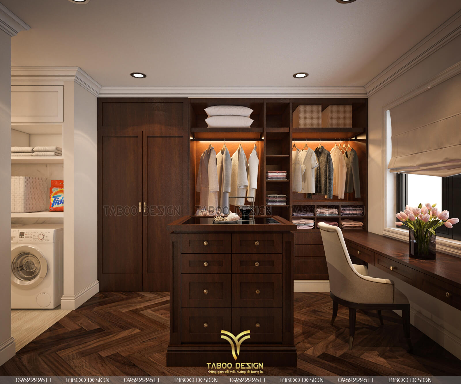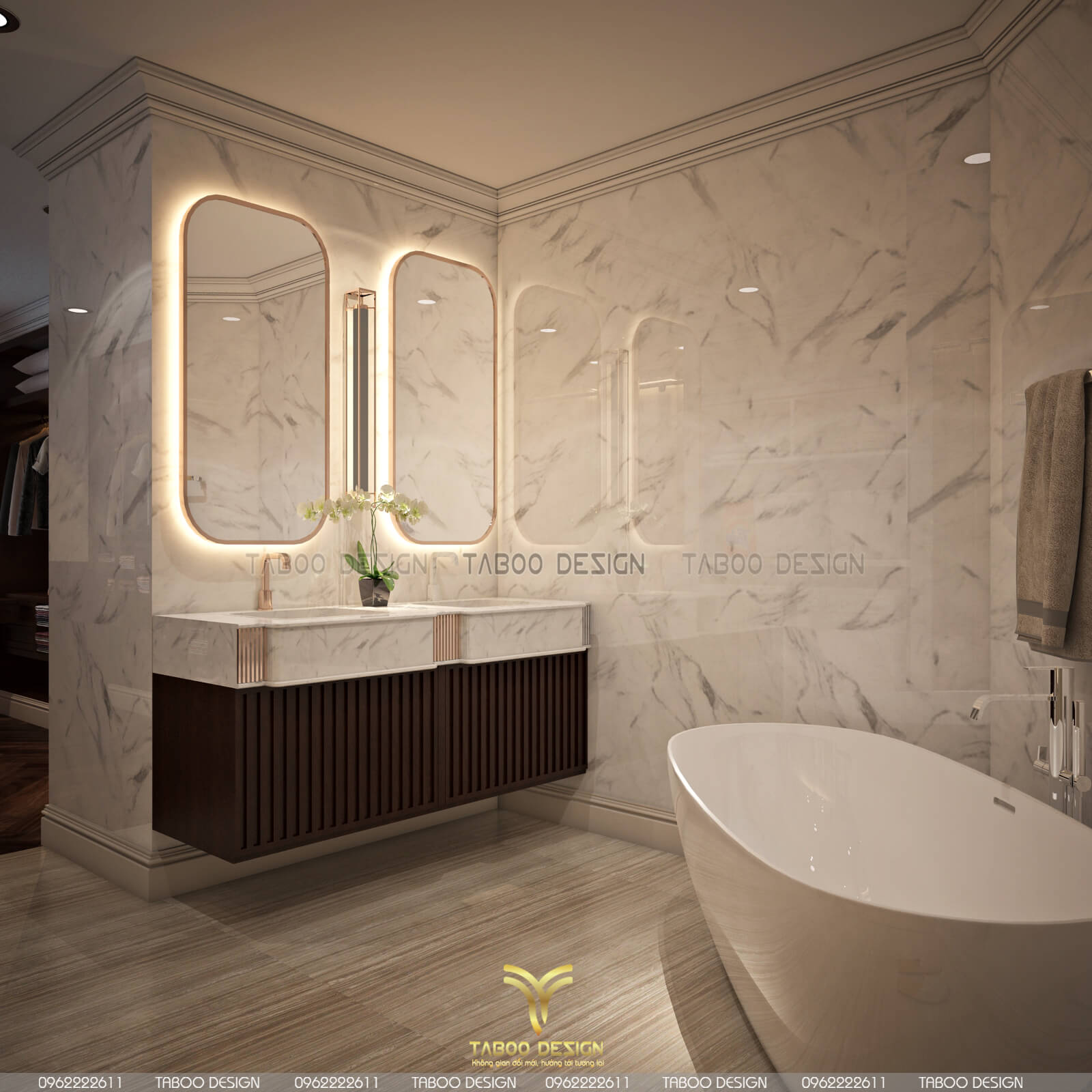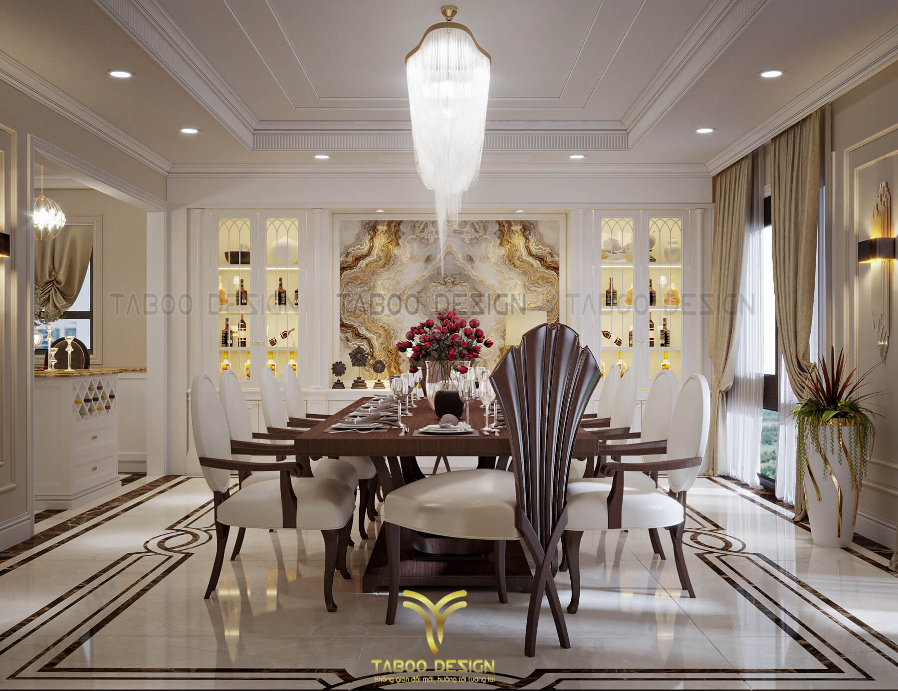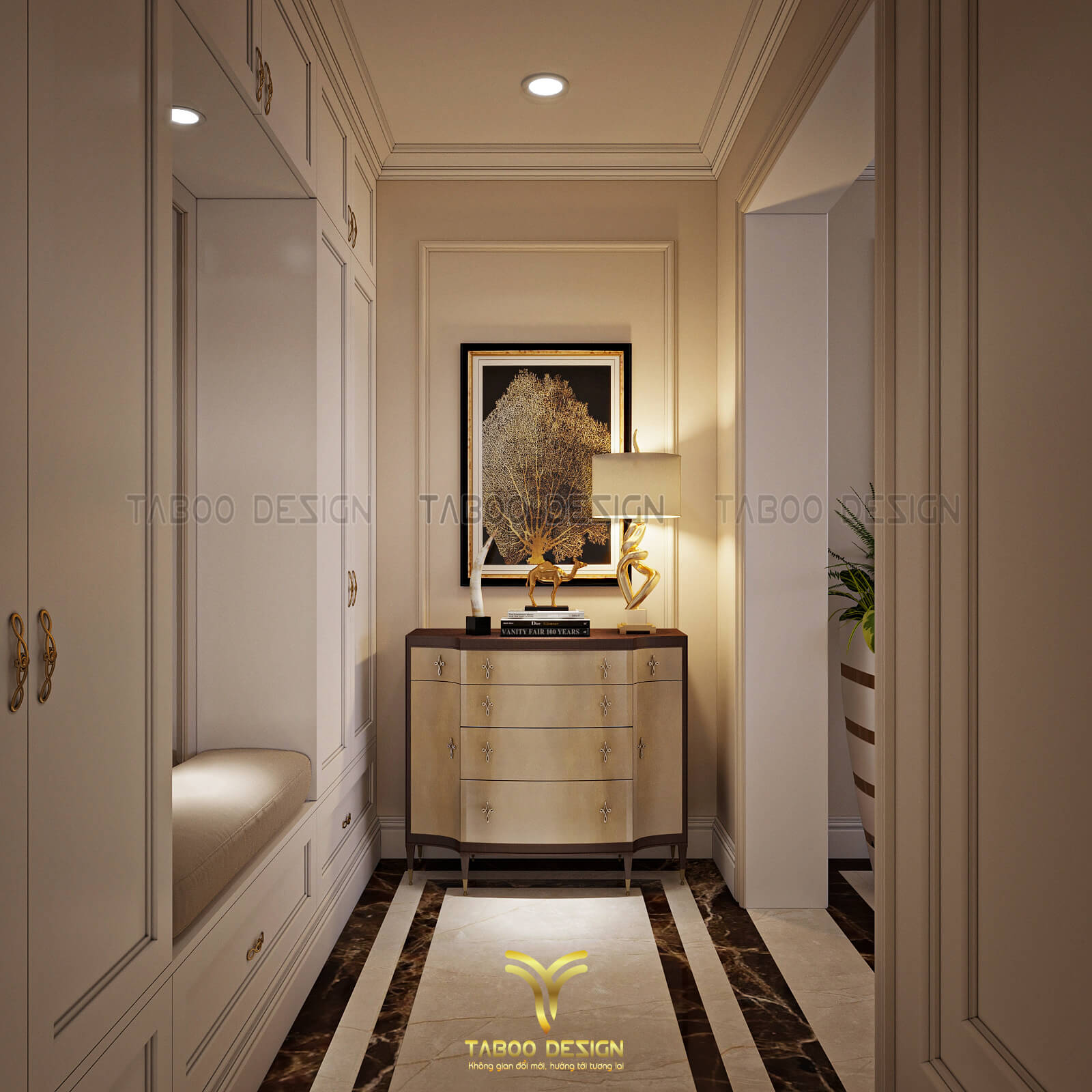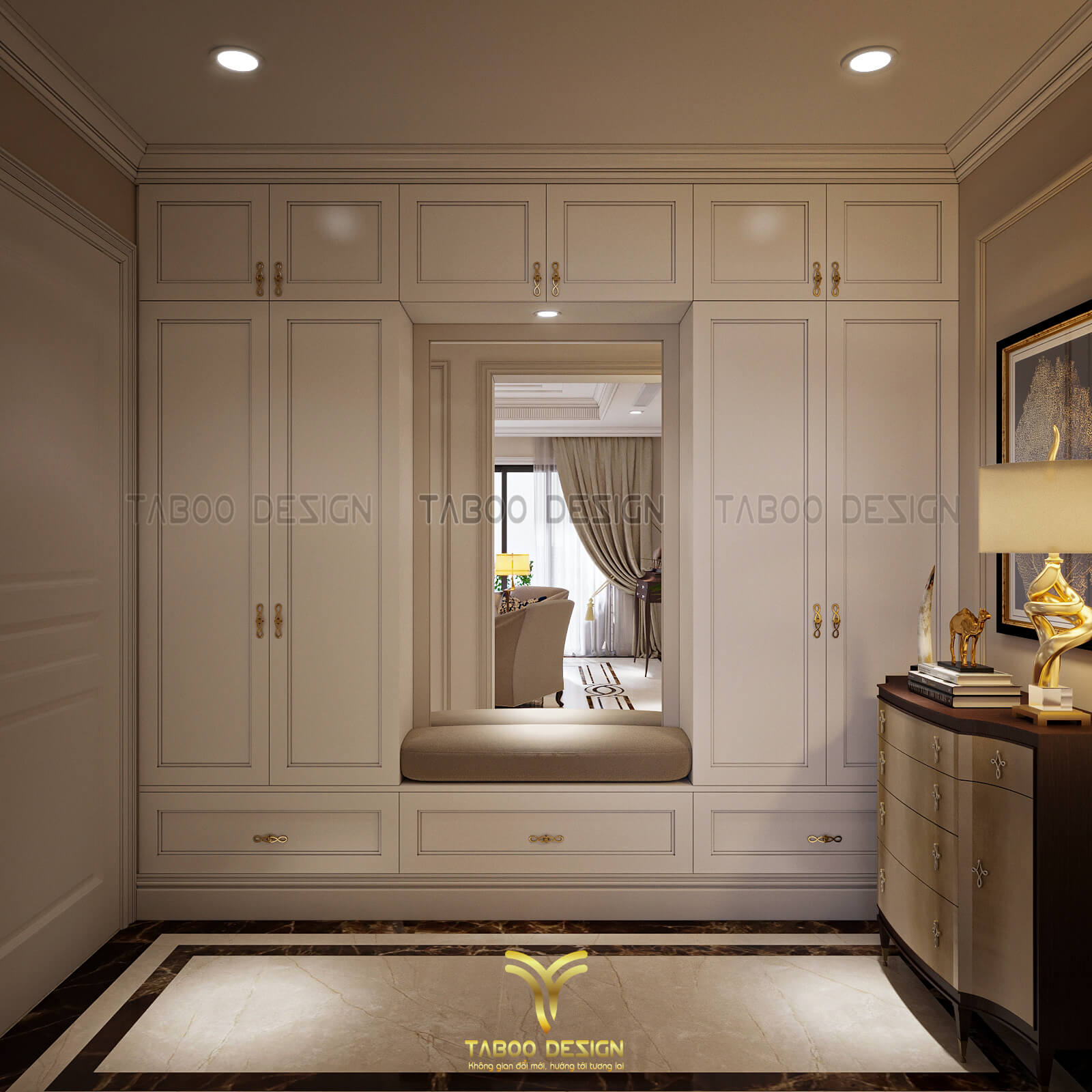 Mẫu thiết kế nội thất đẹp phong cách tân cổ điển trên đây là một ví dụ điển hình về không gian sống nhẹ nhàng, sang trọng và độc đáo. Để sở hữu riêng cho gia đình mình những không gian sống riêng, mới lạ và đáp ứng gu thẩm mỹ, hãy liên hệ ngay với TABOO DESIGN để được tư vấn thiết kế nhé!