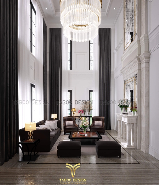 Nội thất tân cổ điển Châu Âu luôn đại diện cho sự tinh tế, tỉ mỉ và cầu kỳ trong từng đường nét. Chúng không chỉ khiến người xem choáng ngợp về kiến trúc không gian uy nghi, lịch lãm, mà còn gián tiếp khẳng định địa vị, phong cách vương giả, sự bề thế của chính gia chủ. Với kiến trúc nội thất nhà ông Cao tại Hải Phòng, đội ngũ KTS Taboo Design đã đem đến mẫu thiết kế nội thất tân cổ điển Châu Âu và nhận được sự hài lòng tuyệt đối từ chủ đầu tư.