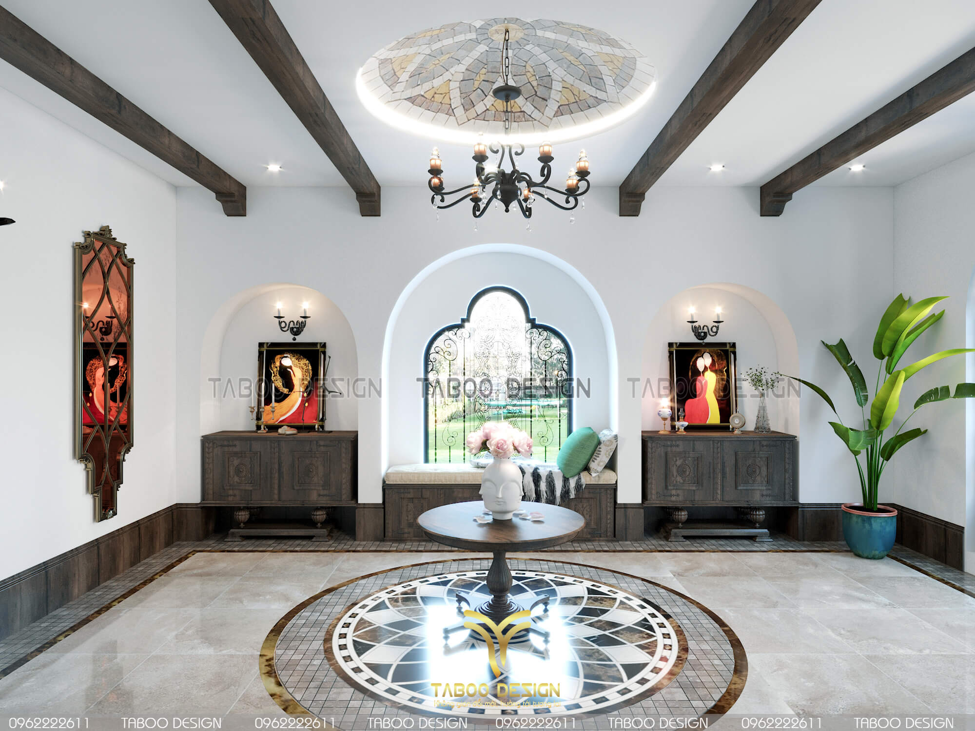 Biệt thự 3 tầng của ông Hội tại Hà Nội do Taboo Design triển khai phương án thiết kế mang đậm chất phong cách Địa Trung Hải. Không gian biệt thự mang đầy sức sống rực rỡ với mảng màu sống động. Công trình 3 tầng khi trông từ xa tựa như bức tranh hài hòa đăng đối, không gian mở kết nối với thiên nhiên bên ngoài độc đáo. Phối cảnh thoáng rộng, hàng hiên rộng và hành lang bao quanh đem lại sự xa hoa một cách phóng khoáng, vẻ đẹp sang trọng, tinh tế, có thể thấy ngay khi nhìn từ ngoài vào.