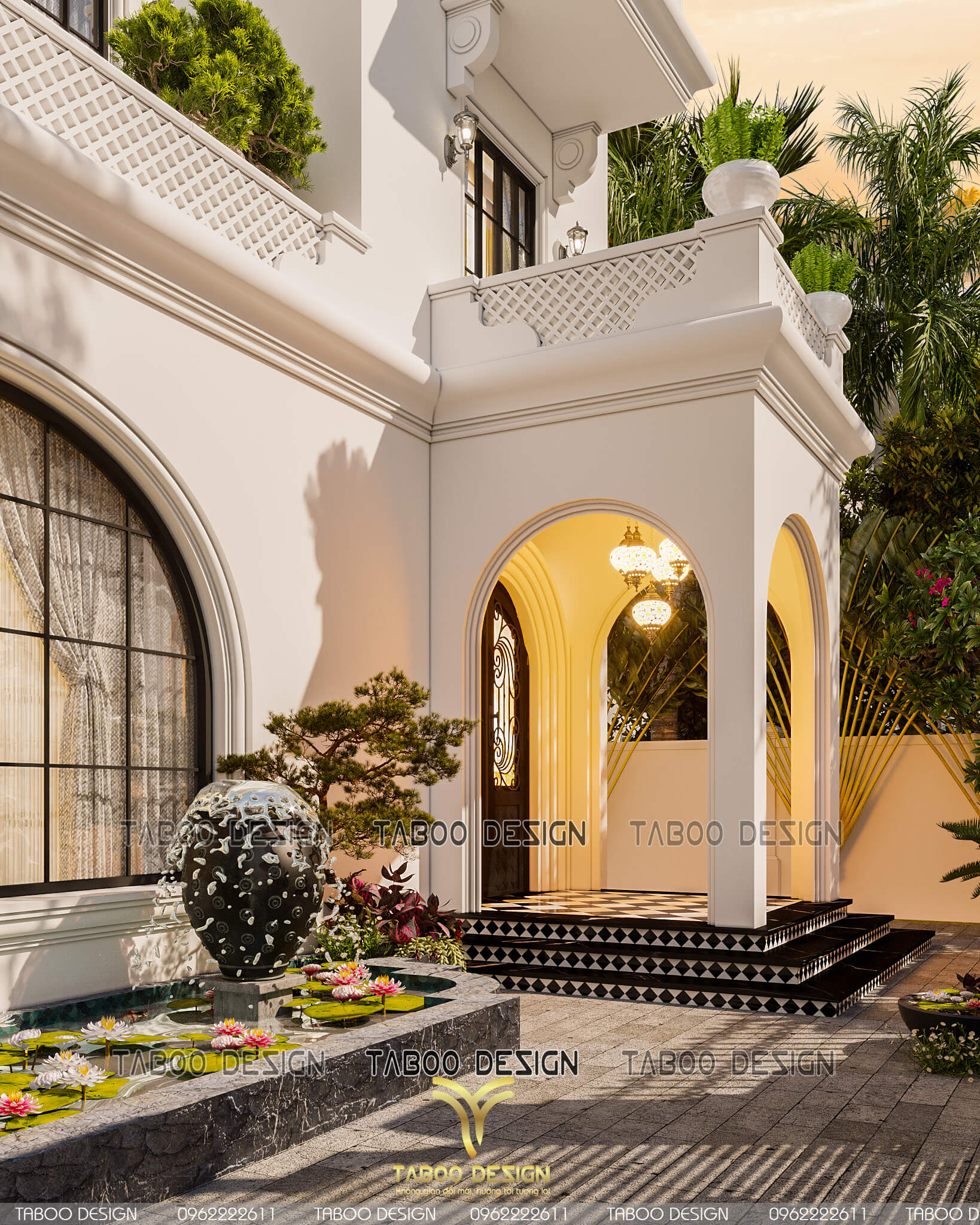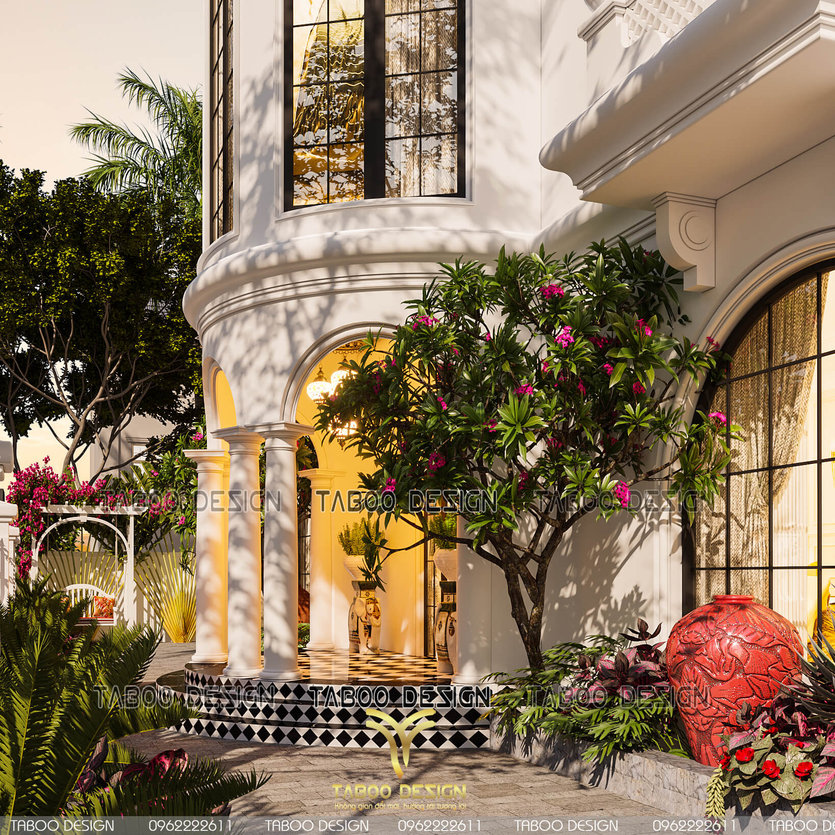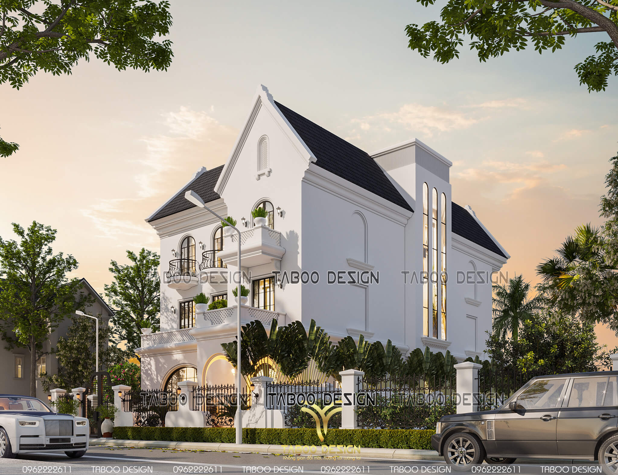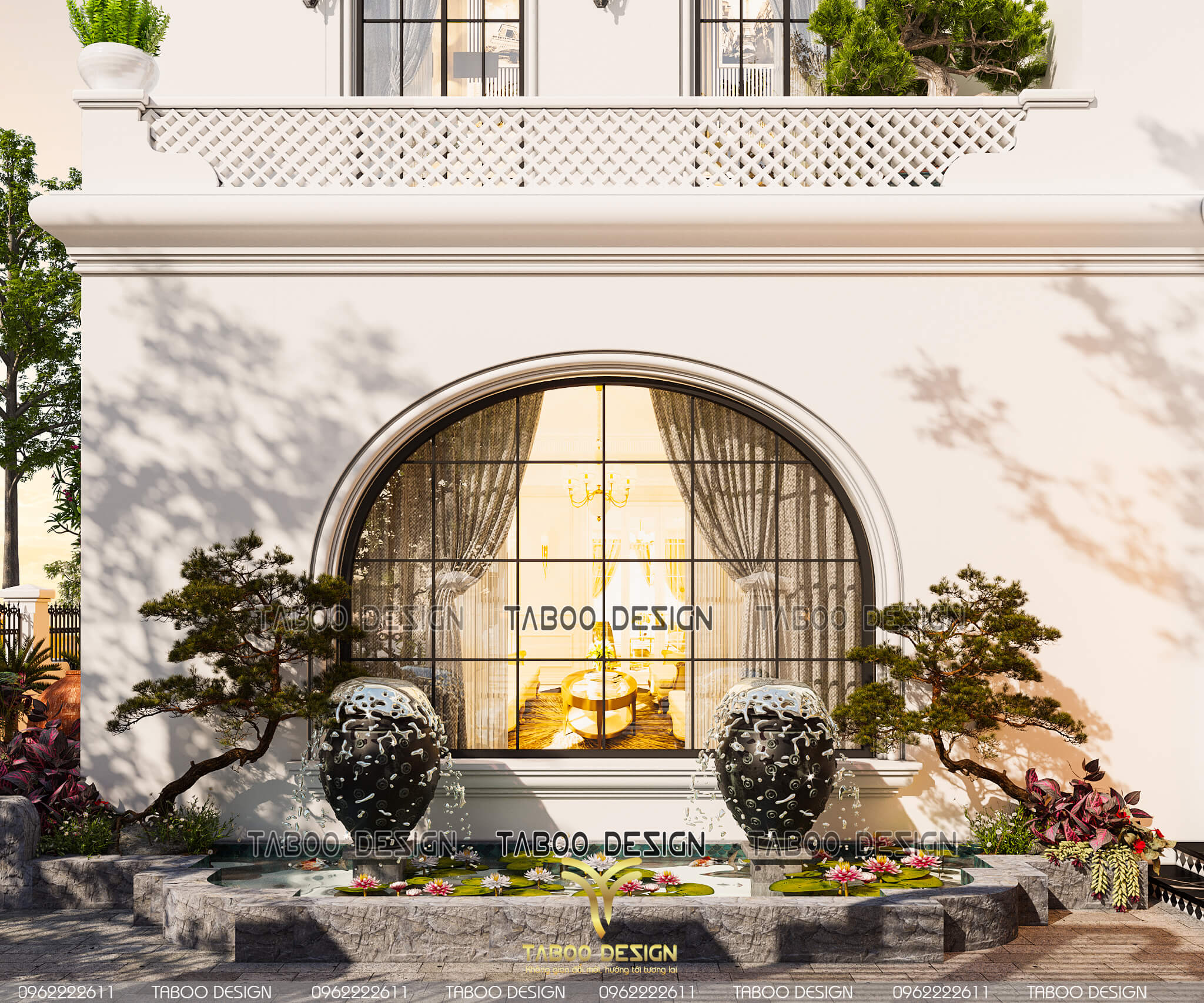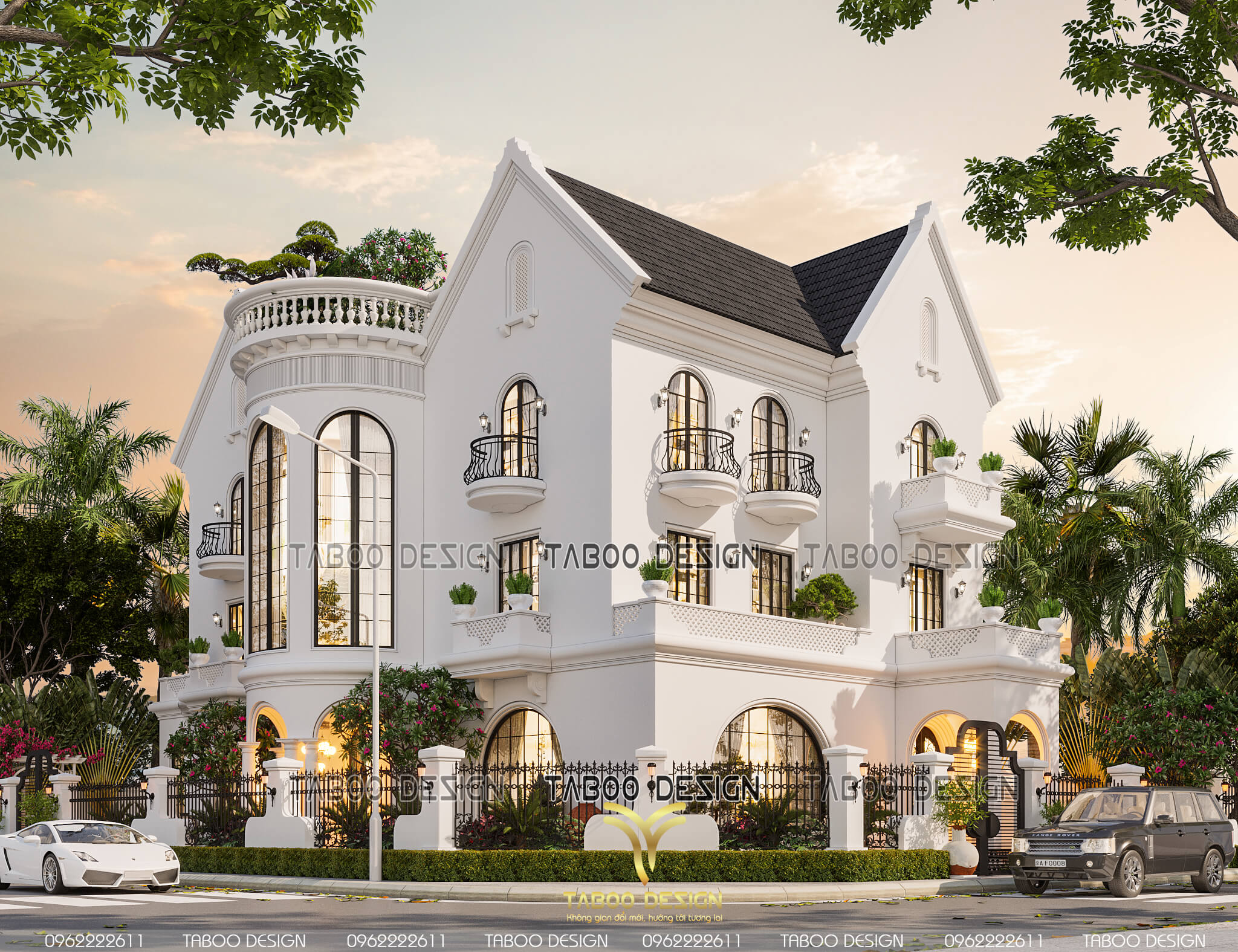 Được xây dựng trên khu đất có diện tích 420m2 và diện tích xây dựng hơn 200m2 mang đến một không gian sang trọng như những biệt thự biển bên bờ Địa Trung Hải. Thiết kế biệt thự 3 tầng hoà quyện giữa đường nét kiến trúc mạnh mẽ của những hệ trụ cột và đường nét tinh tế của mái vòm cong kiểu châu âu tạo nên sự hài hòa cân bằng. Các đường chỉ trang trí được thiết kế theo nguyên tắc nhất định nhằm tạo thẩm mỹ cho công trình chứ không đơn giản là sử dụng tùy tiện.