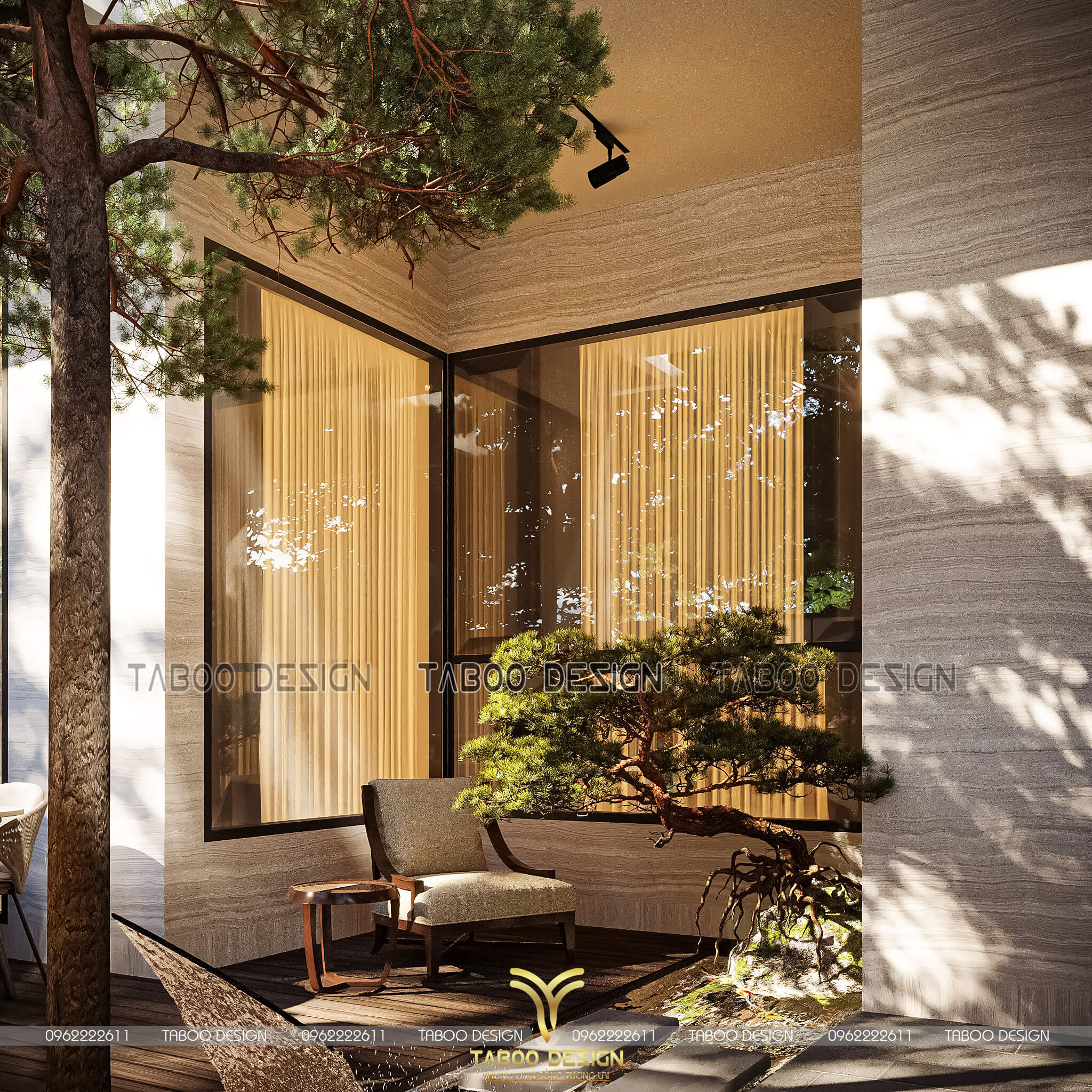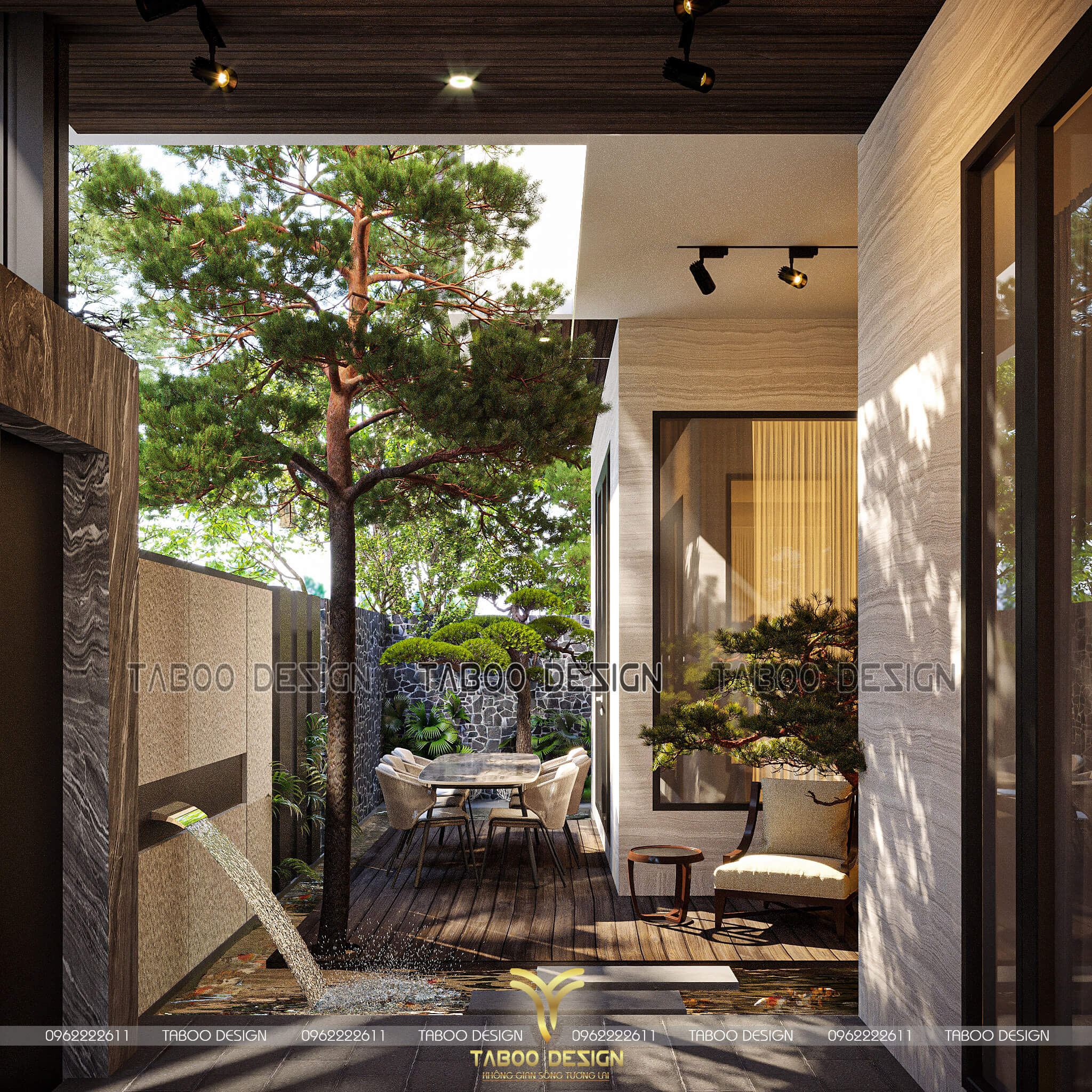 Phối cảnh không gian Terrace, bể cá biệt thự hiện đại 3 tầng