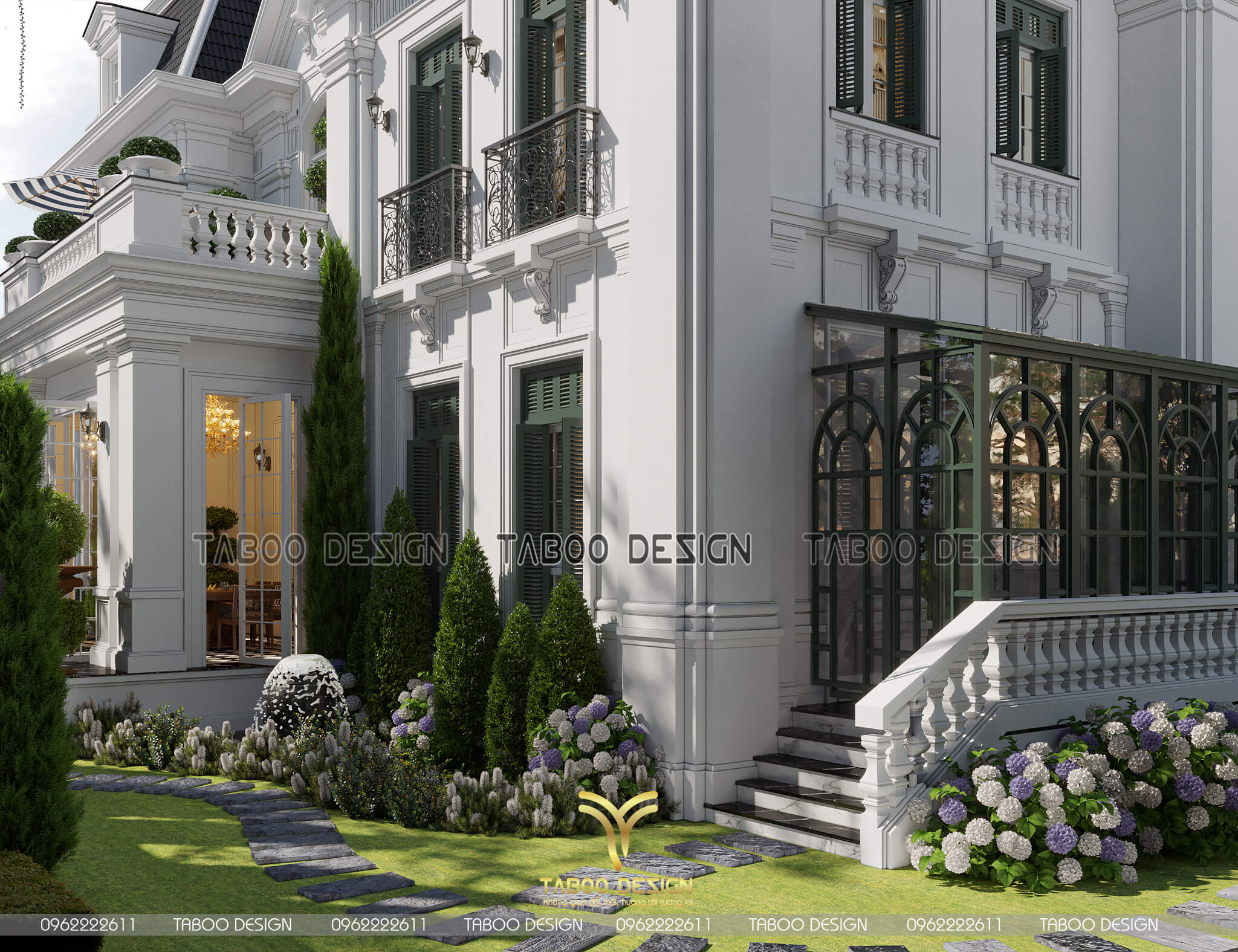 Biệt thự Châu Âu chưa bao giờ là nỗi thất vọng của các gia chủ yêu thích phong cách sống sang trọng – tinh tế bởi mỗi không gian của nó đẹp như những tác phẩm nghệ thuật. Khi đến với TABOO DESIGN, gia chủ hoàn toàn có thể yên tâm rằng mình sẽ sở hữu được công trình biệt thự Pháp không chỉ độc đáo trong thiết kế mà còn chất lượng trong thi công. Không những thế, ở mẫu biệt thự 2 tầng kiểu Châu Âu này, các kiến trúc mang đến sự bất ngờ với các phiên bản biến tấu mới lạ trong cách sử dụng vật liệu, đường nét, chi tiết và hình khối mang đậm dấu ấn cá nhân mà lại vô cùng tiện nghi.