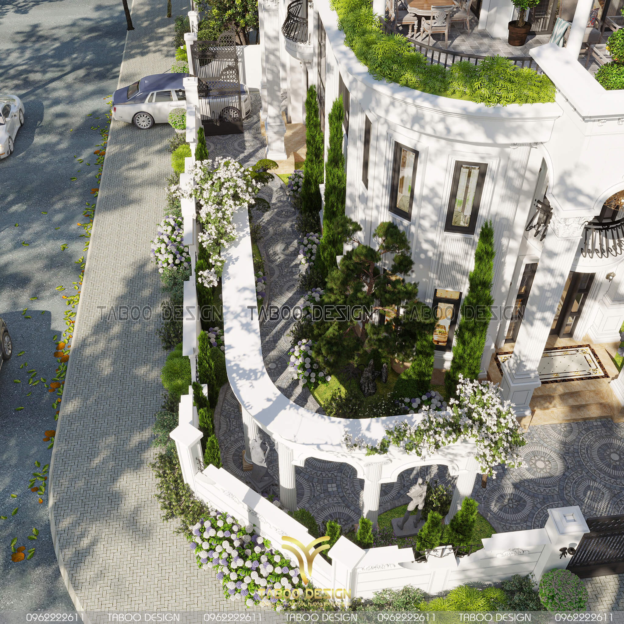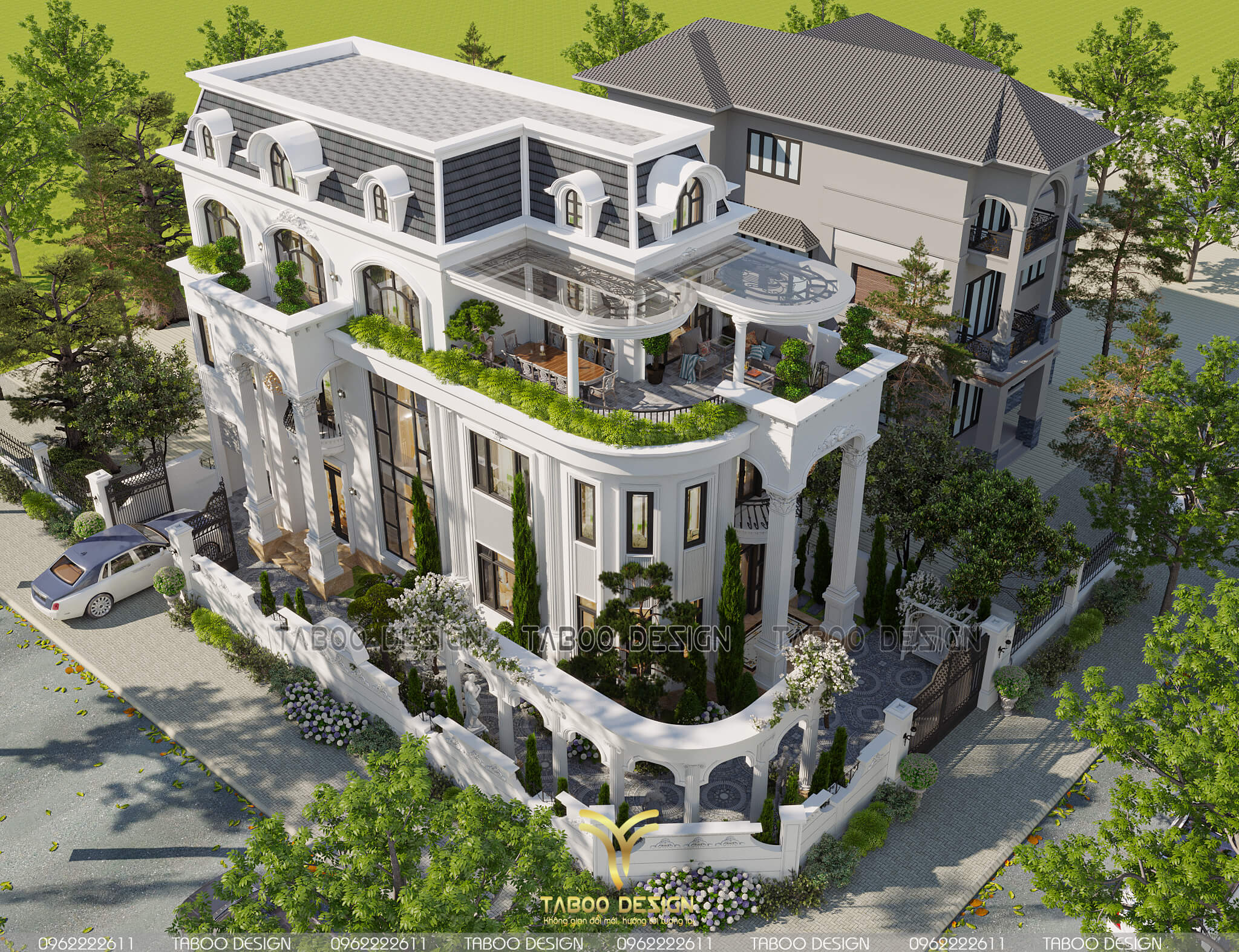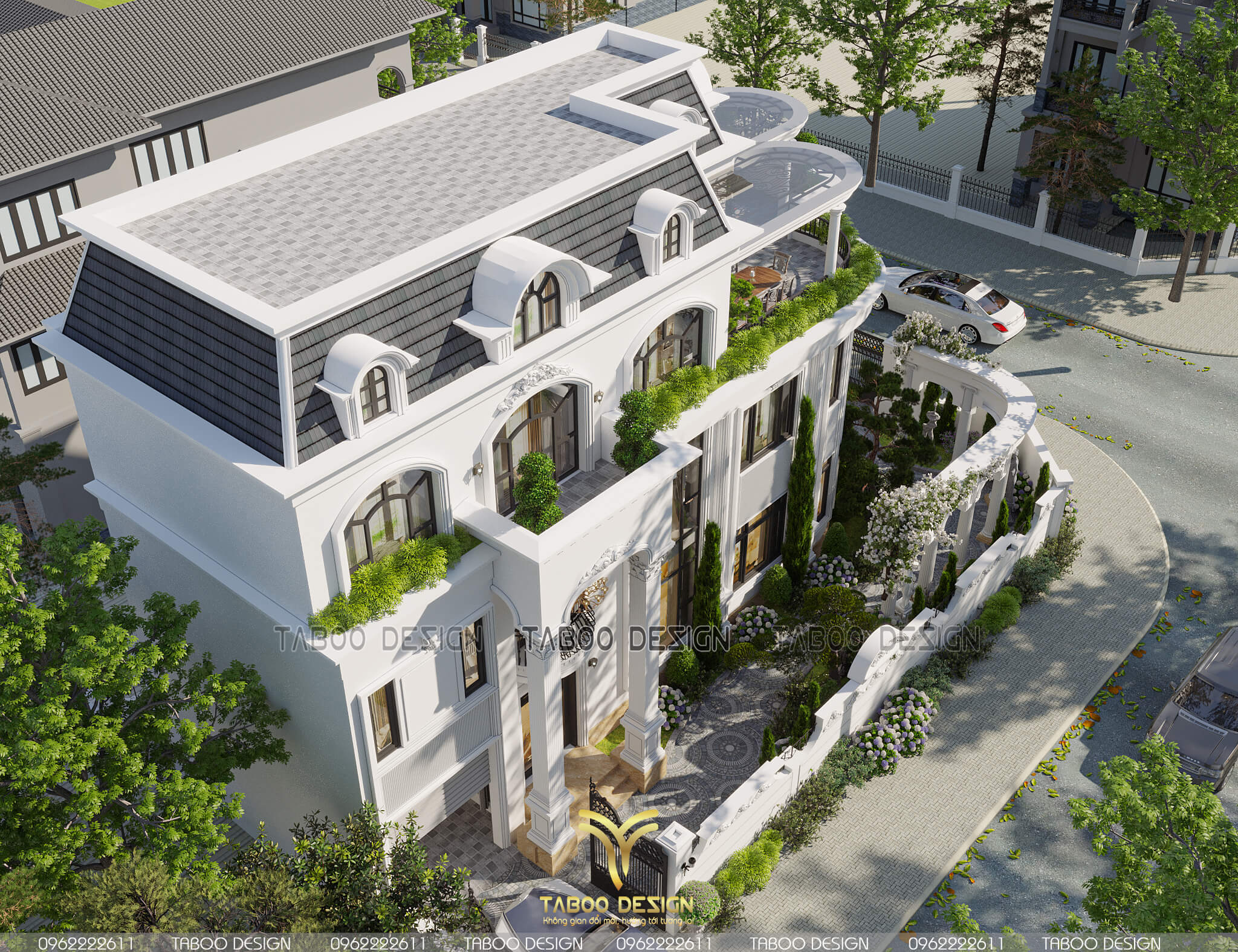 Mẫu biệt thự tân cổ điển 3 tầng đẹp nhìn từ trên cao