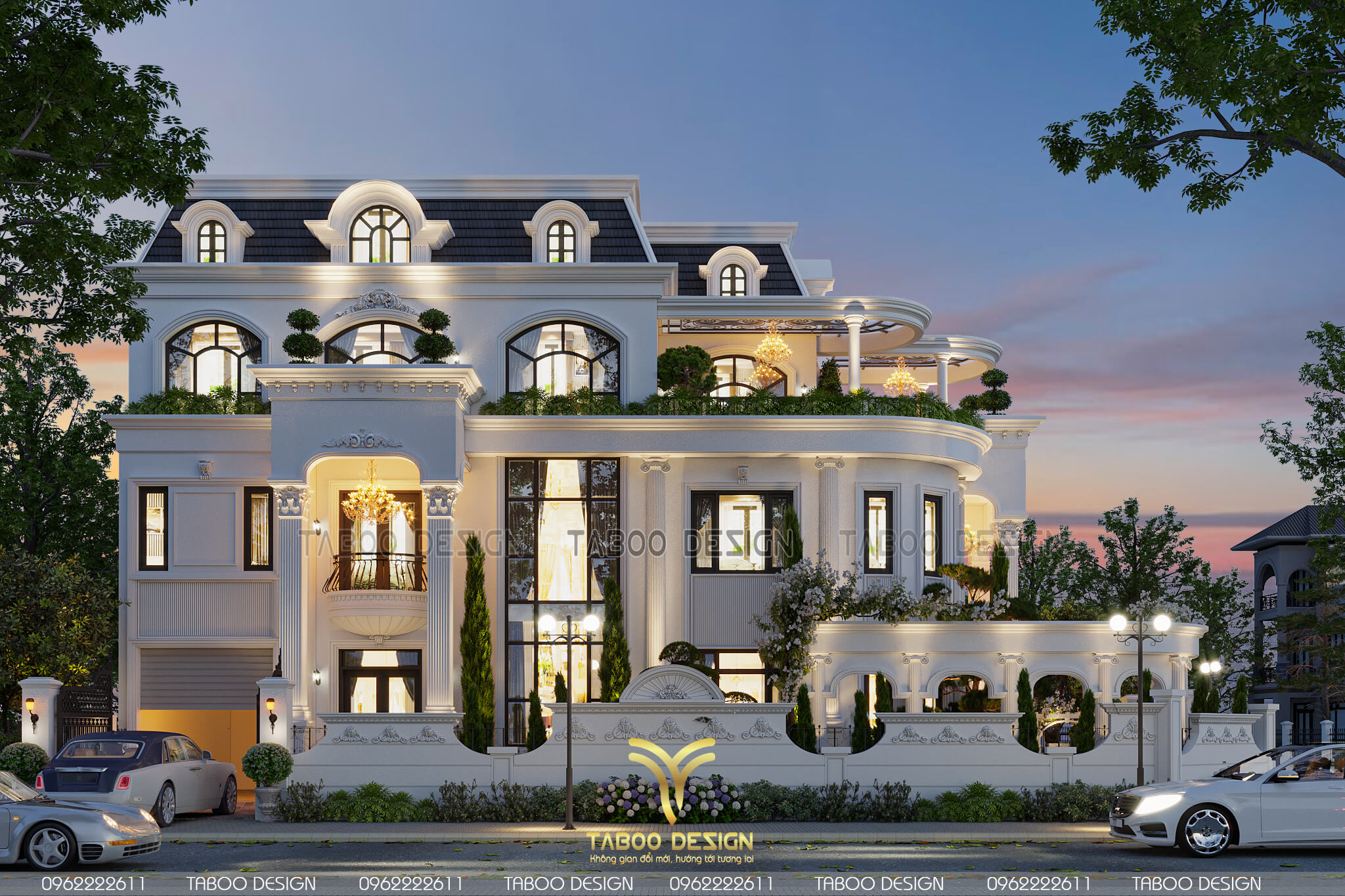 Không gian mặt tiền mẫu thiết kế biệt thự tân cổ điển 3 tầng Châu Âu