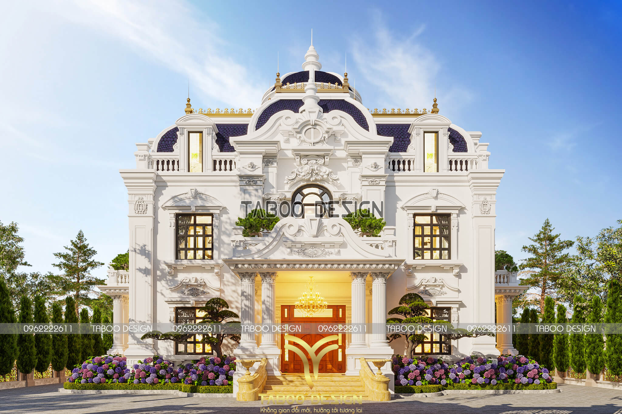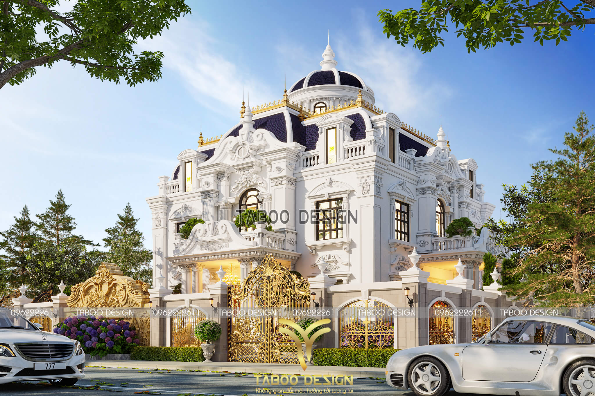 Một công trình đẹp không góc chết, khi lên phương án thiết kế, dinh thự đã được các KTS trau chuốt hết sức tỉ mỉ, diện tích thiết kế khá lớn để thể hiện được sự nguy nga và tráng lệ của nó. Phào chỉ được chạm khắc tinh tế, vật liệu sử dụng cao cấp và màu sơn được lựa chọn phù hợp với thẩm mỹ của gia chủ.