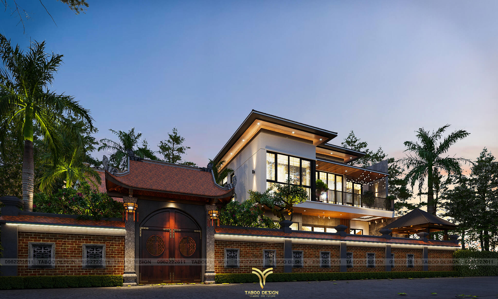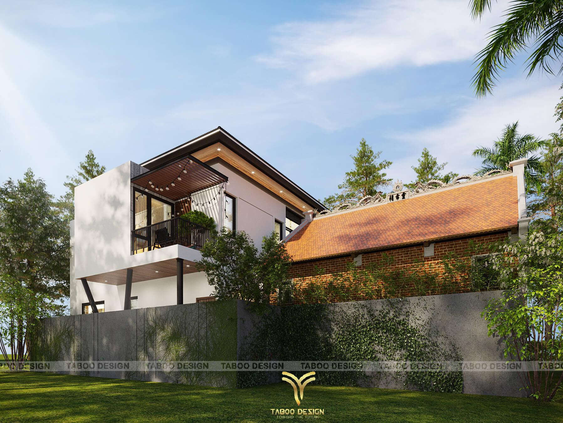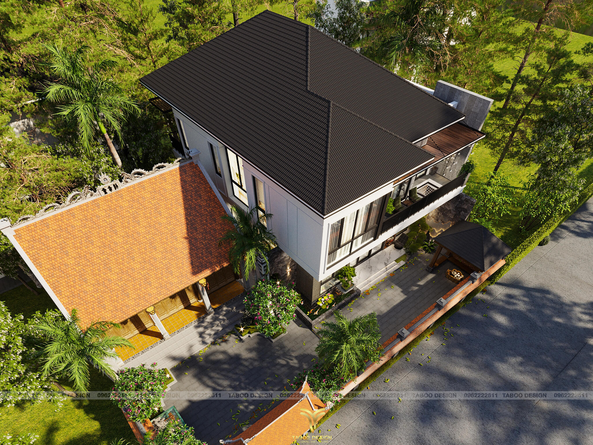 Phối cảnh 3D mẫu từ đường + Biệt thự 2 tầng hiện đại đẹp tại Bắc Ninh