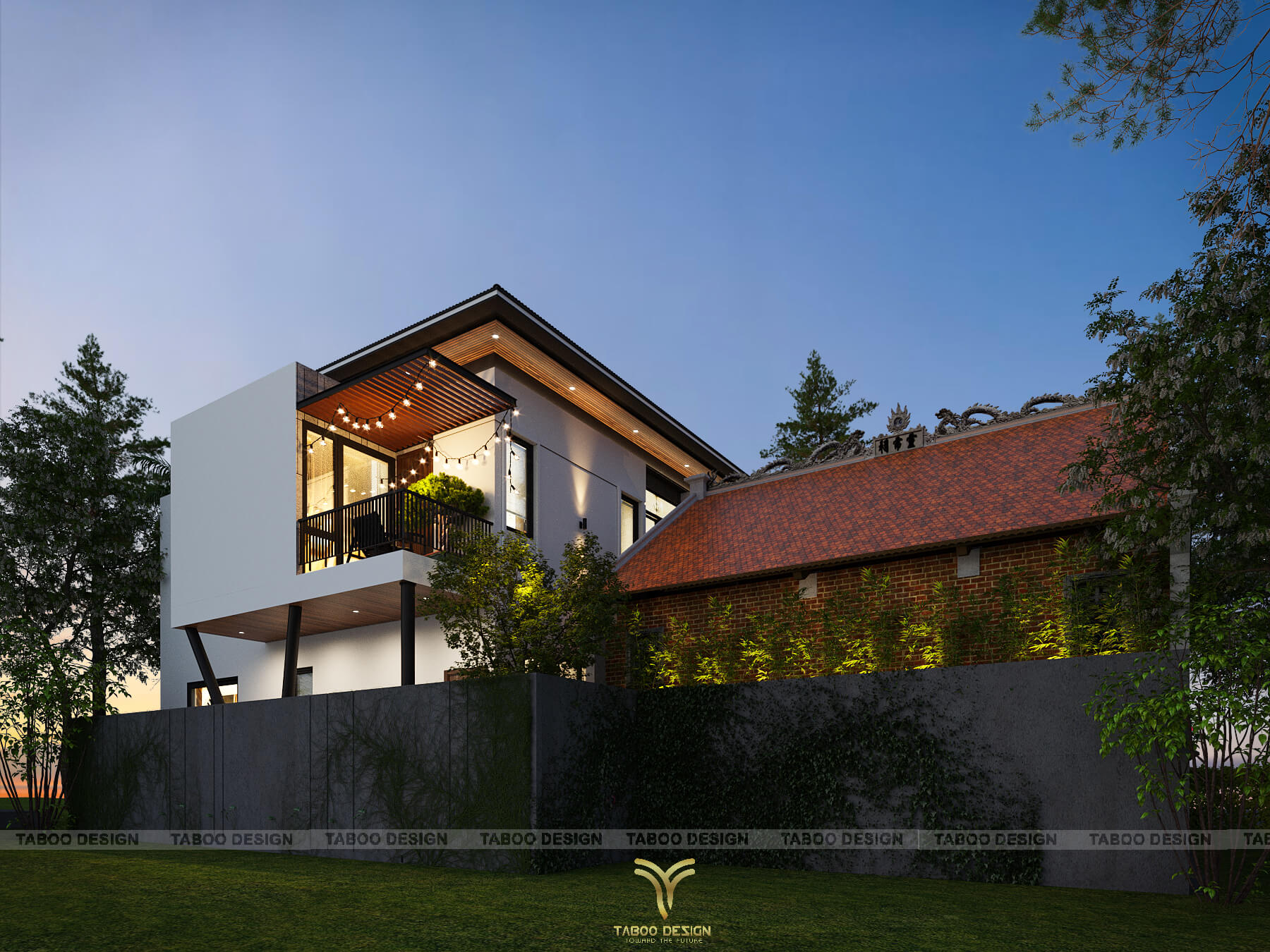 Phối cảnh 3D ban đêm công trình Từ đường kết hợp biệt thự