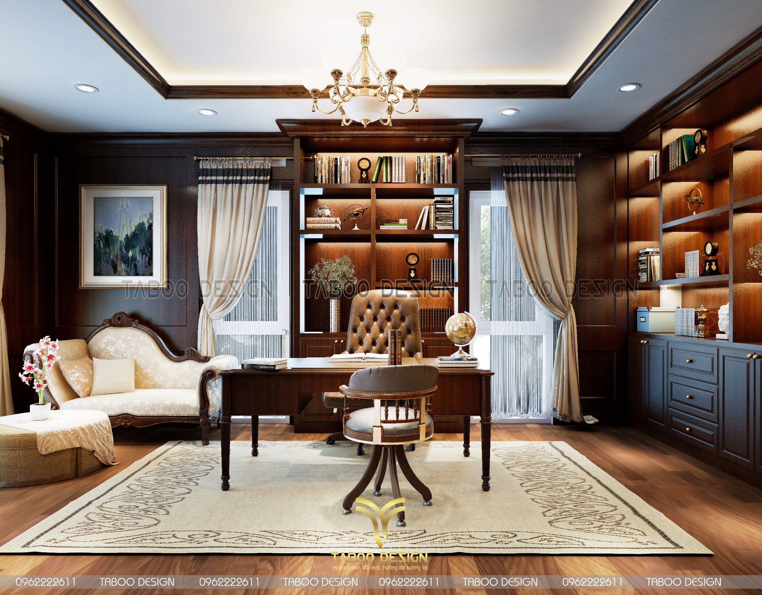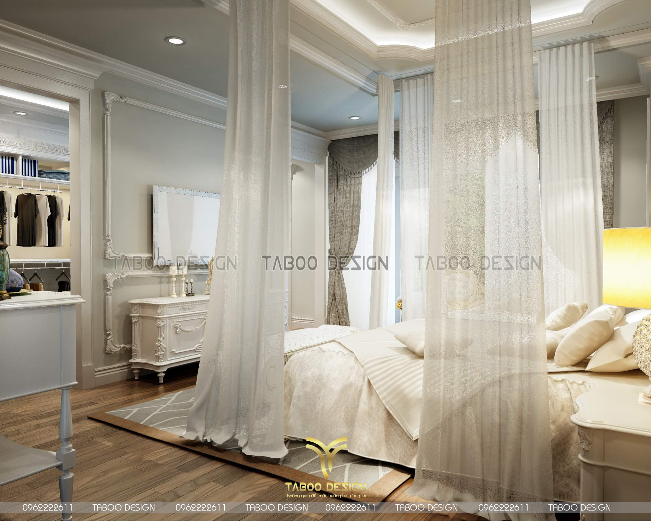 Mẫu thiết kế nội thất đẹp phong cách tân cổ điển trên đây là một ví dụ điển hình về không gian sống nhẹ nhàng, sang trọng và độc đáo. Để sở hữu riêng cho gia đình mình những không gian sống riêng, mới lạ và đáp ứng gu thẩm mỹ, hãy liên hệ ngay với TABOO DESIGN để được tư vấn thiết kế nhé!