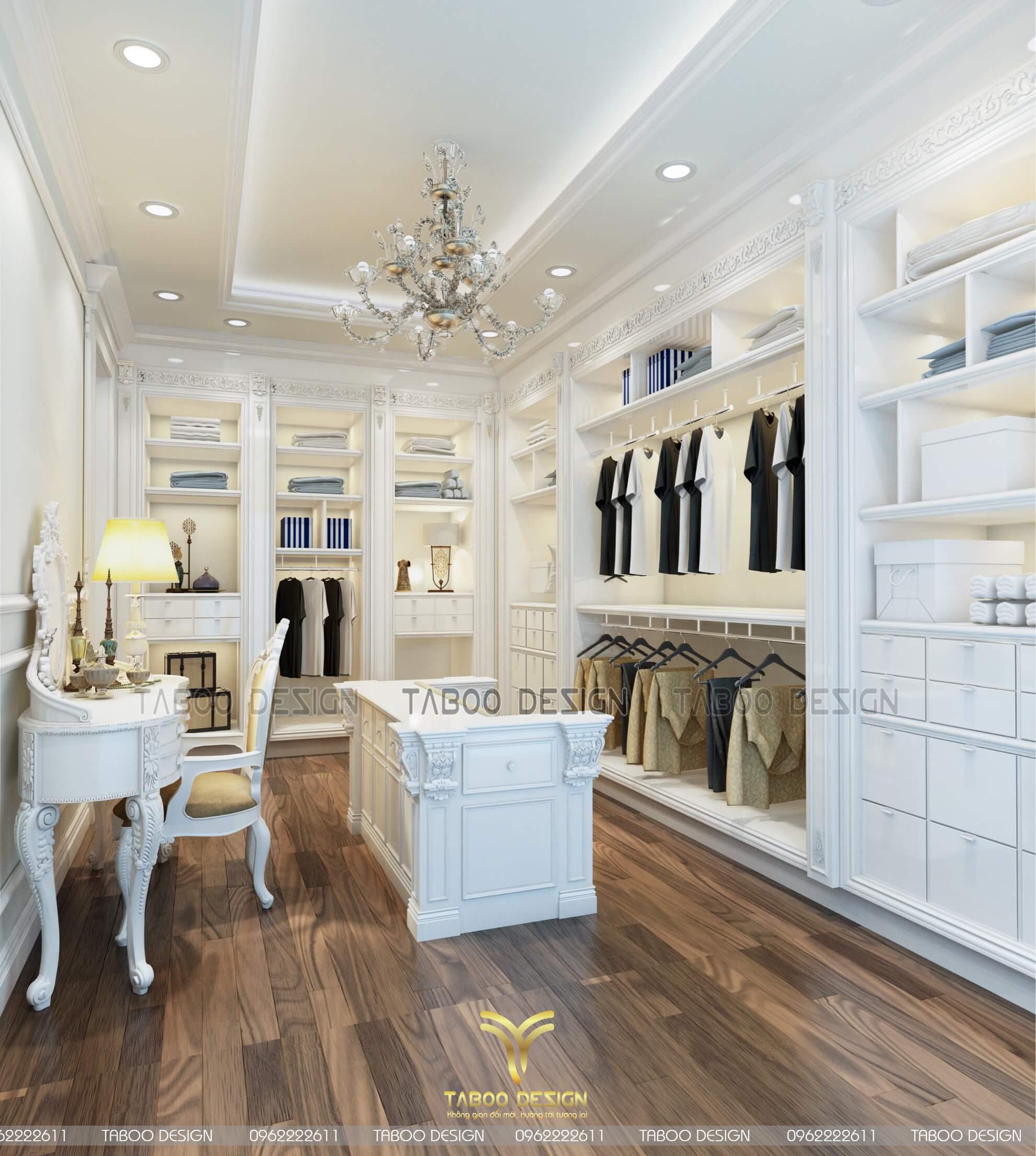 Phòng thay đồ tân cổ điển kiểu dáng châu Âu sang trọng