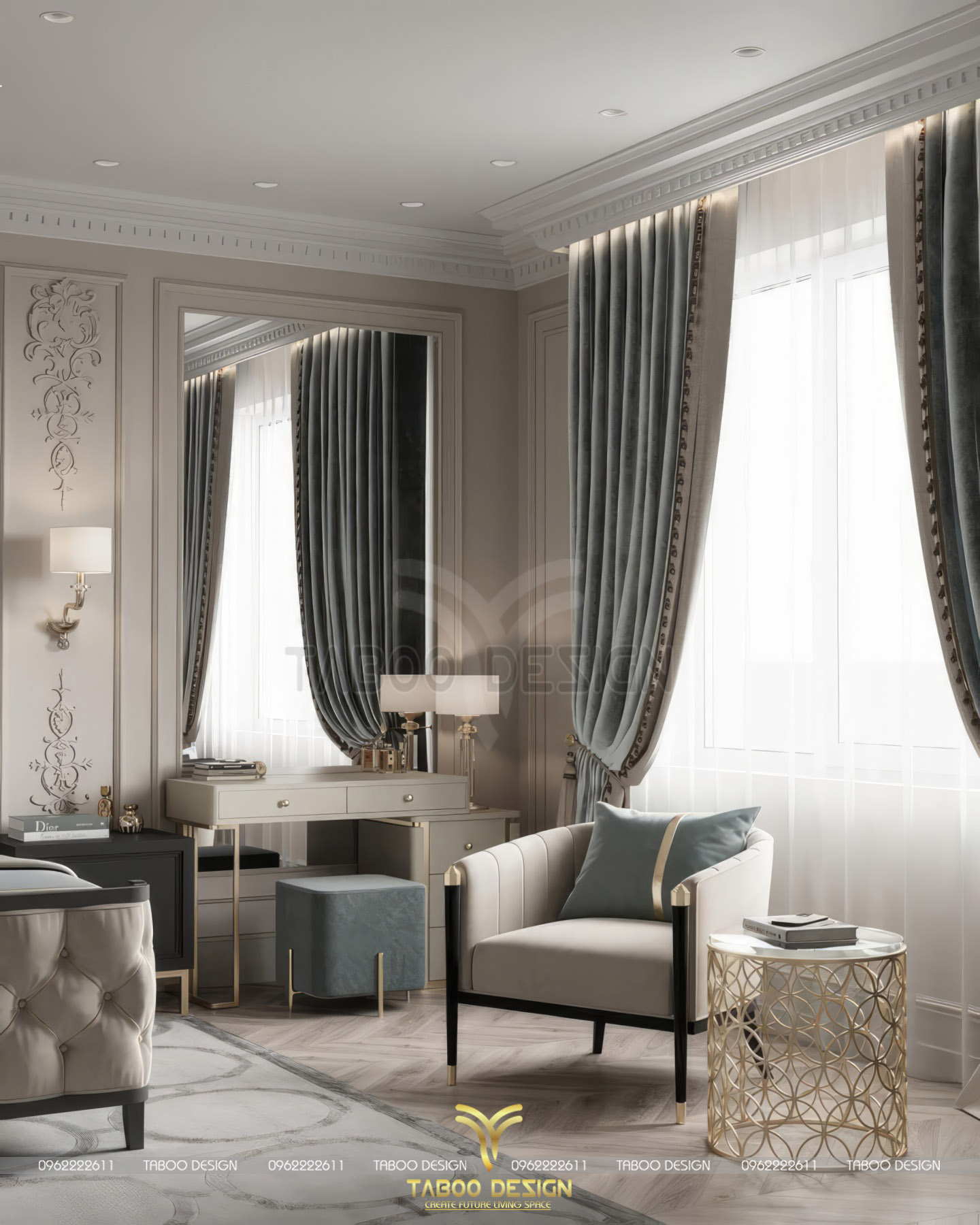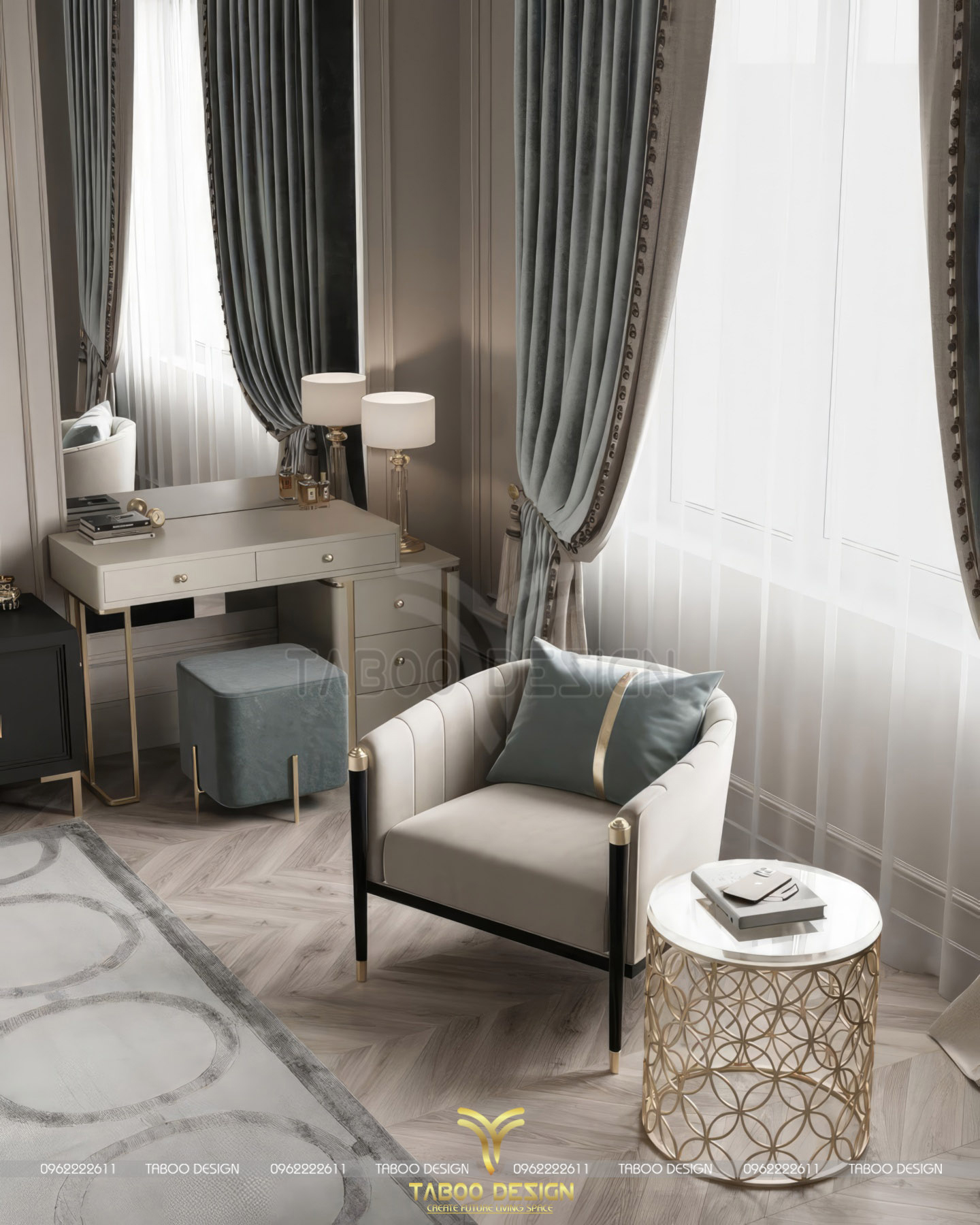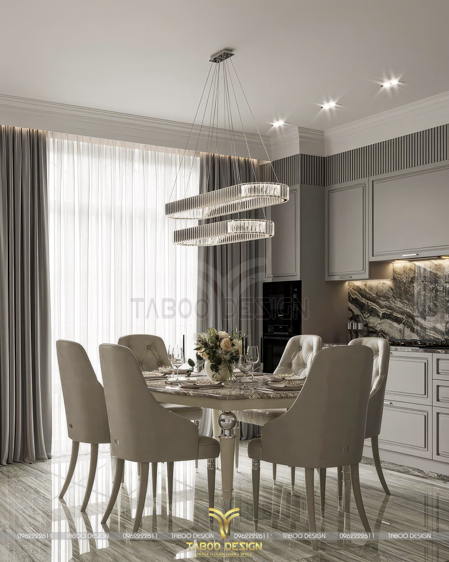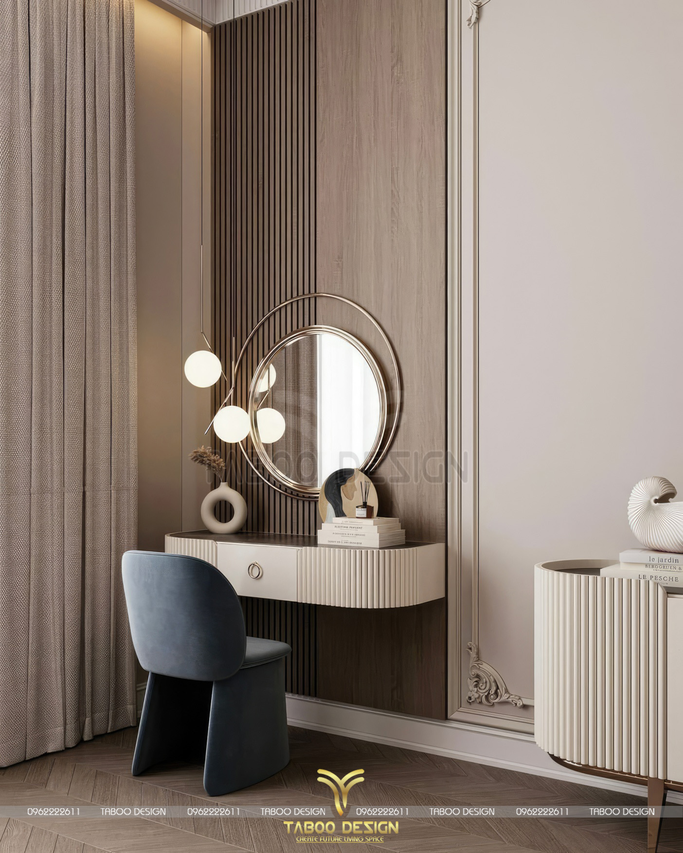Mẫu thiết kế nội thất đẹp phong cách tân cổ điển trên đây là một ví dụ điển hình về không gian sống nhẹ nhàng, sang trọng và độc đáo. Để sở hữu riêng cho gia đình mình những không gian sống riêng, mới lạ và đáp ứng gu thẩm mỹ, hãy liên hệ ngay với TABOO DESIGN để được tư vấn thiết kế nhé!
