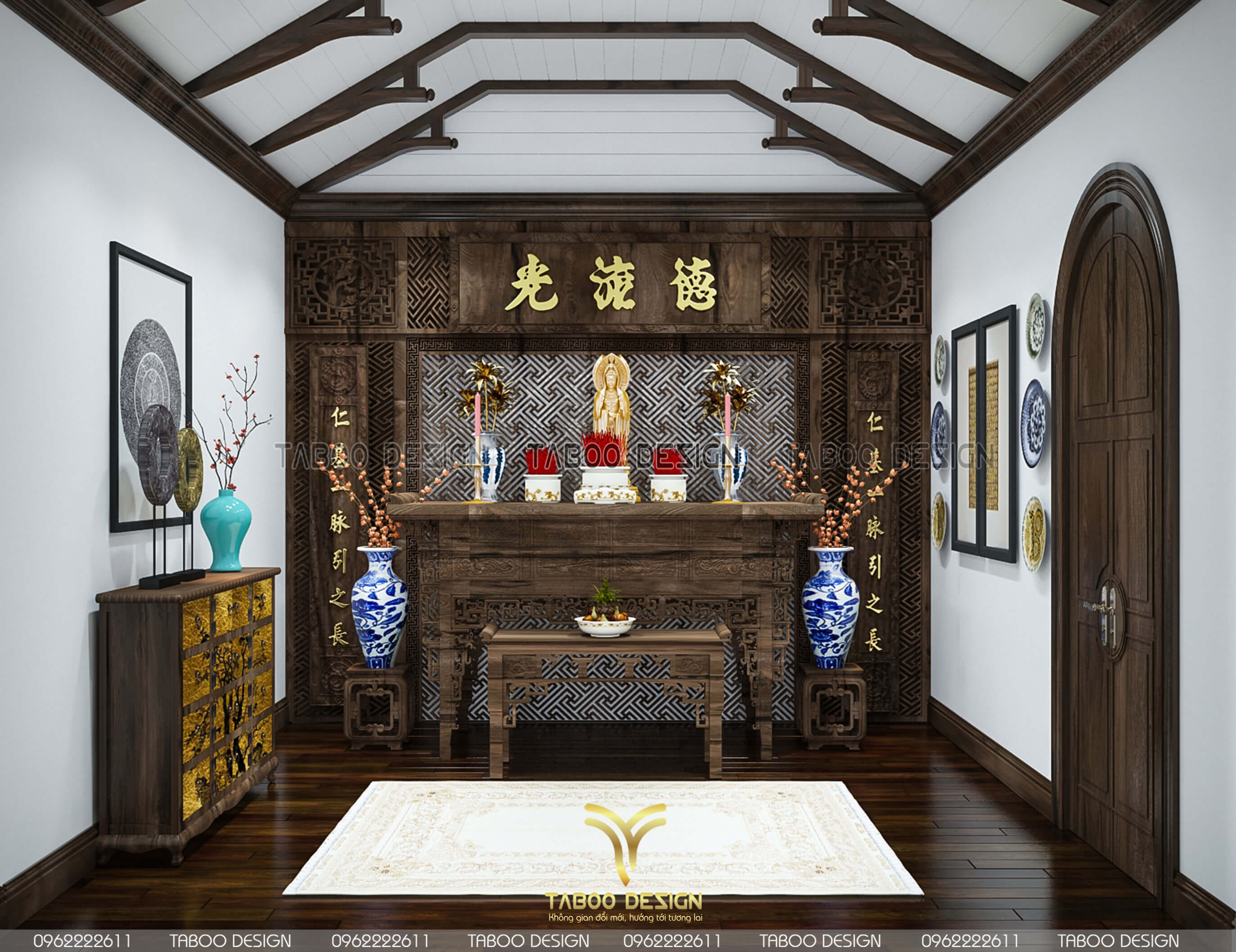 Mẫu thiết kế phòng thờ sử dụng gỗ tự nhiên tạo sự ấm cúng