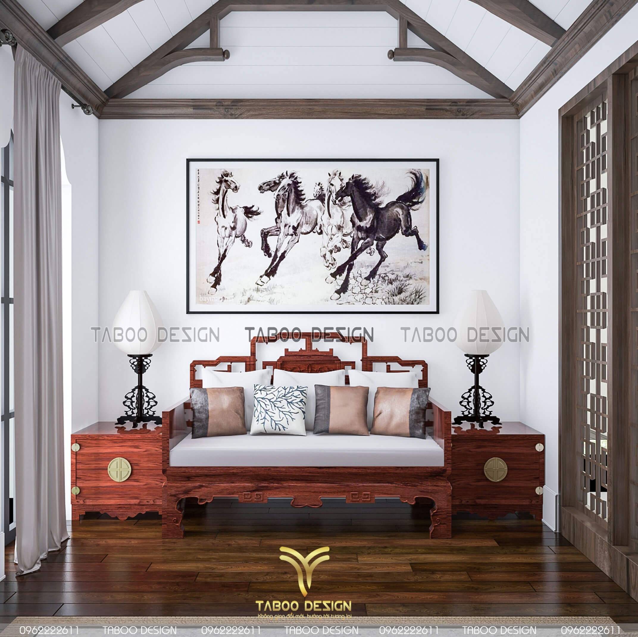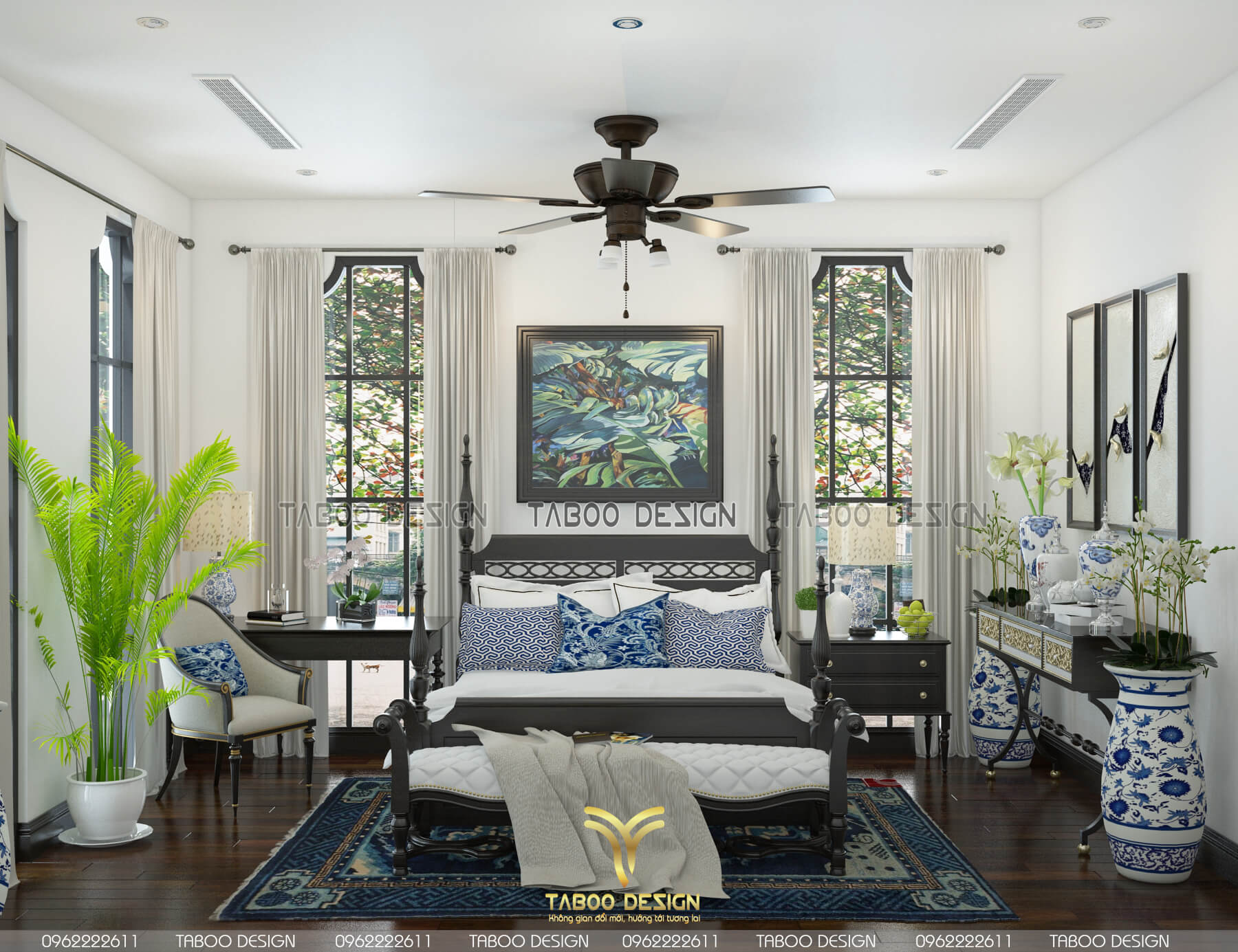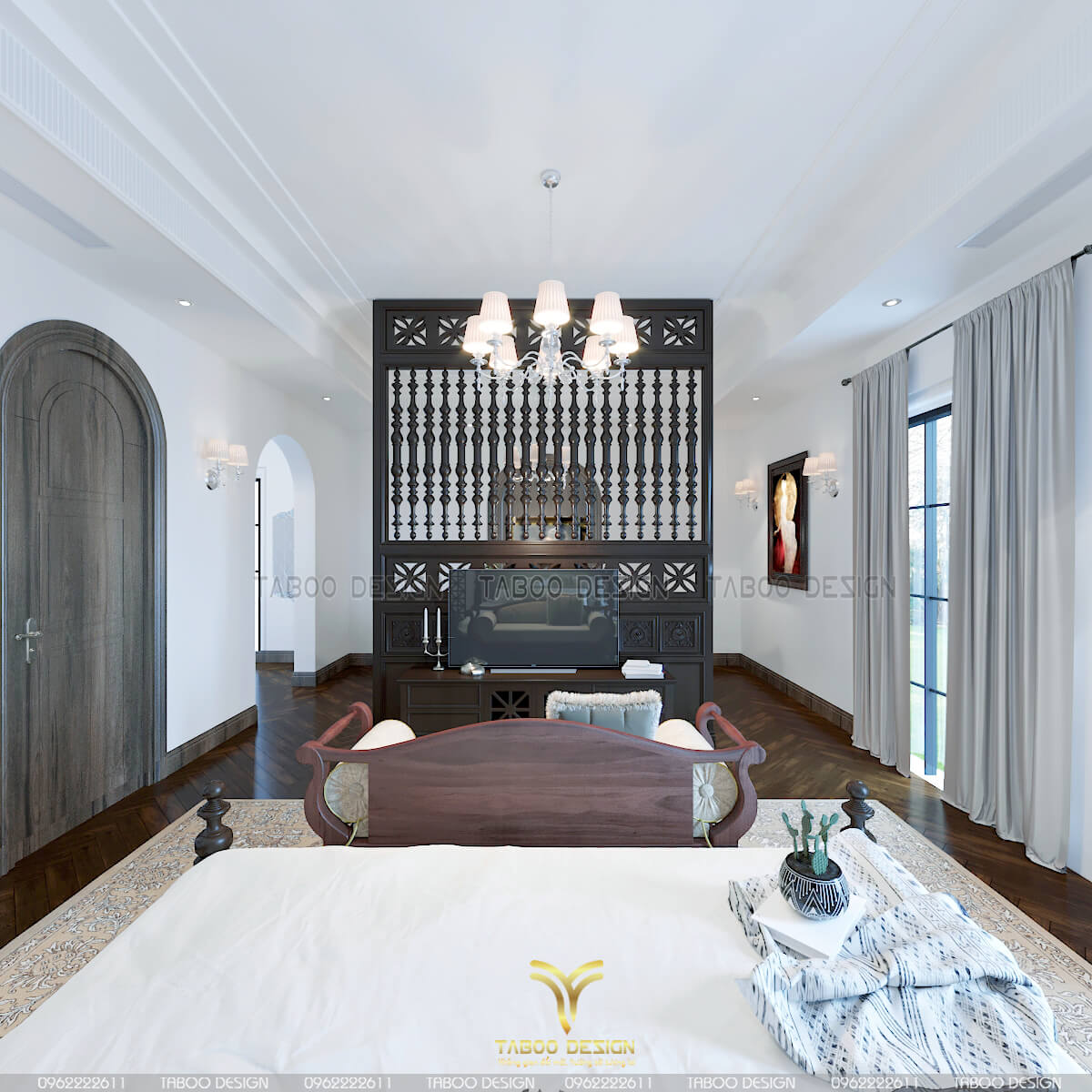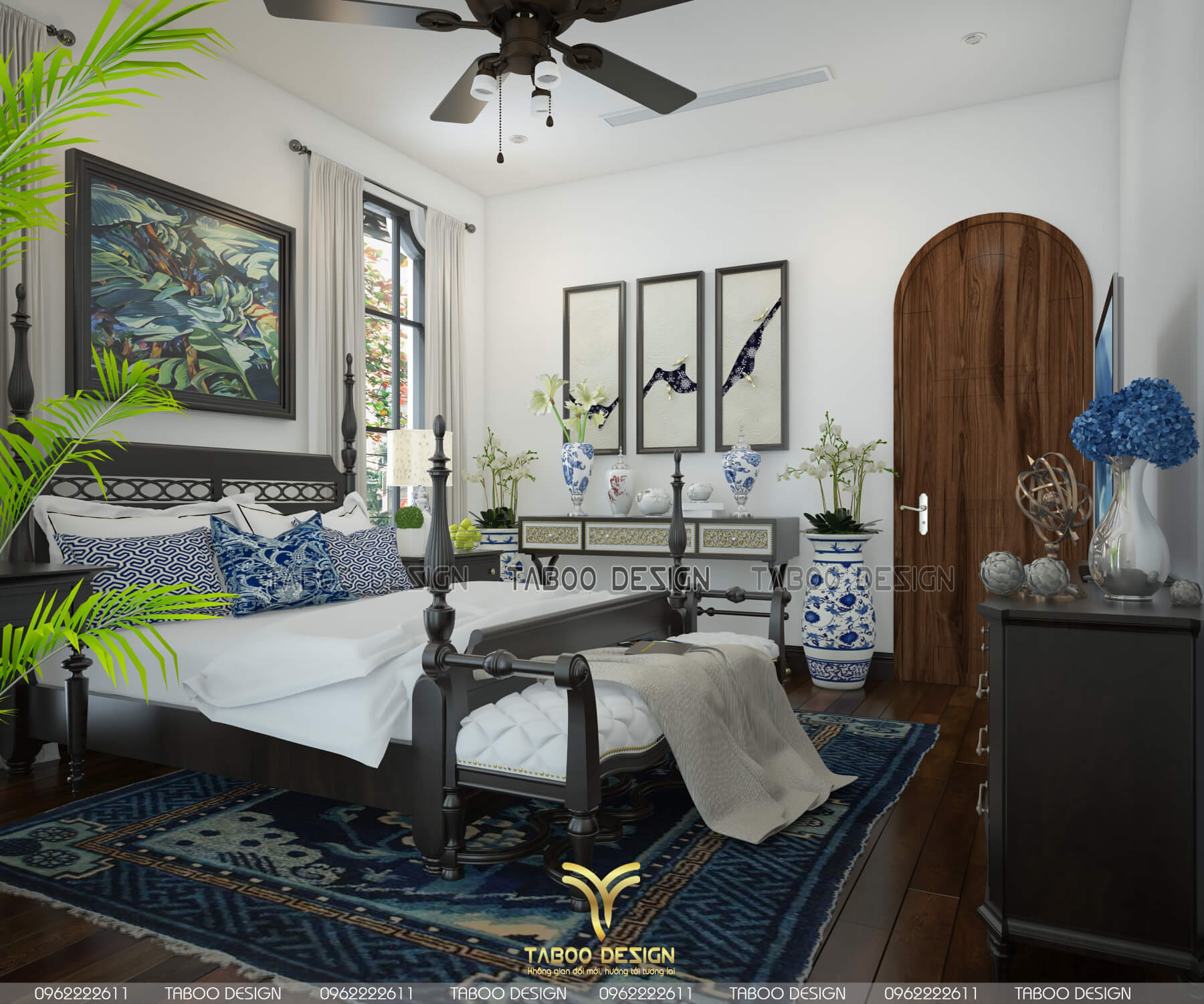 Yếu tố hiện đại kết hợp vẻ đẹp Đông Dương trong phòng ngủ