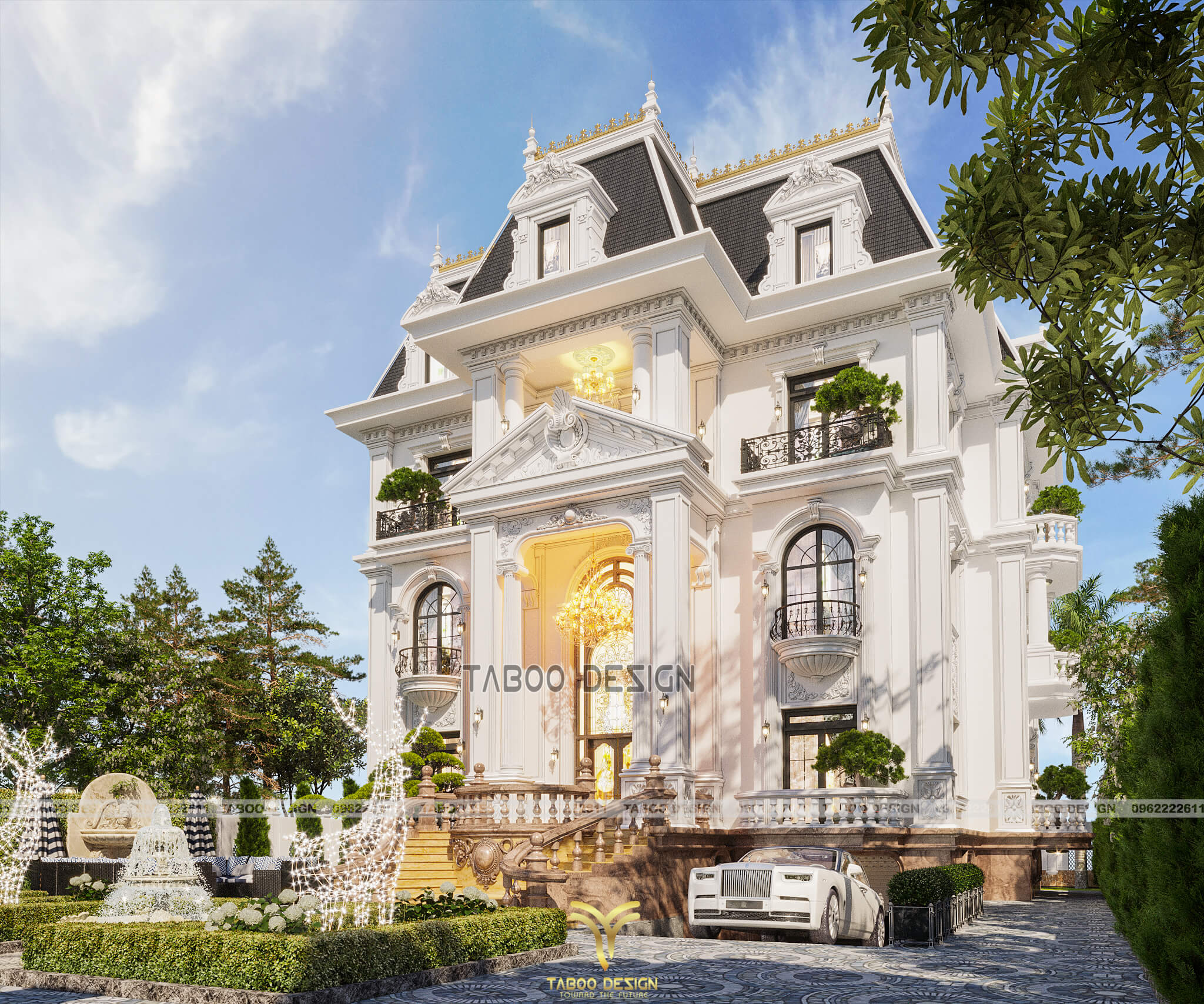 Thiết kế biệt thự lâu đài 3 tầng kiểu Pháp đẹp nguy nga, lộng lẫy của chủ đầu tư ông Tuấn tại Thanh Hóa đảm bảo thẩm mỹ, công năng, hài hòa phong thủy