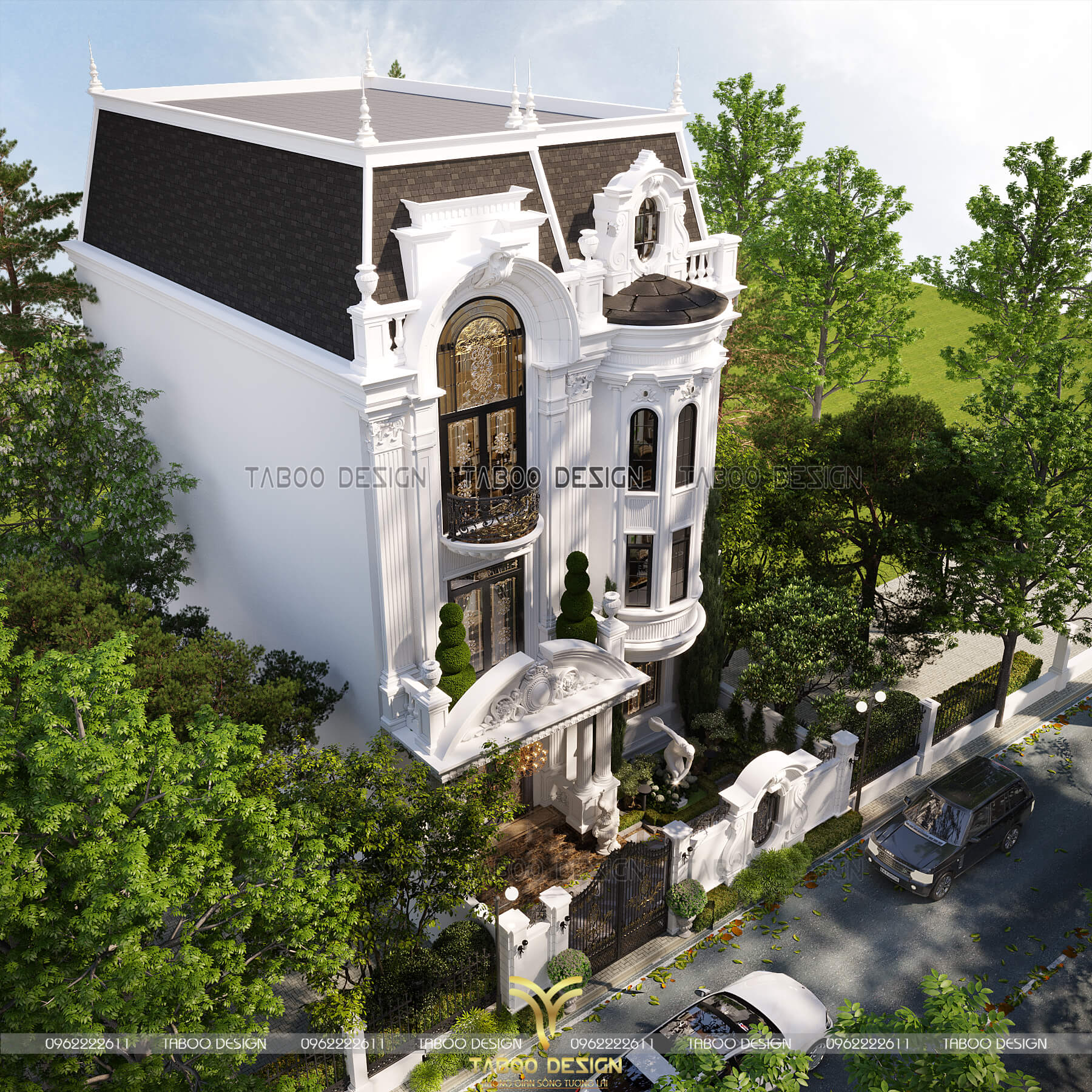 Phối cảnh trên cao của căn biệt thự tân cổ điển đẹp