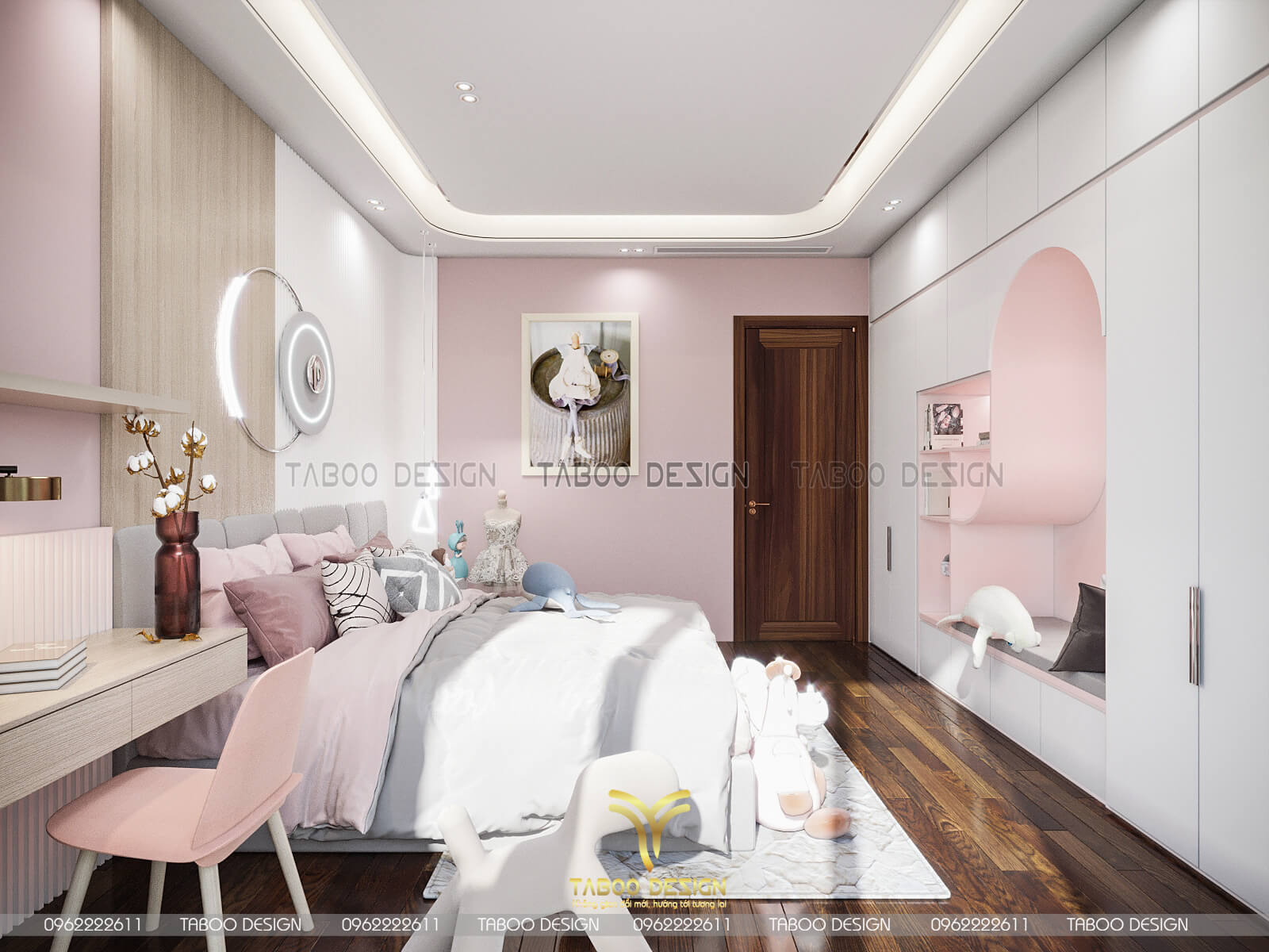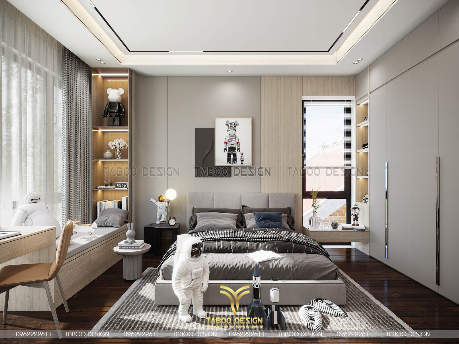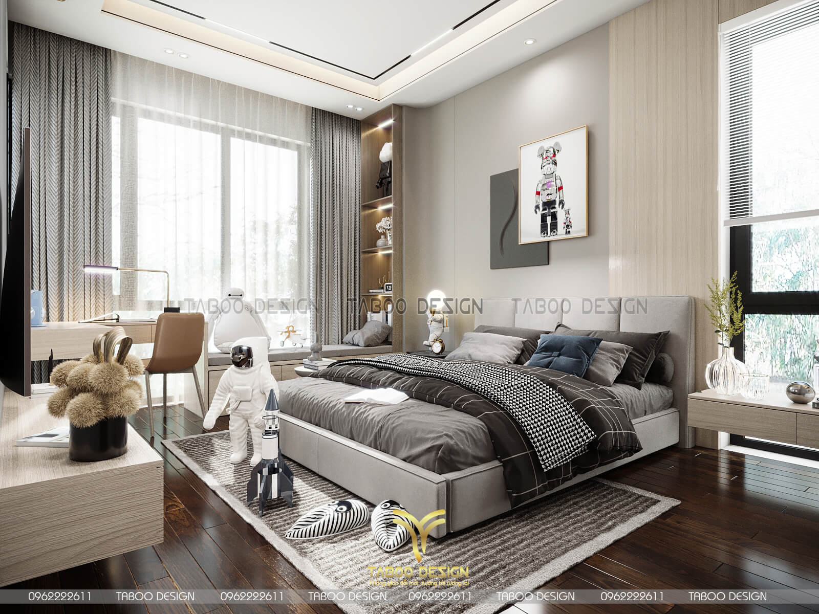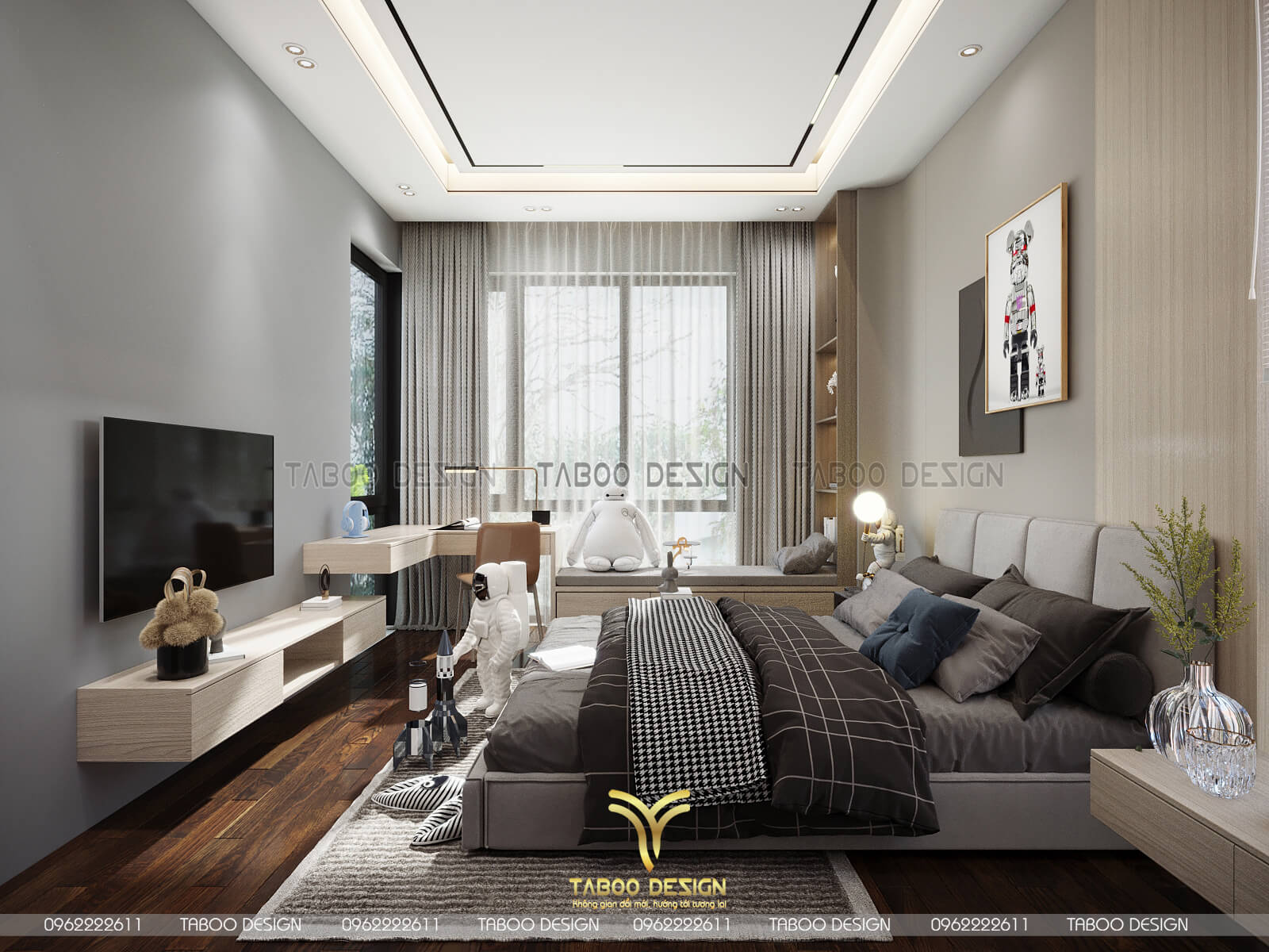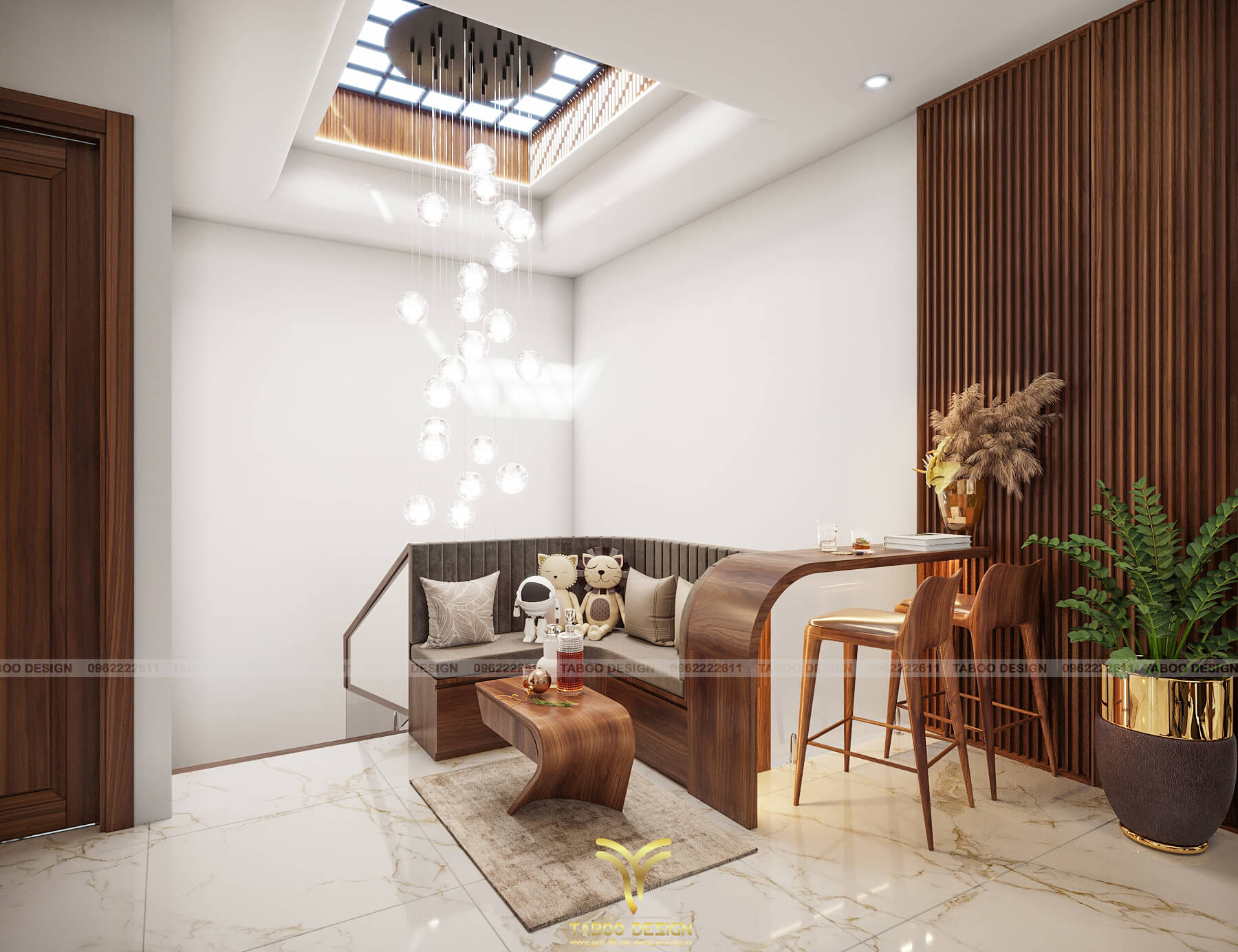 Mẫu thiết kế nội thất đẹp phong cách hiện đại trên đây là một ví dụ điển hình về không gian sống nhẹ nhàng, sang trọng và độc đáo. Để sở hữu riêng cho gia đình mình những không gian sống riêng, mới lạ và đáp ứng gu thẩm mỹ, hãy liên hệ ngay với TABOO DESIGN để được tư vấn thiết kế nhé!