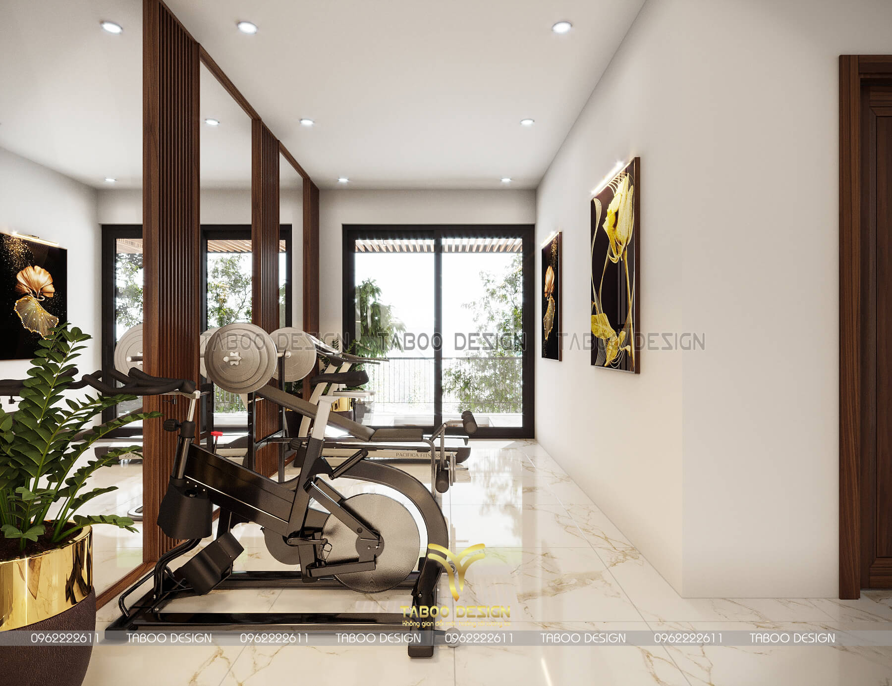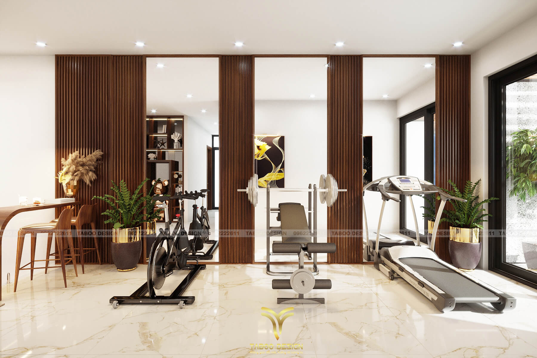 Không gian phòng Gym với đầy đủ các thiết bị tập luyện