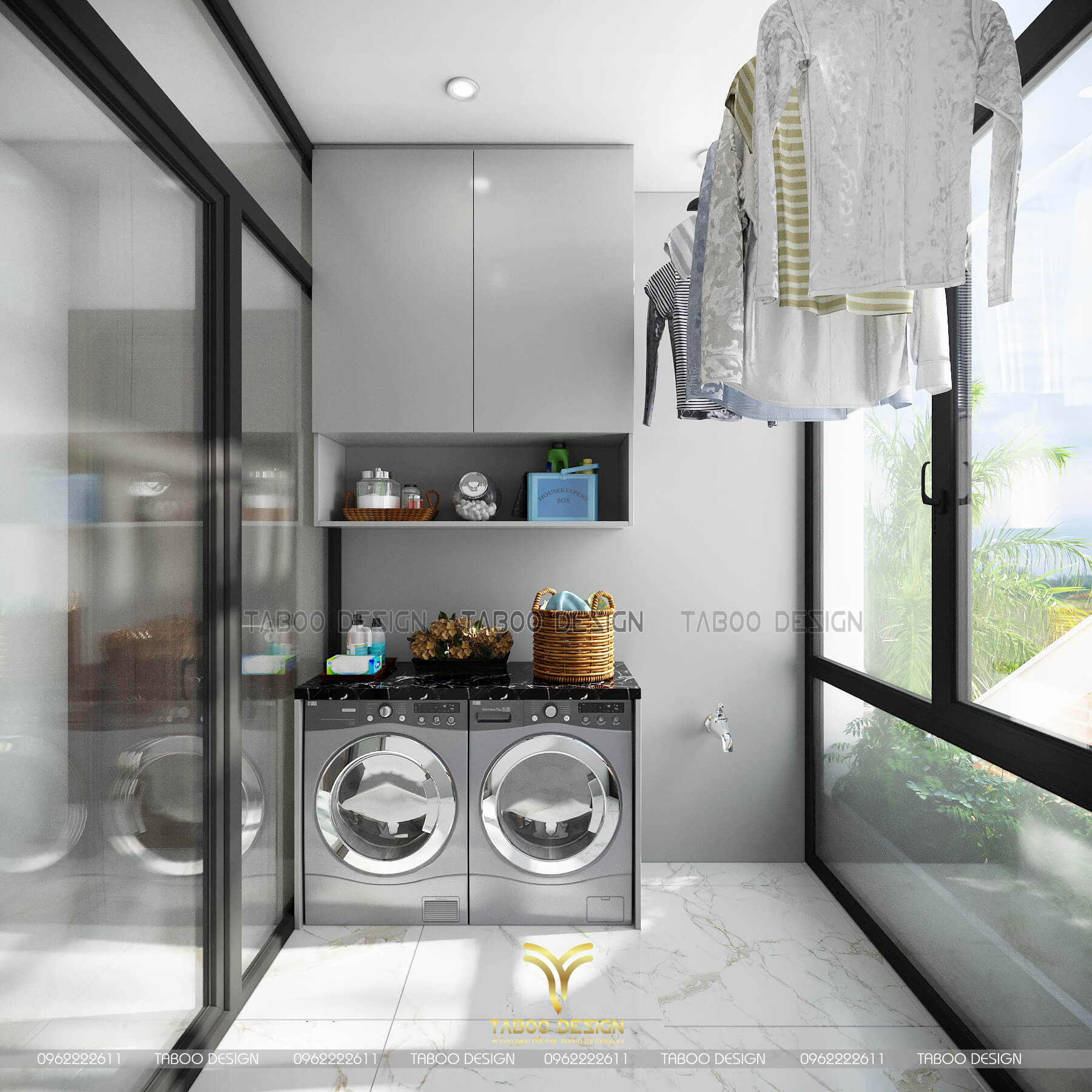 Không gian phòng giặt kết hợp khơi phóng